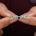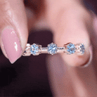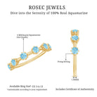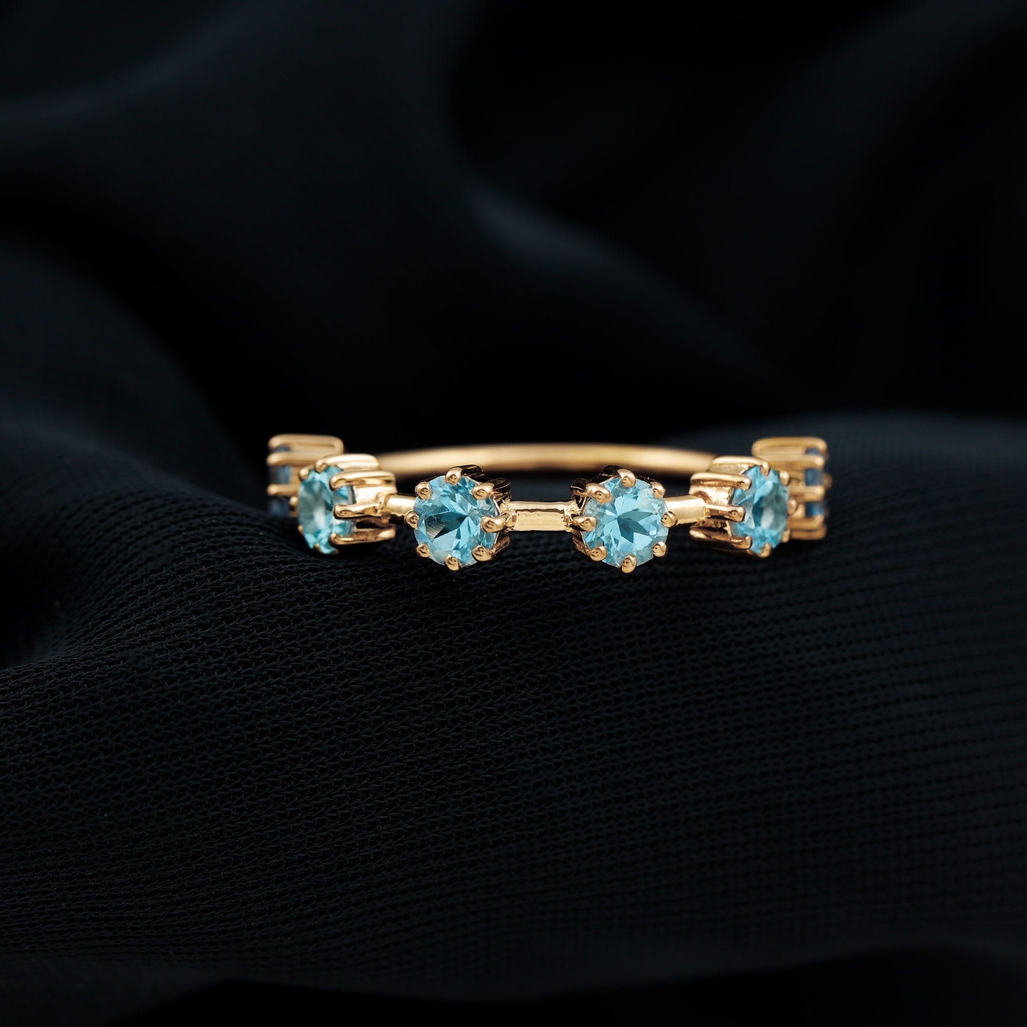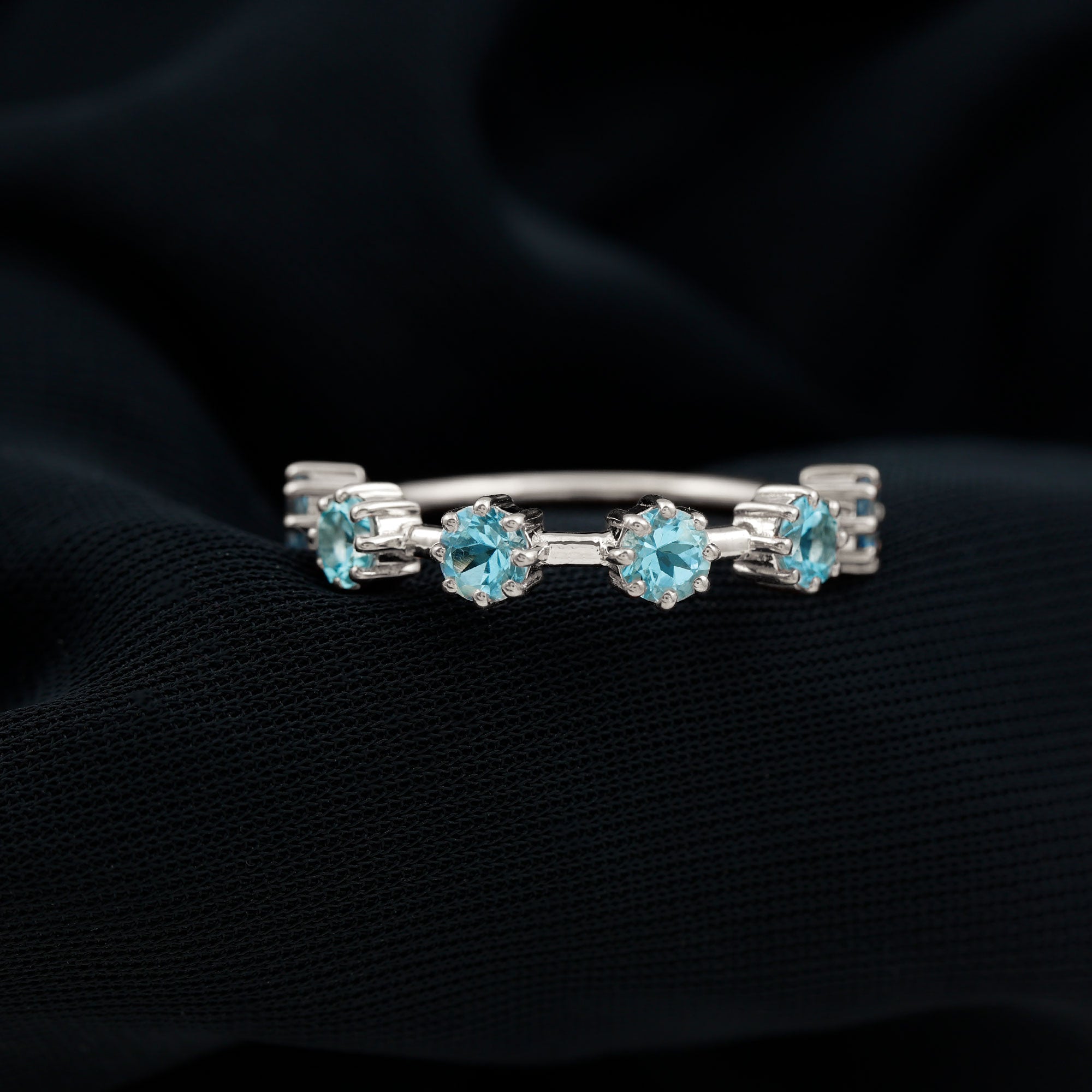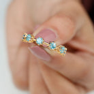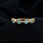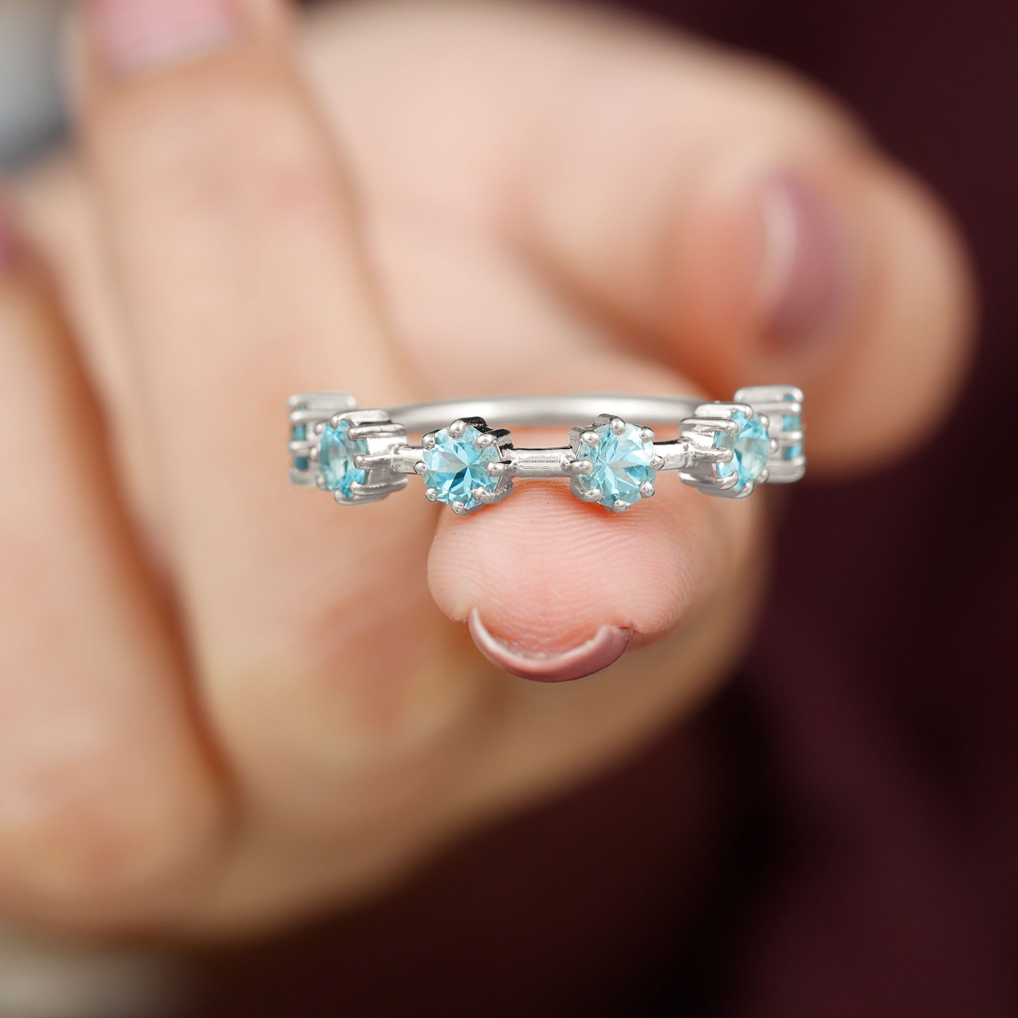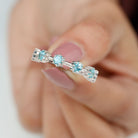 Show your love and commitment with this beautiful Aquamarine Stackable Ring, a perfect piece to symbolize an everlasting bond. This Minimalist Ring features sparkling 4 MM round cut aquamarine stones set securely in 8-prong setting, evenly spaced across the half band. The slim and simple band allows the stones to shine brightly, making it an ideal choice for stacking with other rings or wearing alone for a delicate look. Aquamarine, the birthstone for March, is known for its calming blue hue and is often associated with loyalty, clarity, and serenity, making this Half Eternity Ring not only a beautiful piece of jewelry but also a meaningful symbol of love and harmony. Perfect as a wedding, anniversary, or promise ring, this Aquamarine Eternity Ring is a thoughtful gift for your partner or a meaningful addition to your own jewelry collection. Its lightweight design makes it comfortable for daily wear, while the blue stones catch the light beautifully with every movement.