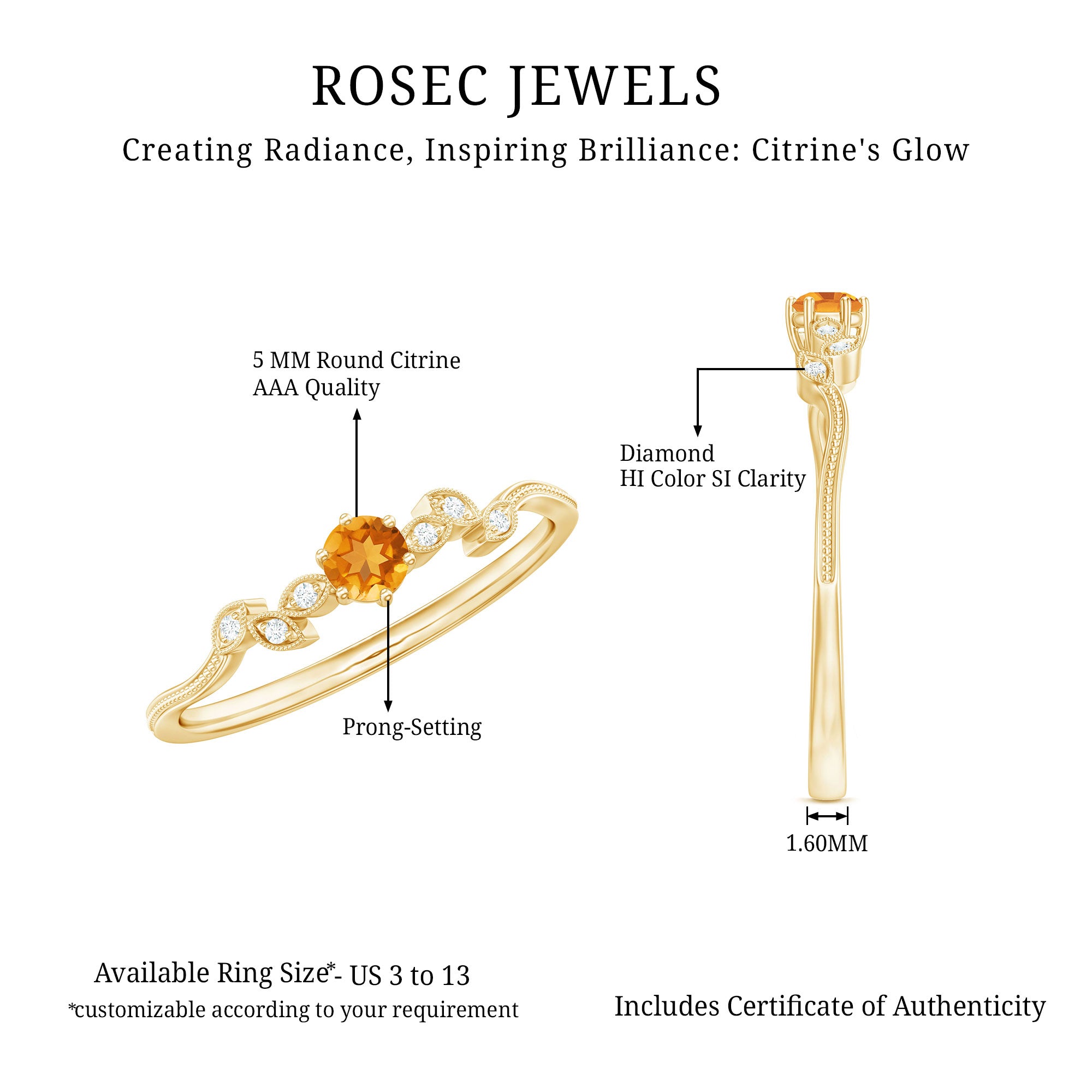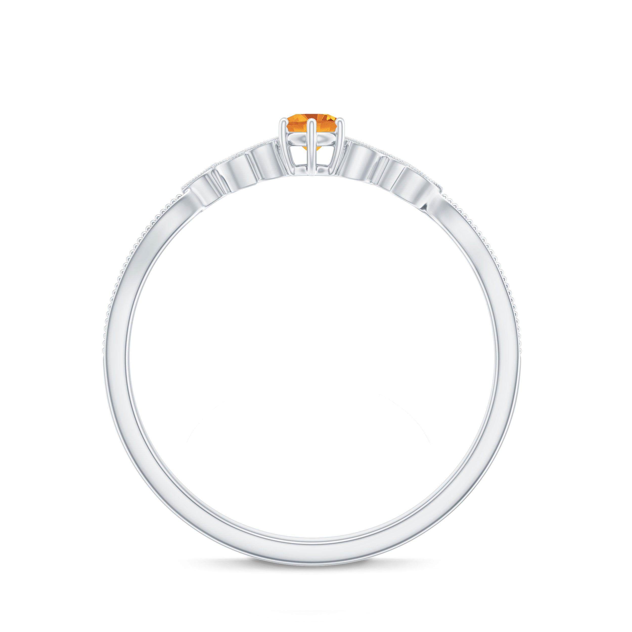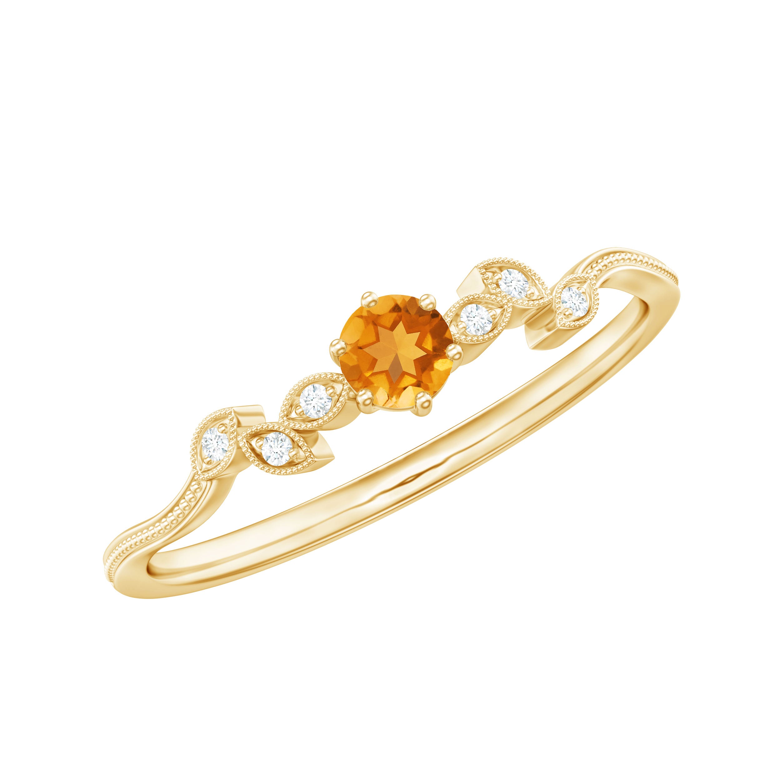 Experience the mesmerizing allure of nature with this enchanting Promise Ring. Emulating the captivating beauty of leaves, this ring showcases a 5 MM Round Shape Citrine gemstone delicately set in a Prong Setting. The Beaded Leaf Design is adorned with sparkling Round Shape Diamond gemstones, further enhancing its natural-inspired elegance. This promise ring serves as a perfect gift choice for those who appreciate the wonders of the natural world.