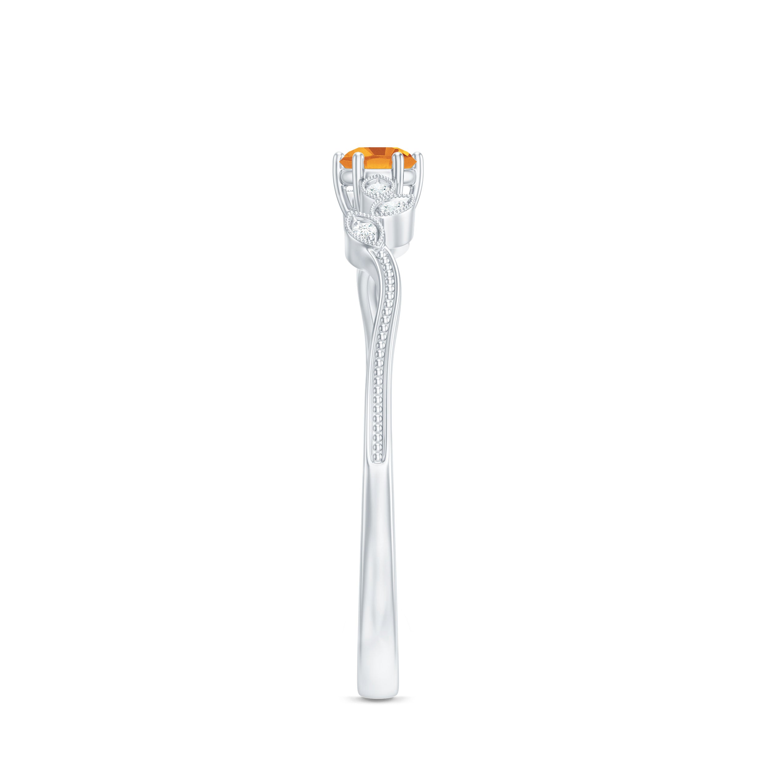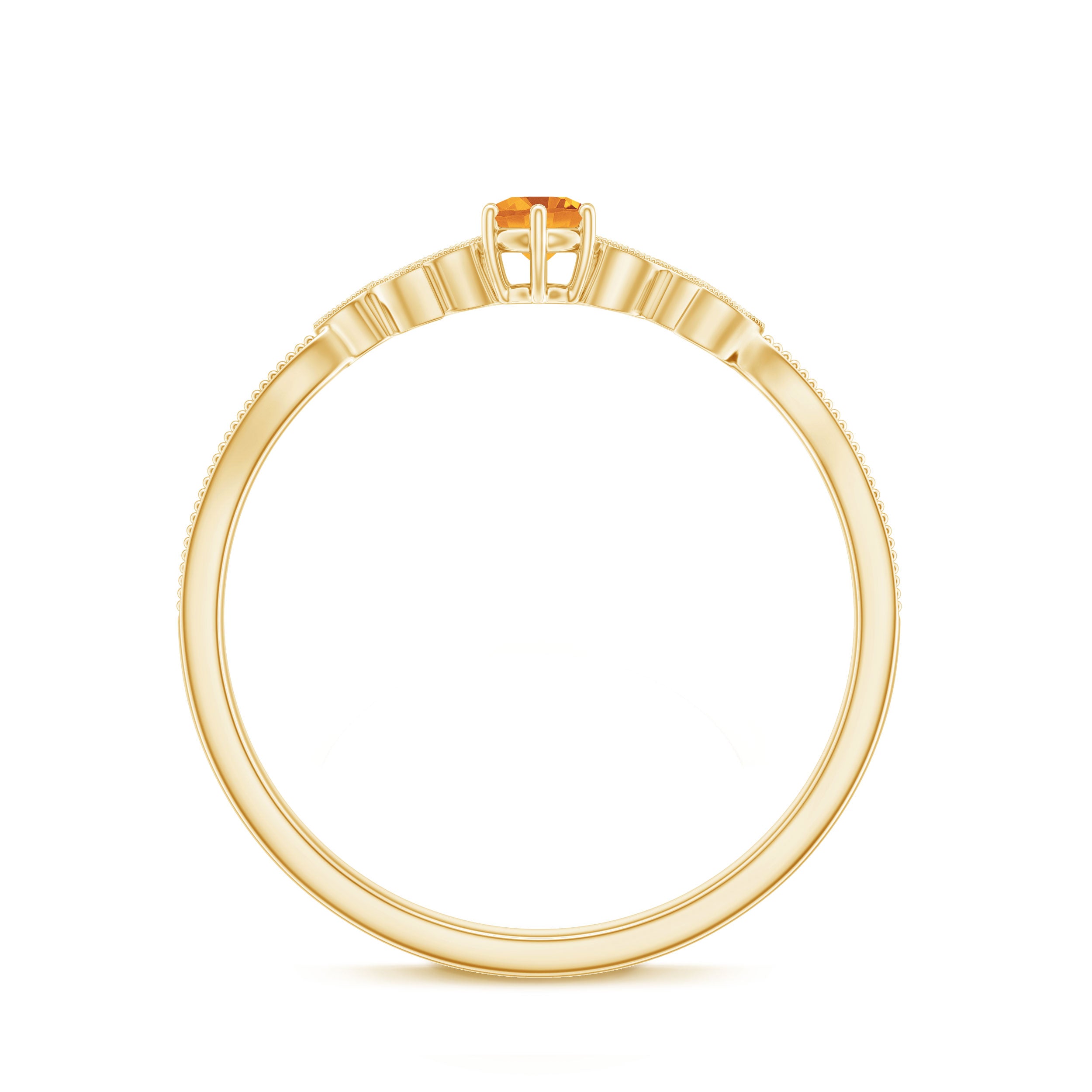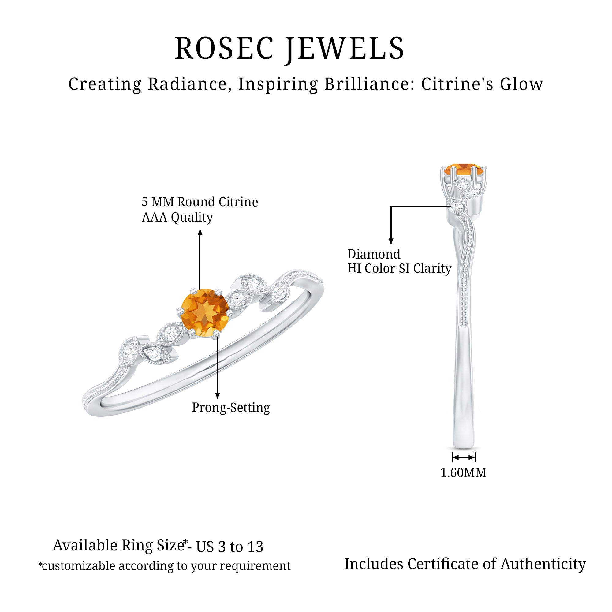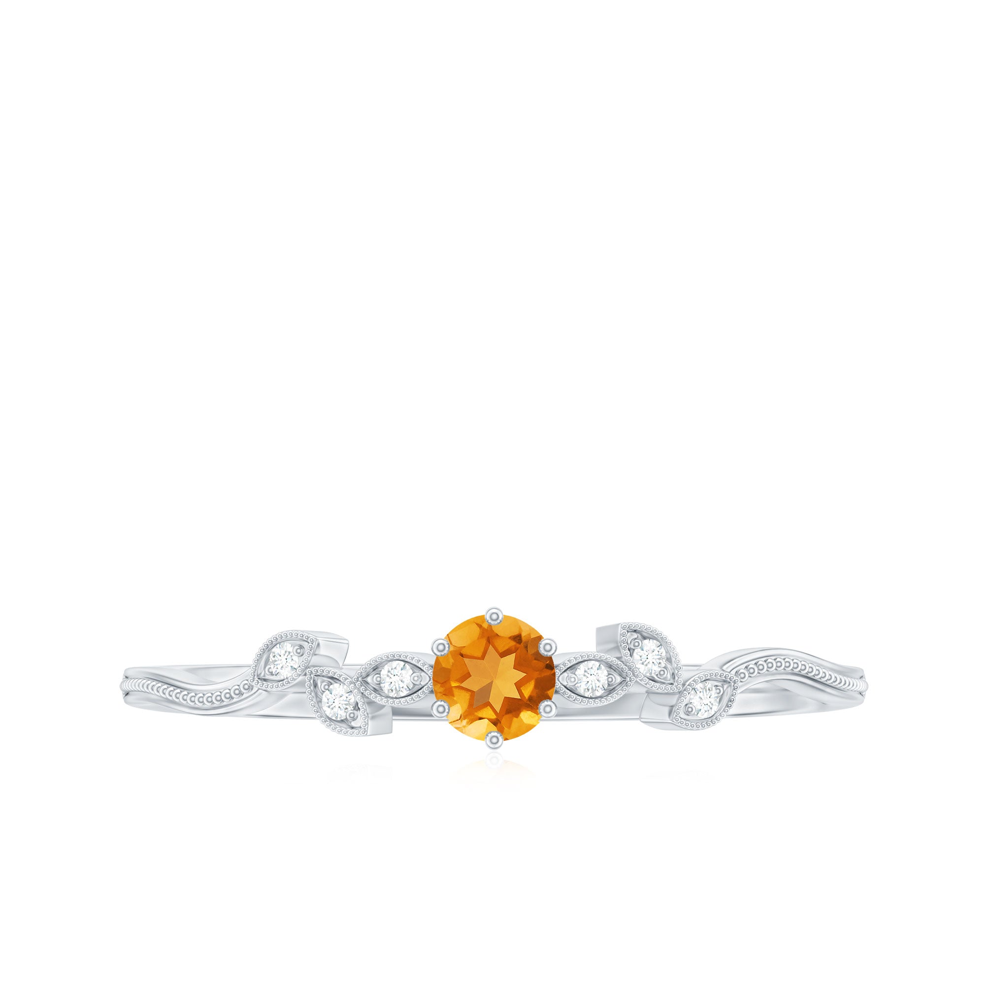 Experience the mesmerizing allure of nature with this enchanting Promise Ring. Emulating the captivating beauty of leaves, this ring showcases a 5 MM Round Shape Citrine gemstone delicately set in a Prong Setting. The Beaded Leaf Design is adorned with sparkling Round Shape Diamond gemstones, further enhancing its natural-inspired elegance. This promise ring serves as a perfect gift choice for those who appreciate the wonders of the natural world.