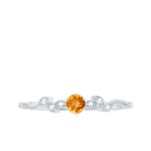 Natural Citrine Solitaire Leaf Inspired Promise Ring with Diamond