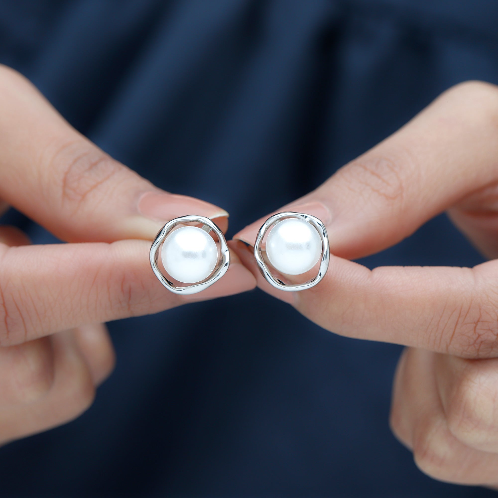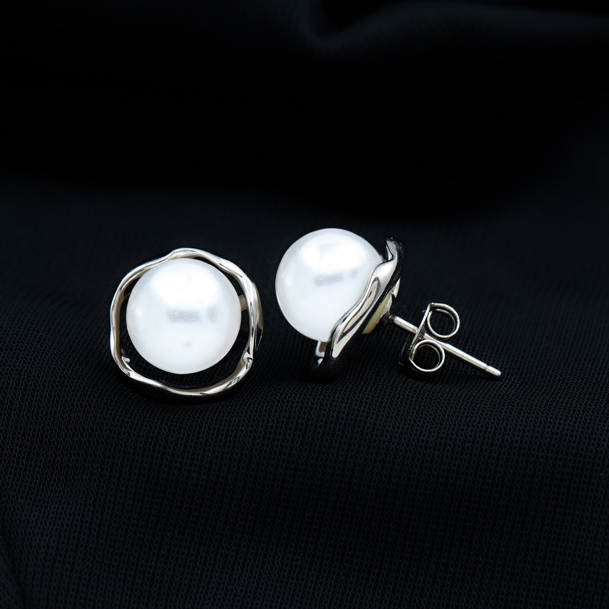 A whisper of the ocean, captured in a timeless design - these Freshwater Pearl Earrings are where natures elegance meets modern craftsmanship. Handcrafted with love and precision in 14K White Gold Plated Silver, these Solitaire Stud Earrings feature a 10 MM Round Shaped Freshwater Pearl, known for its natural glow and classic charm. The pearl is delicately cradled in a soft, wavy metal frame that flows gracefully around its curves, adding a contemporary touch to this traditional gem. The design of these Pearl Stud Earrings is not only elegant but also comfortable and practical, secured with screw back closure that enhances a firm and worry-free fit, perfect for everyday wear or special moments. As a birthstone of June, pearls represent purity, wisdom, and inner peace, making these White Pearl Earrings a meaningful and heartfelt birthday gift for anyone born in June. Simple yet striking, these Silver and Pearl Earrings are versatile enough to pair with both ethnic and western outfits. From boardrooms to brunch dates, they add a subtle glow that enhances any look. Add this timeless beauty to your collection or gift a piece of the oceans calm to someone you love.
