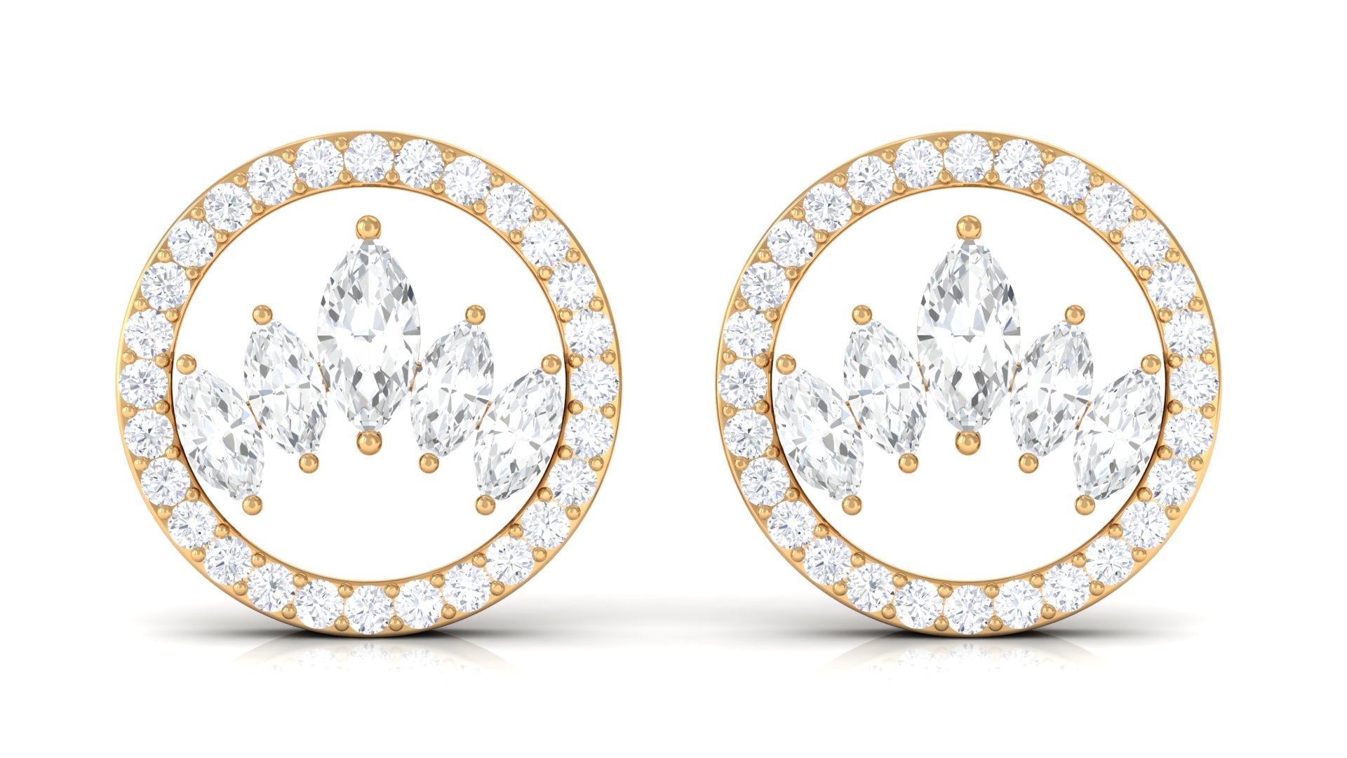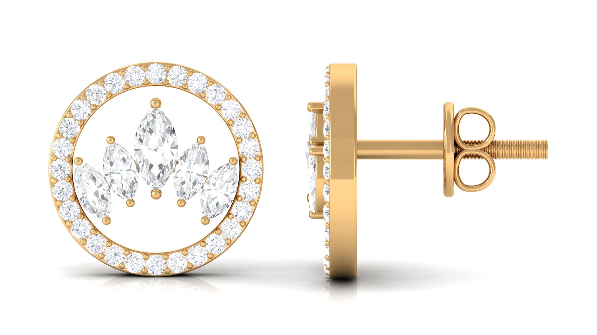 Compliment any outfit with a touch of modern elegance with these Circle Earrings, where contemporary design meets timeless sparkle. Each Earring features a delicate Open Circle lined with dainty Round Shape Diamond stones, with Marquise Shaped Diamond stones placed inside, creating a mesmerizing play of light and sophistication. The secure Screw Back Closure ensures a comfortable fit, making them perfect for everyday wear or for adding a refined sparkle to special occasions. Their versatile design pairs effortlessly with casual outfits, office wear or evening ensembles, making them a chic addition to any jewelry collection. Delivered in a stylish jewelry box, these Diamond Stud Earrings arrive ready to gift, ideal for birthdays, anniversaries or as a thoughtful surprise for someone special. These Diamond Ear Studs are a symbol of elegance, style and lasting beauty, offering both charm and sophistication in one stunning piece. Whether treating yourself or delighting a loved one, these Diamond Earrings turn every glance into admiration and every outfit into a statement.