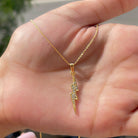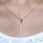 Stay on trend with this charming Thunderbolt Pendant, crafted from solid gold. The pendant is adorned with sparkling round-cut diamonds for an eye-catching appearance. Wear this Gold Thunderbolt Pendant for a stylish and fashionable look.