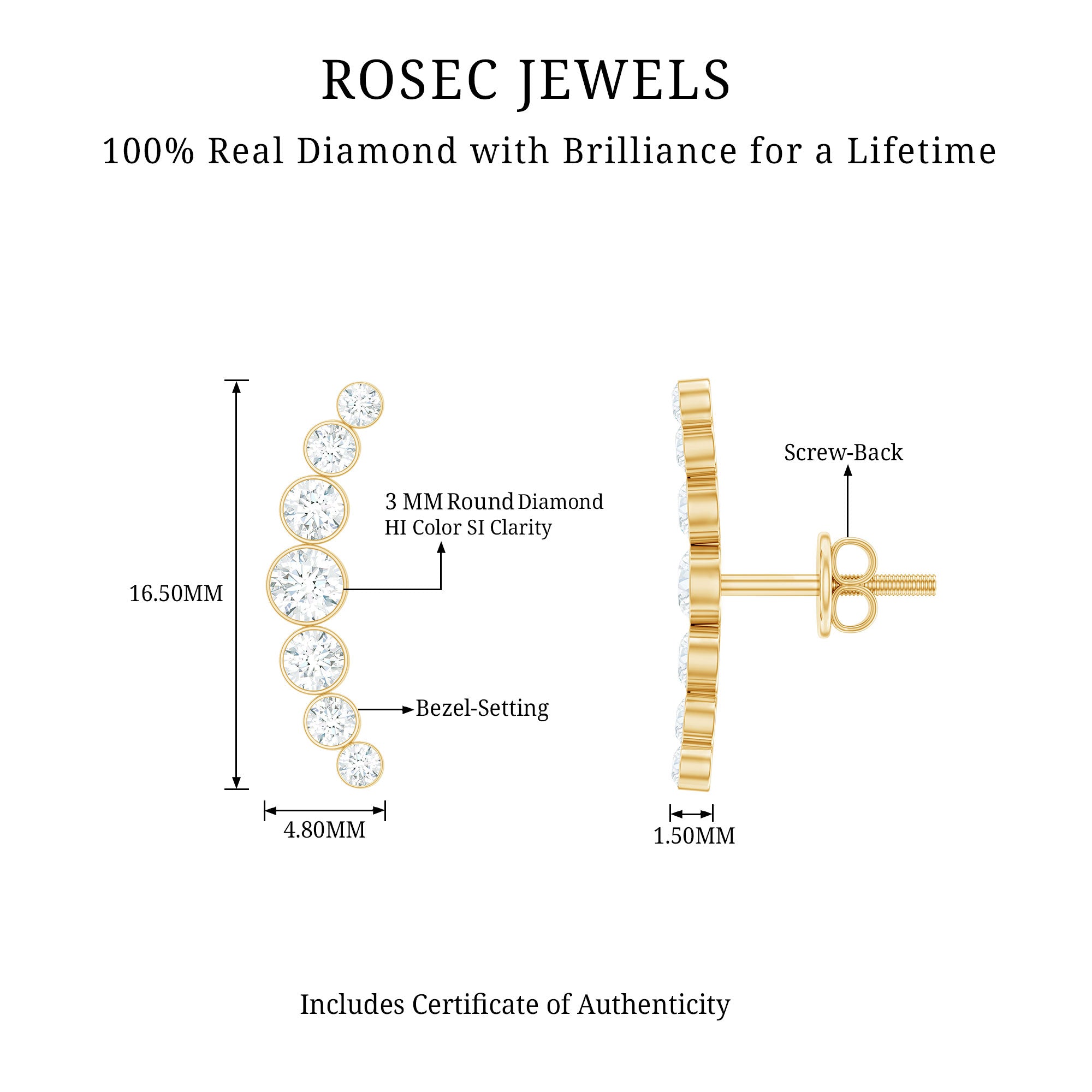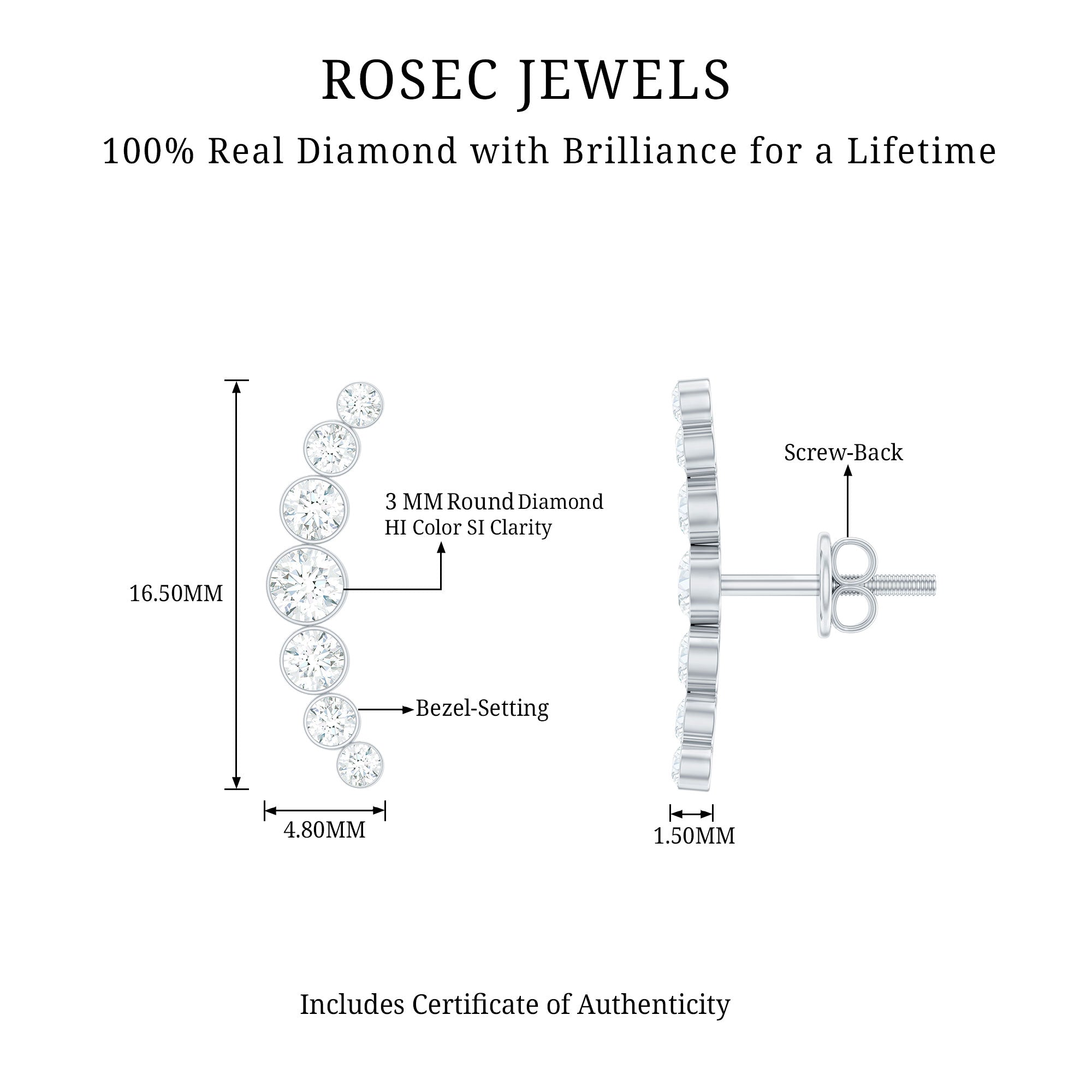 Shimmer in every sway, these Diamond Climber Earrings exude timeless elegance. Crafted with exquisite attention to detail, each earring features Round Shape Diamond gemstones, meticulously set to enhance sparkle and brilliance. Their sleek design elevates any ensemble with sophistication and charm. The Screw Back Closure ensures a secure fit, promising comfort and peace of mind for the wearer. Embrace luxury and style with these captivating Diamond Earrings, perfect for any occasion.