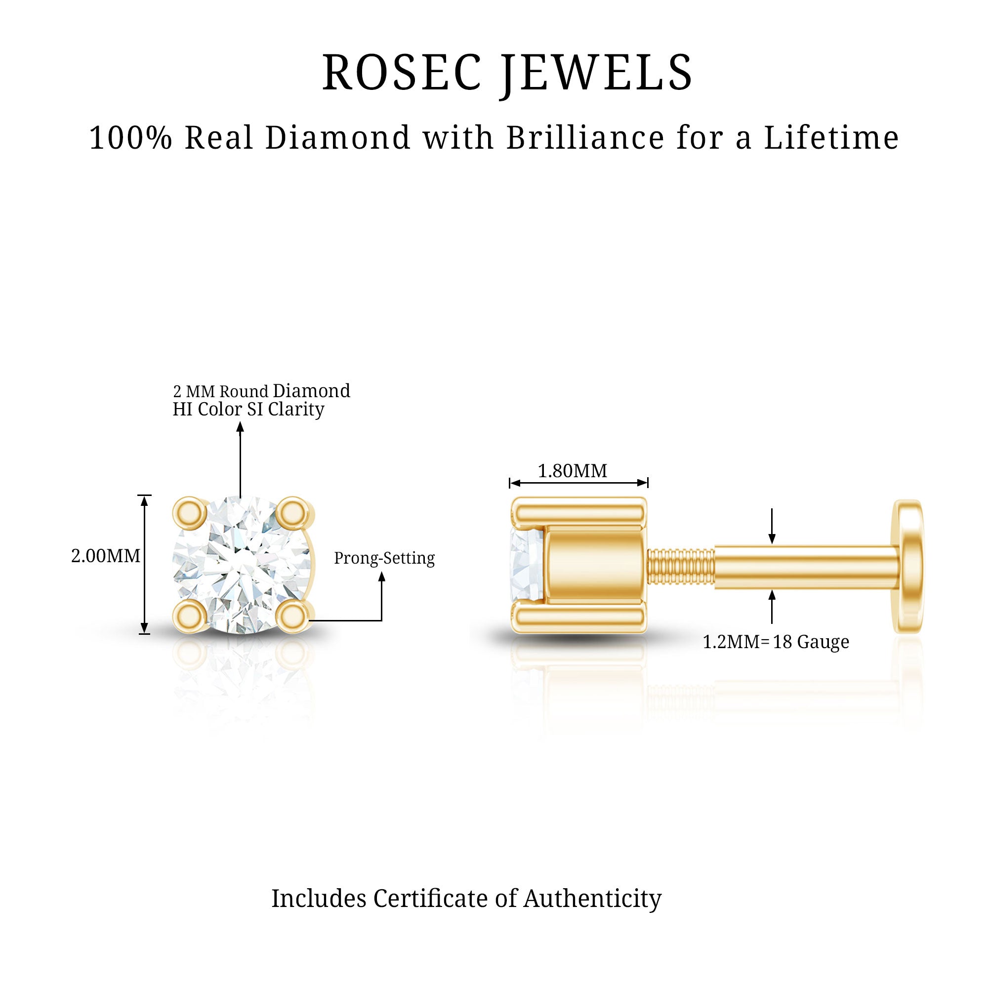 Get ready to dazzle with our show-stopping Diamond Piercing Stud Earring featuring a Natural Round Cut Diamond secured in 4 Prong Setting. You can also wear it on your Helix, Tragus, Conch, Upper Lobe, or Cartilage Piercing. The dainty size and elegant style make this 2 MM Diamond Cartilage Earring perfect for both everyday wear and special occasions. The adorable shine of the HI-SI Quality Diamond embedded in Conch Piercing Stud captures light from different angles and creates a radiance that will charm everyone.