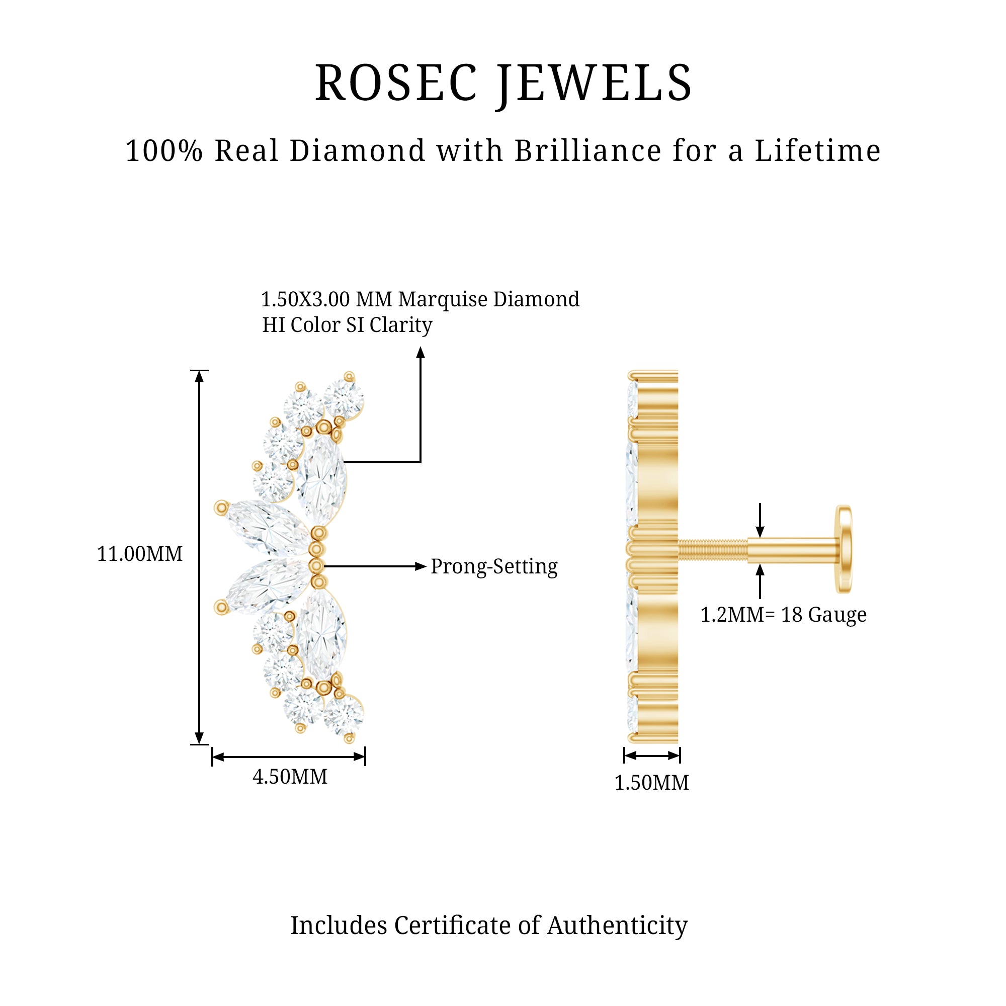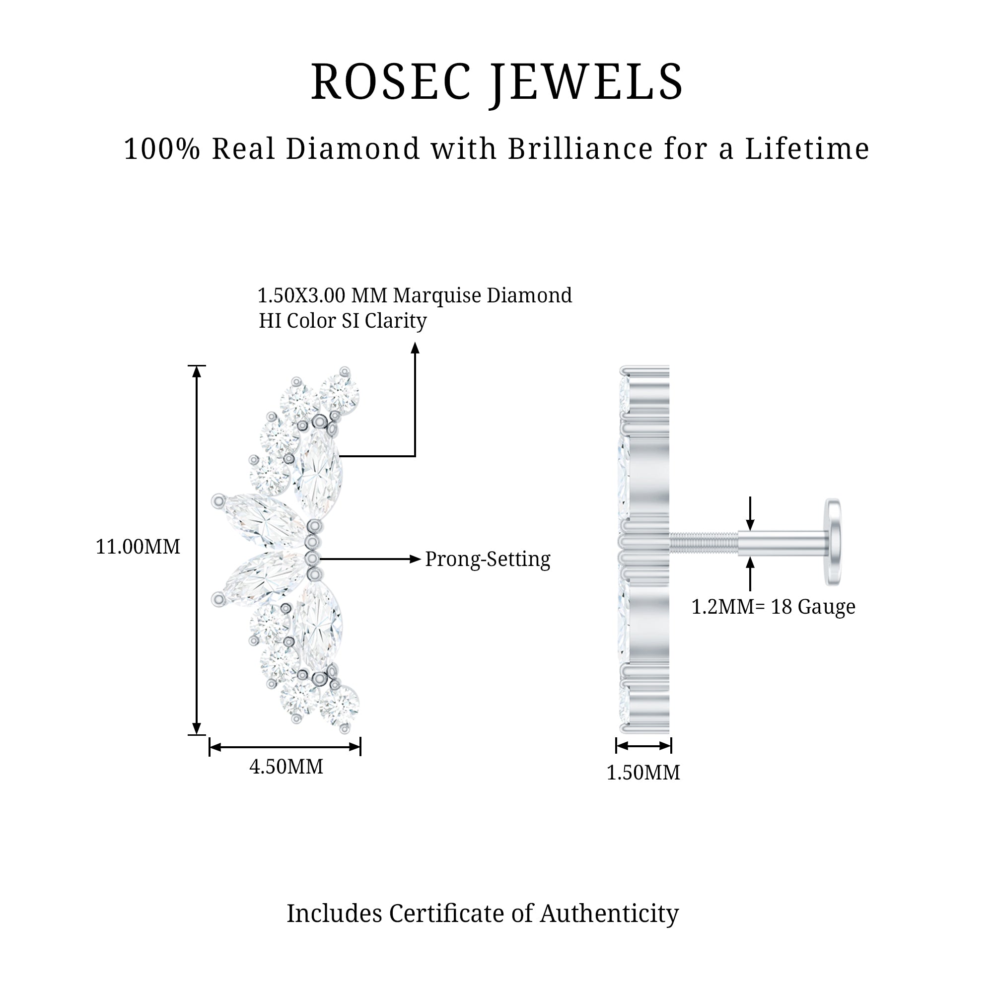 - You can simply slip this marquise diamond earring on your Helix, Cartilage, or Upper Lobe Piercing. The Flat Back Closure will help to keep it snugly secured in place.