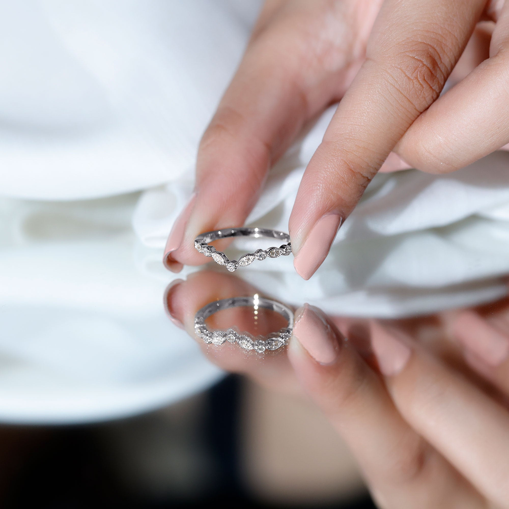 Elevate your engagement ring with this stunning Wedding Enhancer Ring. Crafted to perfection, this exquisite piece features a graceful curve that beautifully complements your solitaire or cluster ring. Adorned with sparkling Diamonds and Beaded Detailing, it adds a touch of elegance and sophistication to any bridal set. Perfect for anniversaries or special occasions, this Enhancer Ring is a timeless addition to your jewelry collection.