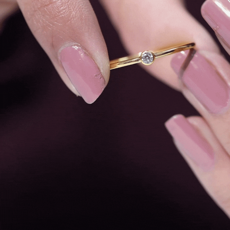 Create a meaningful pledge with this exquisite Diamond Promise Ring, a captivating piece of jewelry that exudes a radiant sparkle accentuated by a delicate Round Diamond in a Bezel Setting. This elegant Dainty Diamond Ring embodies timeless sophistication, making it a perfect symbol of your enduring commitment. Whether it is a token of affection for your beloved or a memento to commemorate a cherished moment or adventure in your life, this dainty and Stackable Diamond Ring is certain to add a touch of radiance to your day. Whether it serves as a prelude to an engagement ring or a reminder of a special milestone or experience, promise rings are an ideal way to honor a significant occasion. Additionally, this Diamond Ring can be elegantly paired with other wedding bands or worn alone for a striking effect.