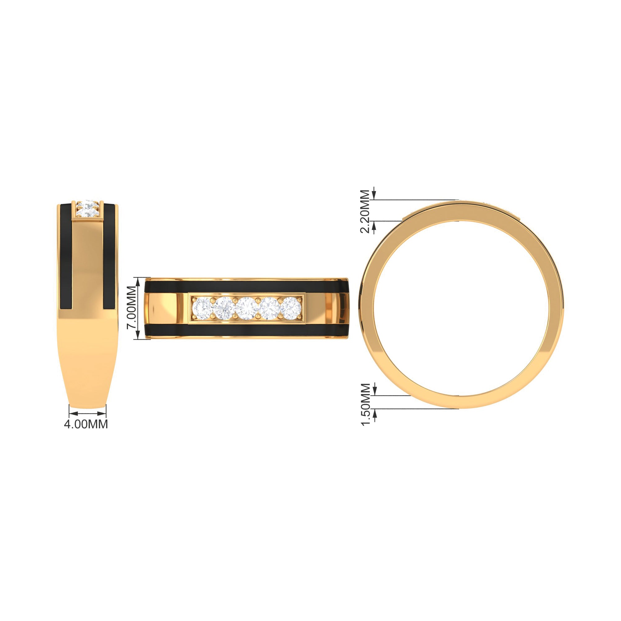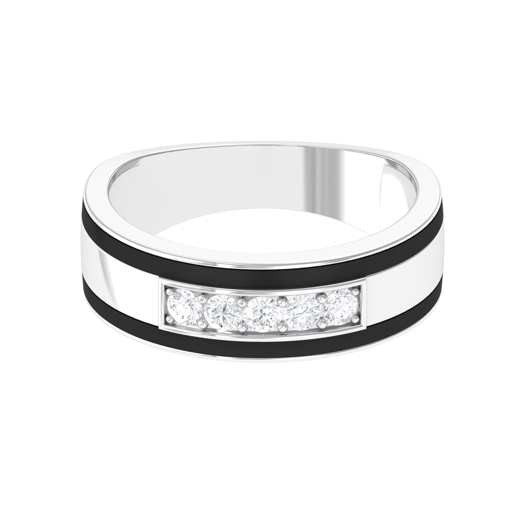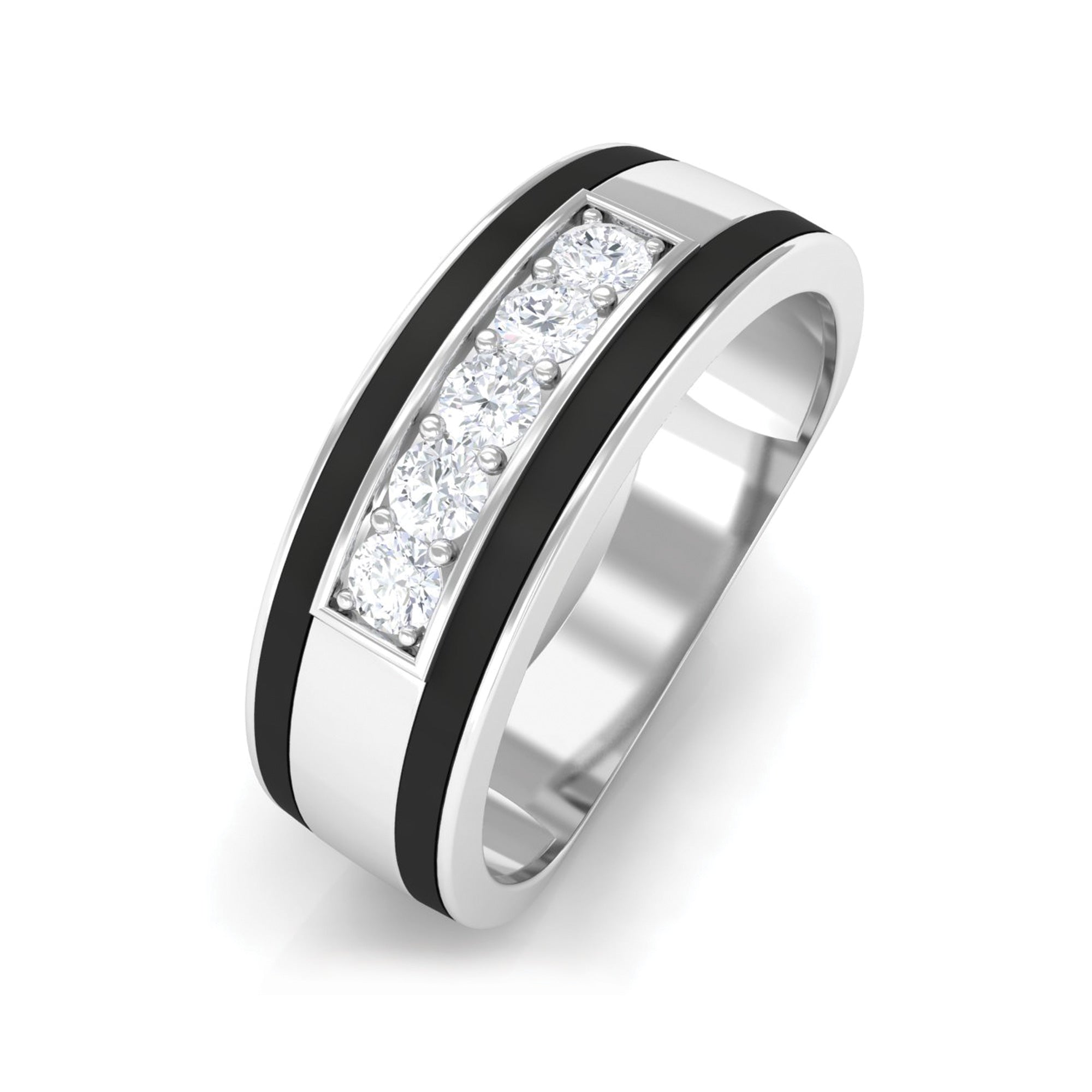 Step forward and declare your lifelong devotion with our Black Enamel Diamond Five Stone Wedding Band for Men. The combination of Diamond and black enamel creates a captivating and sophisticated look. Make a stylish and meaningful statement with this classic and refined wedding band.