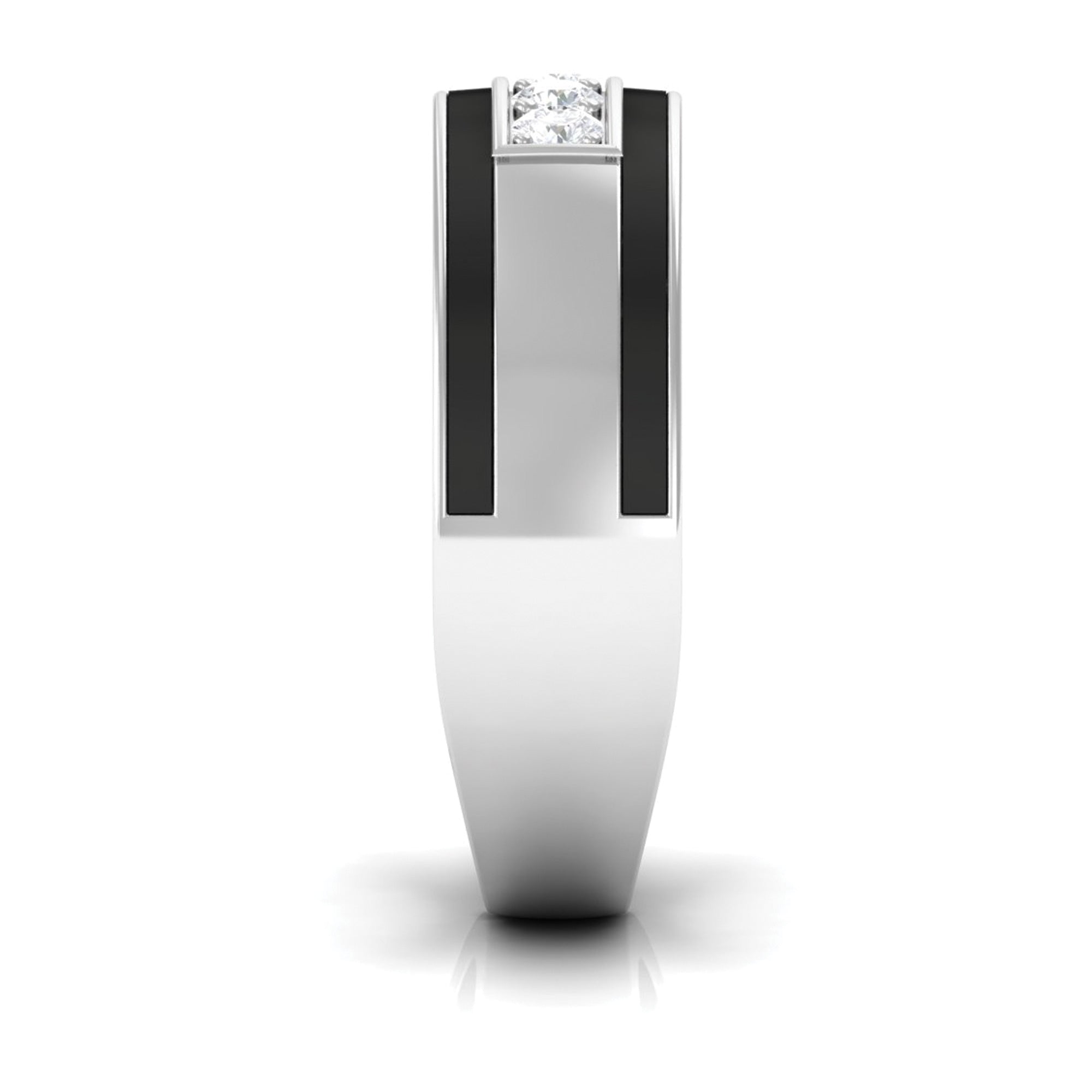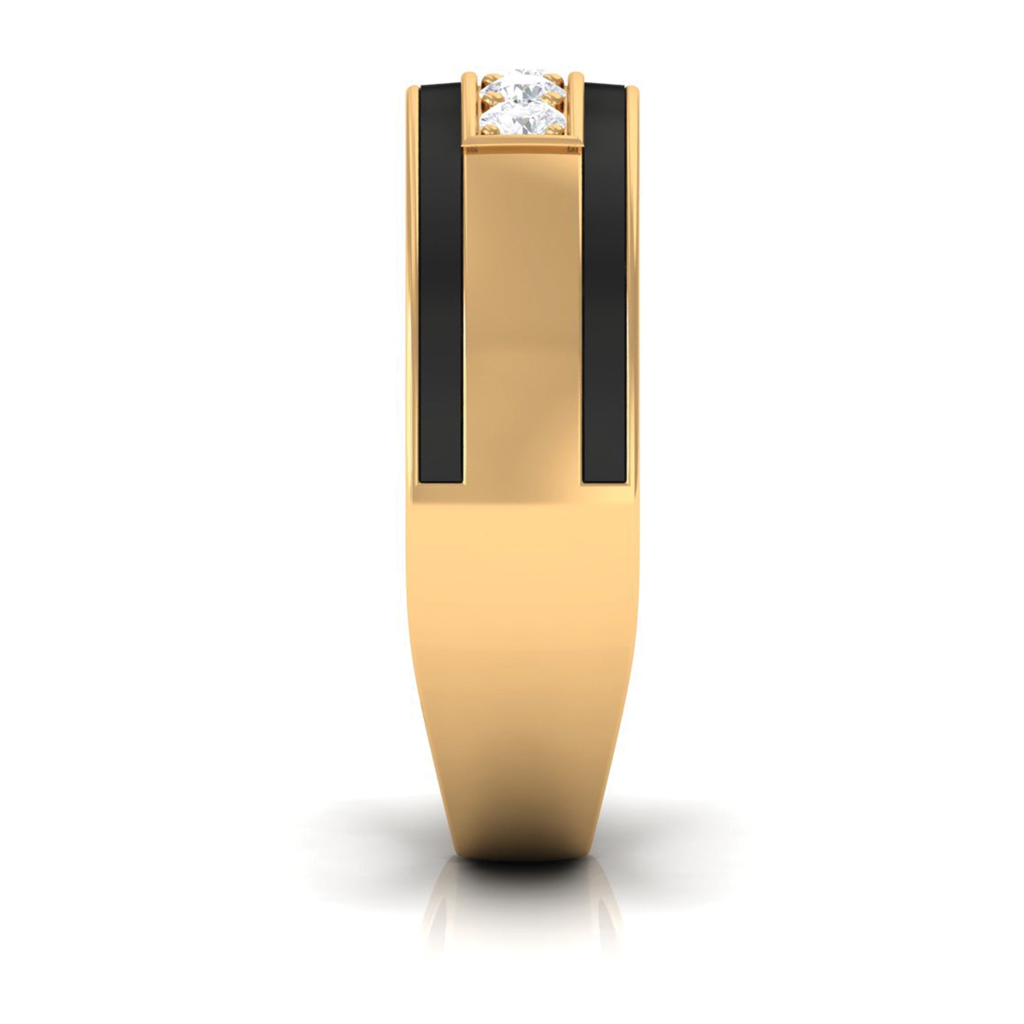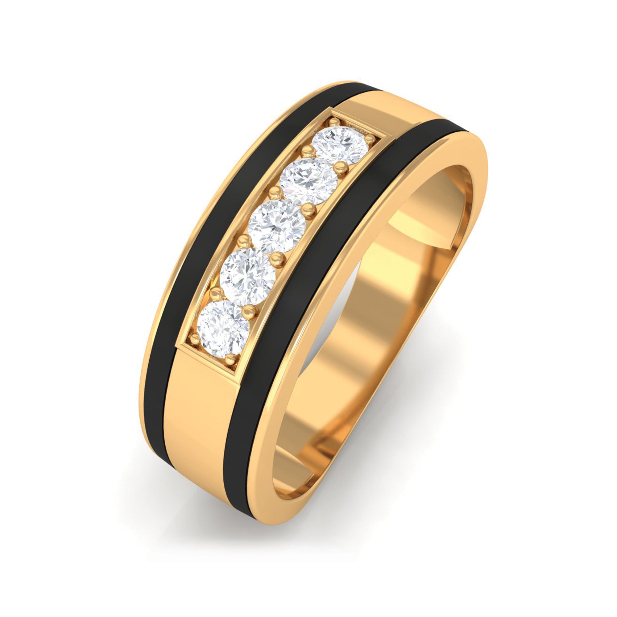 Step forward and declare your lifelong devotion with our Black Enamel Diamond Five Stone Wedding Band for Men. The combination of Diamond and black enamel creates a captivating and sophisticated look. Make a stylish and meaningful statement with this classic and refined wedding band.