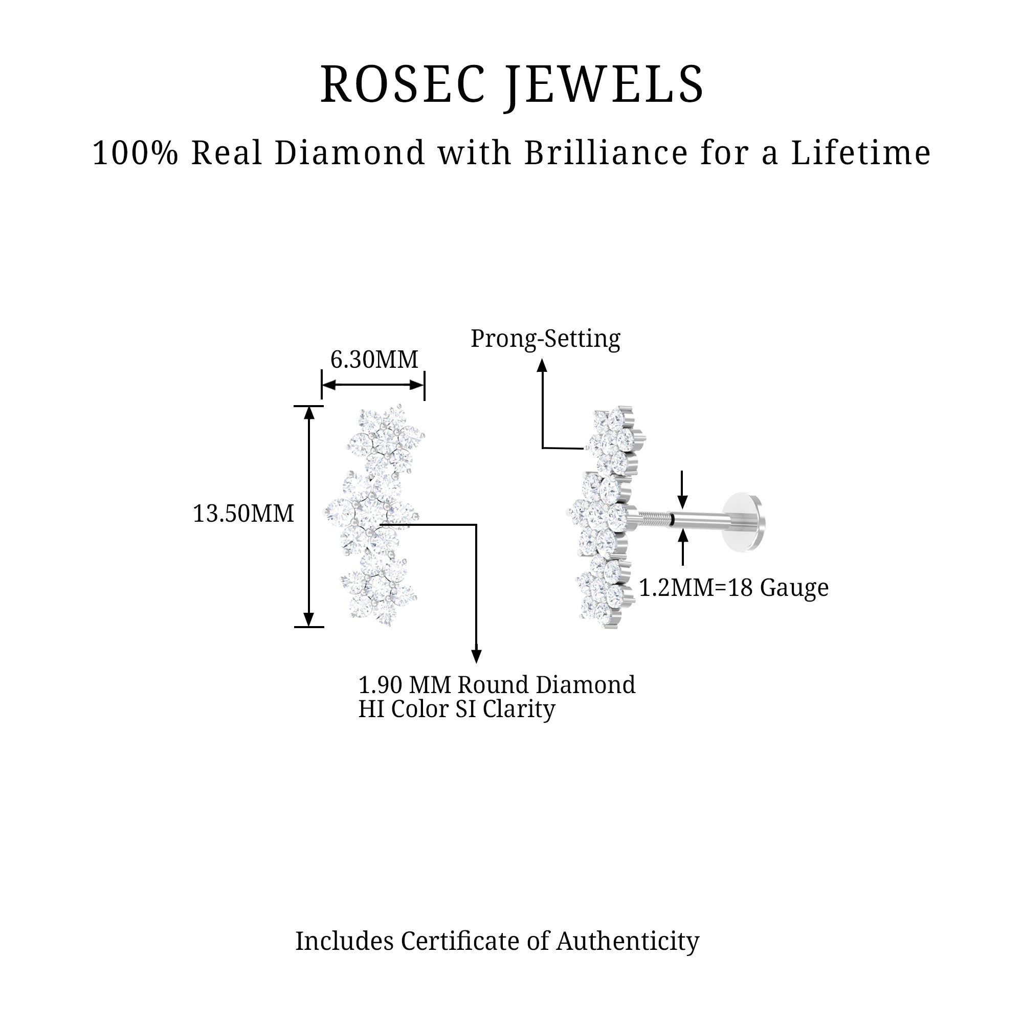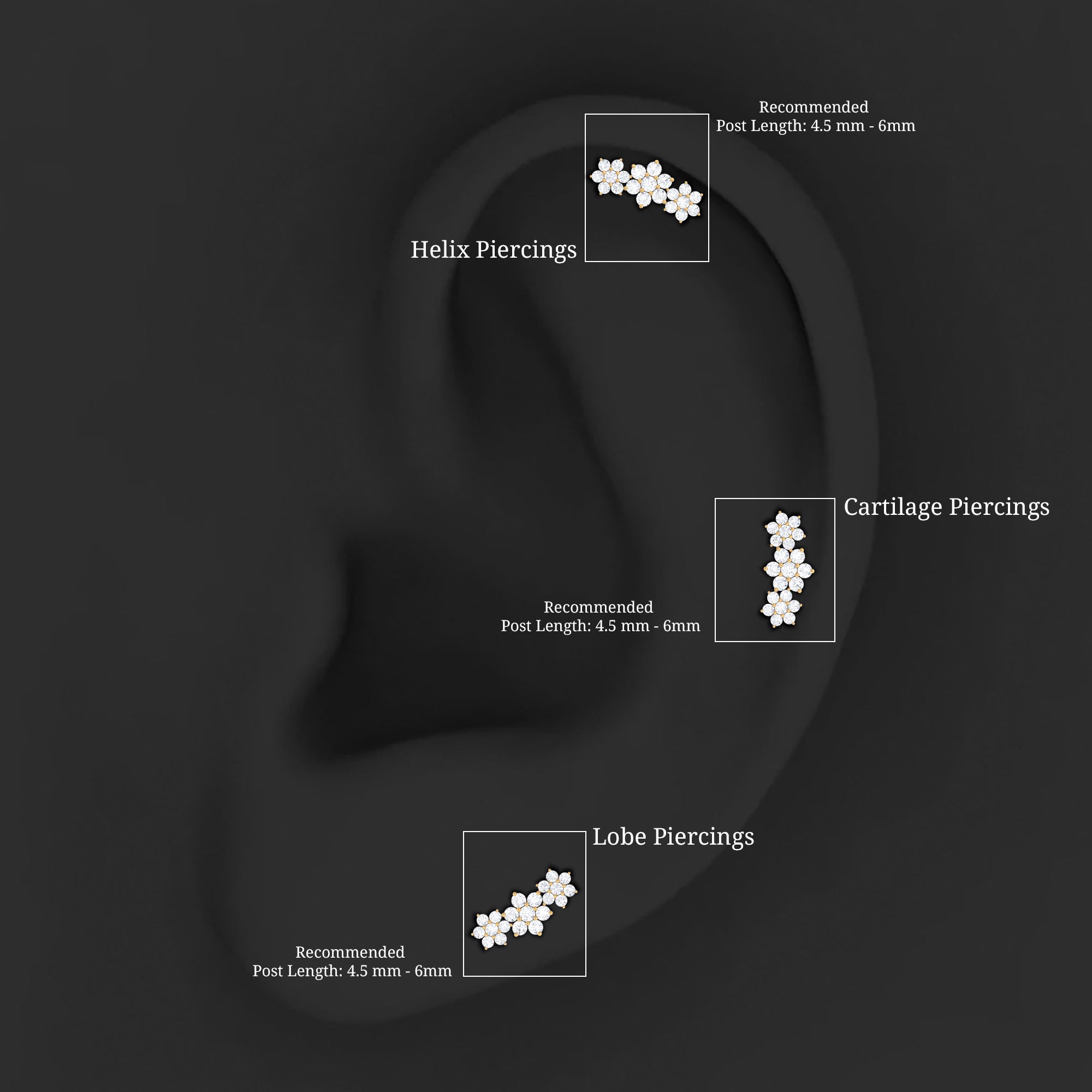 Ready to take center stage with some floral elegance? Check out our gorgeous Diamond Flower Earring. It showcases dazzling Round Diamonds beautifully arranged in three floral patterns, adding just the right amount of sparkle. If youre curious about where to flaunt this floral gem, you can easily wear this diamond crawler earring in your Cartilage, Helix, or Upper Lobe. And the best part? It features a Flat Back Closure, so you wont have to worry about losing that sparkle. Oh, and if youre looking to make your girls day truly memorable, this floral crawler earring is the perfect graduation gift that will make her shine like never before! It comes in a variety of metal color options and is also available in different metal selections. This Piercing Stud includes a certificate of authenticity for the gemstones and is delivered in a luxurious storage box. You can match it with your casual or party attire to dazzle like a star. The Diamond Ear Crawler is the easiest way to elevate your style to new heights.