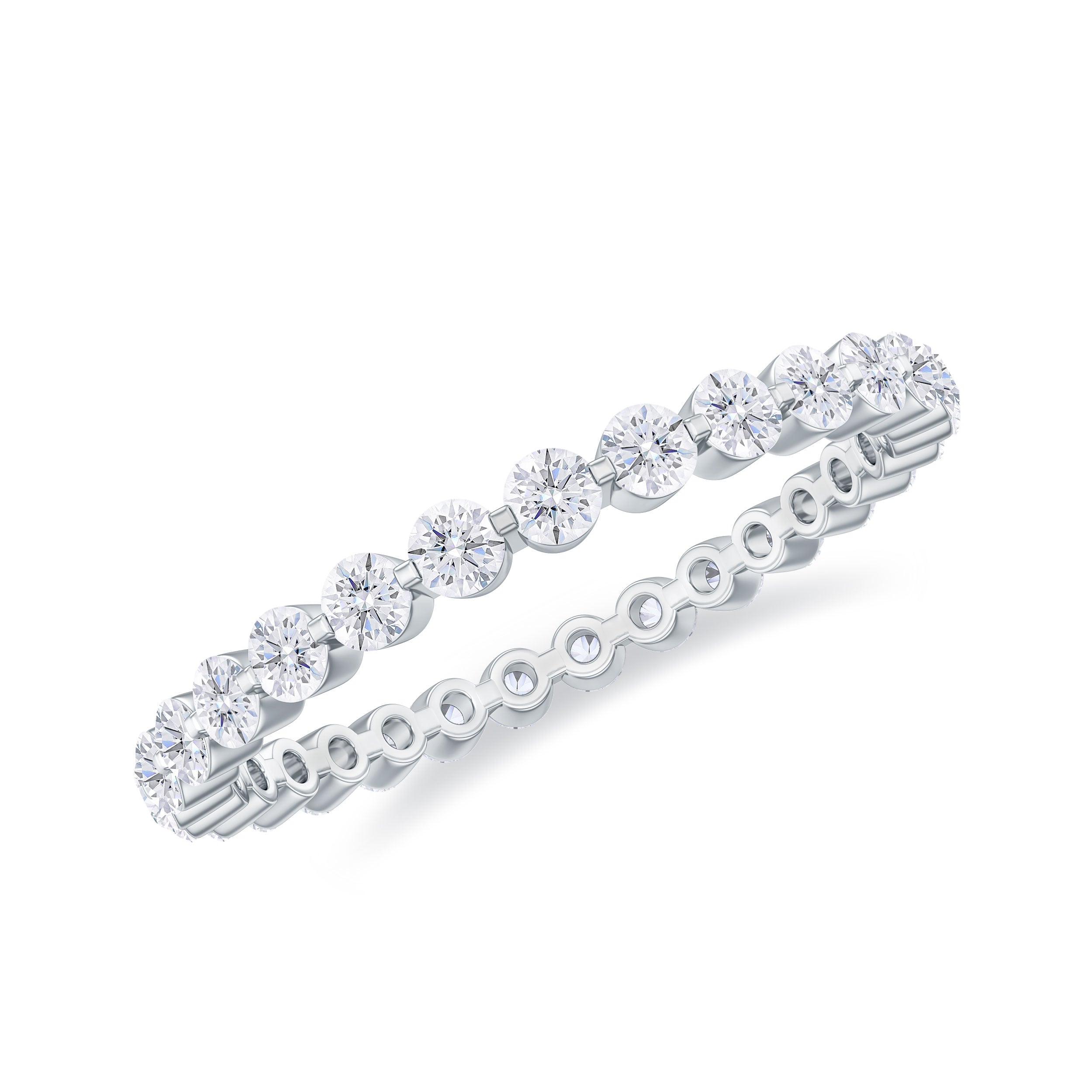 Show your love and devotion to the most special person in your life with our Diamond Full Eternity Ring. This exquisite ring features a full band of dazzling diamond gemstones, crafted in a Floating Eternity style, that adds a touch of shimmer to even the dullest of days. This precious piece of jewelry is the perfect way to express your love and make your beloved feel cherished and adored. Add a touch of glamour and elegance to any occasion with this remarkable and timeless ring that will be treasured for a lifetime.