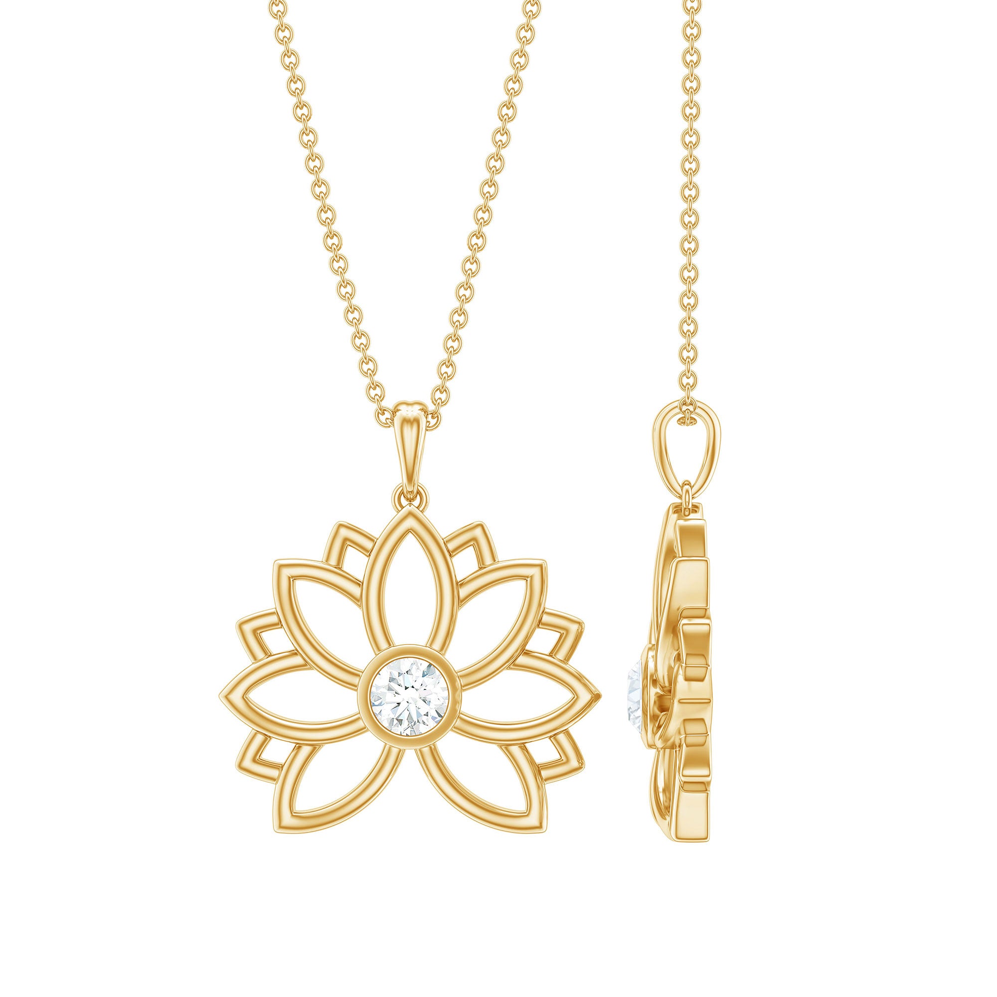 Natural Diamond Gold Lotus Floral Pendant Necklace in Bezel Setting