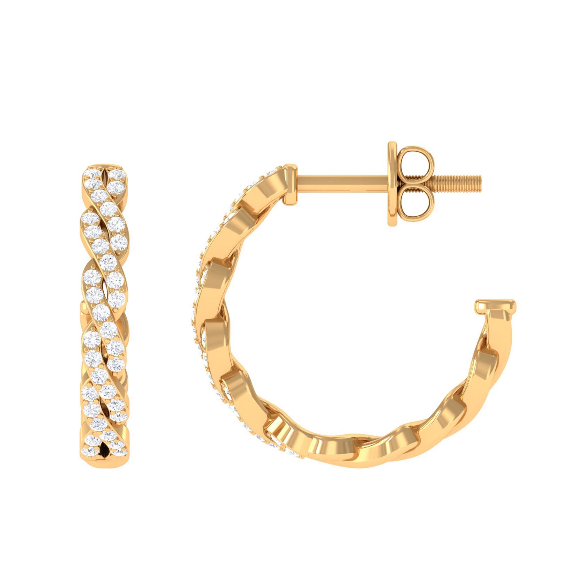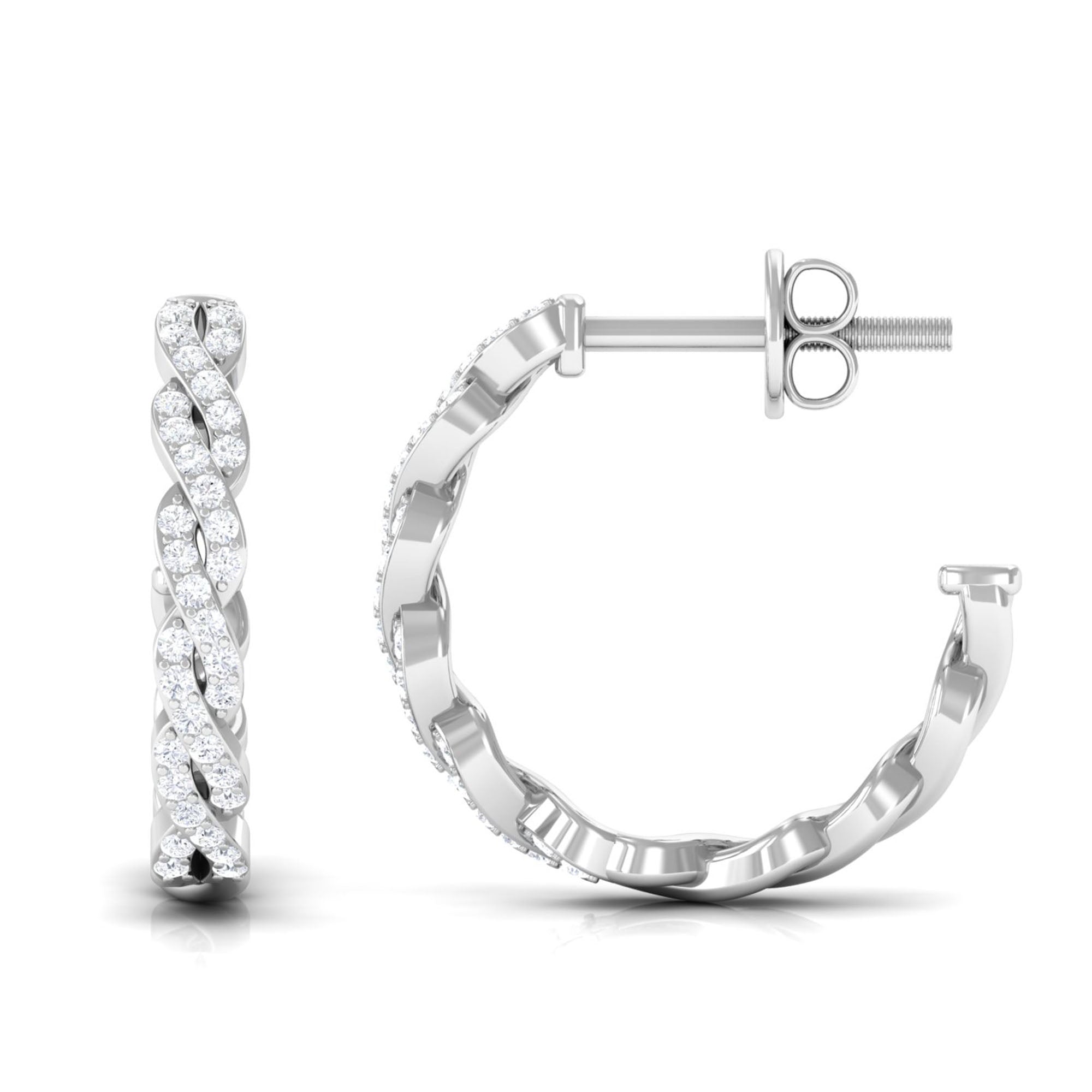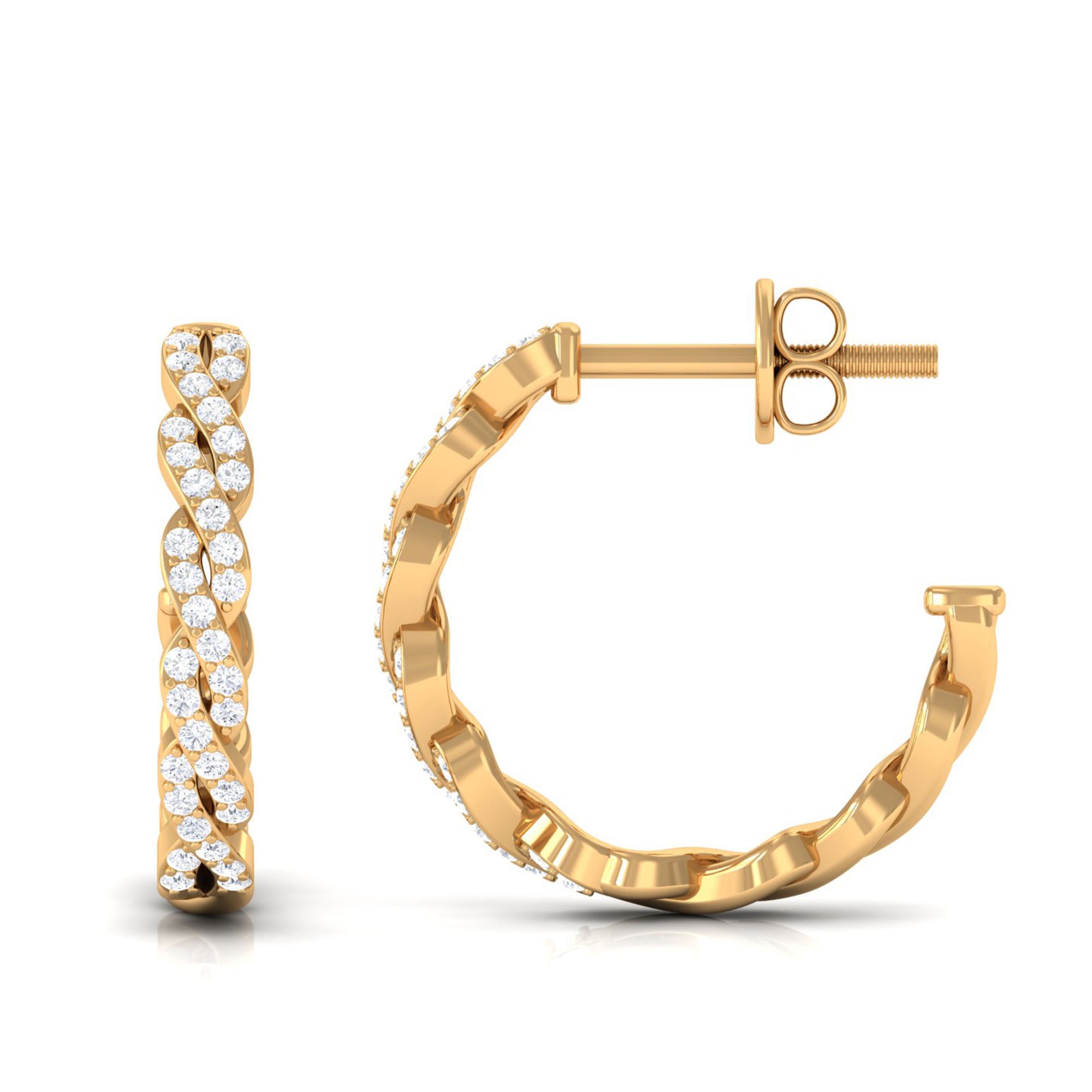 Uniquely designed to bring a touch of effortless elegance to any moment, these Twisted Hoop Earrings are the perfect blend of sparkle, style and sophistication. Their graceful Twisted design catches the light beautifully, giving each movement a soft shimmer that feels both modern and timeless. Delicately set dazzling Diamond stones add the right amount of brilliance, making these Half Hoop Earrings versatile enough for everyday wear yet stunning enough for special occasions. Crafted with a secure Screw Back Closure, these Diamond Hoop Earrings promise comfort and confidence all day long. Whether she pairs them with her favorite casual outfit or a glamorous evening look, these Diamond Earrings for Women elevate every ensemble with ease. Thoughtfully presented in a charming jewelry box, these Diamond Hoops make an unforgettable present for birthdays, anniversaries, holidays or simply to show someone how much they mean to you. Elegant and beautifully crafted, these Real Diamond Earrings are a little celebration of style and love in every twist.