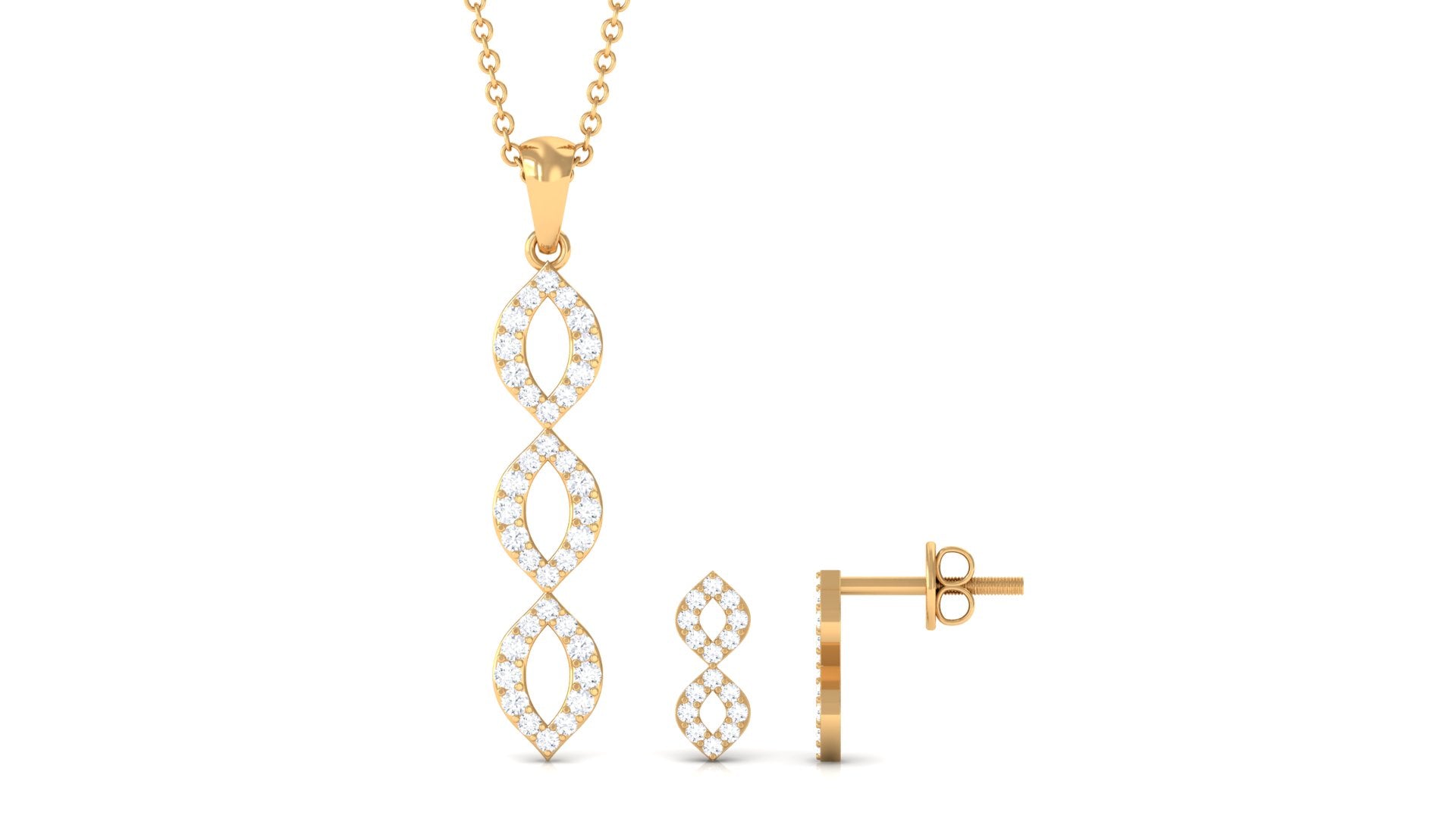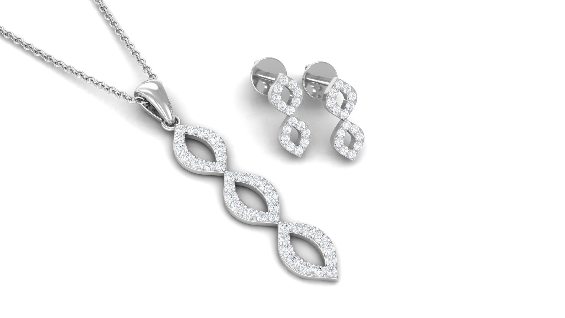 This elegant and timeless Natural Diamond Infinity Necklace and Earrings Set is the perfect way to express your love for someone special. The necklace features sparkling diamonds engraved in an infinity structure and comes in a surfaced prong setting. The infinity symbol represents everlasting love, commitment, and friendship, making this set a truly meaningful gift.