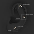 A heart filled with love. Our open heart earring is cast from hallmarked metal. The open heart design is carefully set with sparkling round brilliant cut diamonds for subtle sparkle as they catch the light. You can wear this cute heart earring in your helix, conch, tragus, cartilage, or upper lobe piercing. Secures comfortable with flat back closure. Wear this heart diamond earring individually or pair it with your other piercing jewelry as part of a curated earring stack. This beautiful and dainty diamond stud earring is every girls dream. Suitable for all ages and will look good on anyone. These are perfect for everyday wear and special occasions.