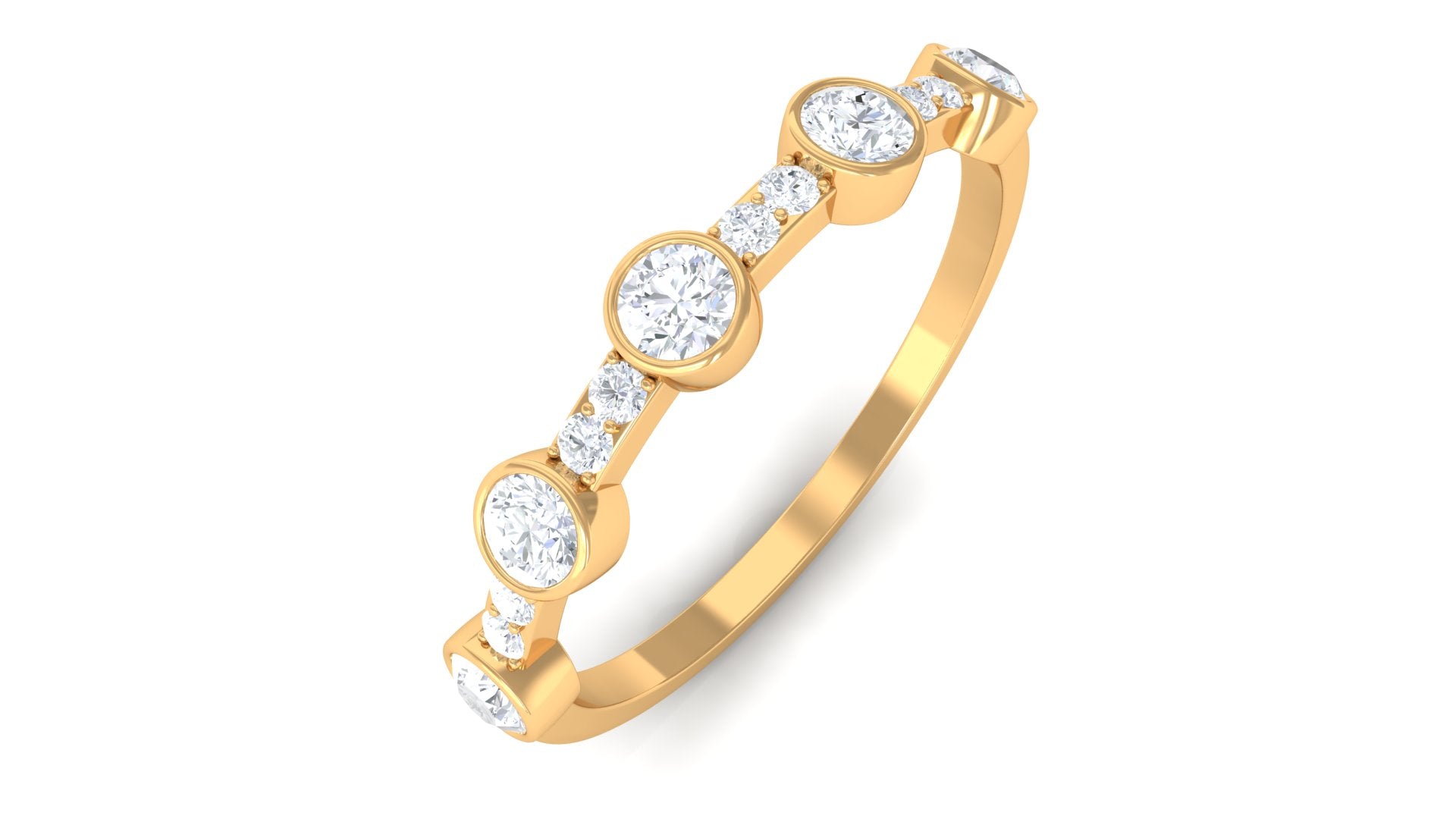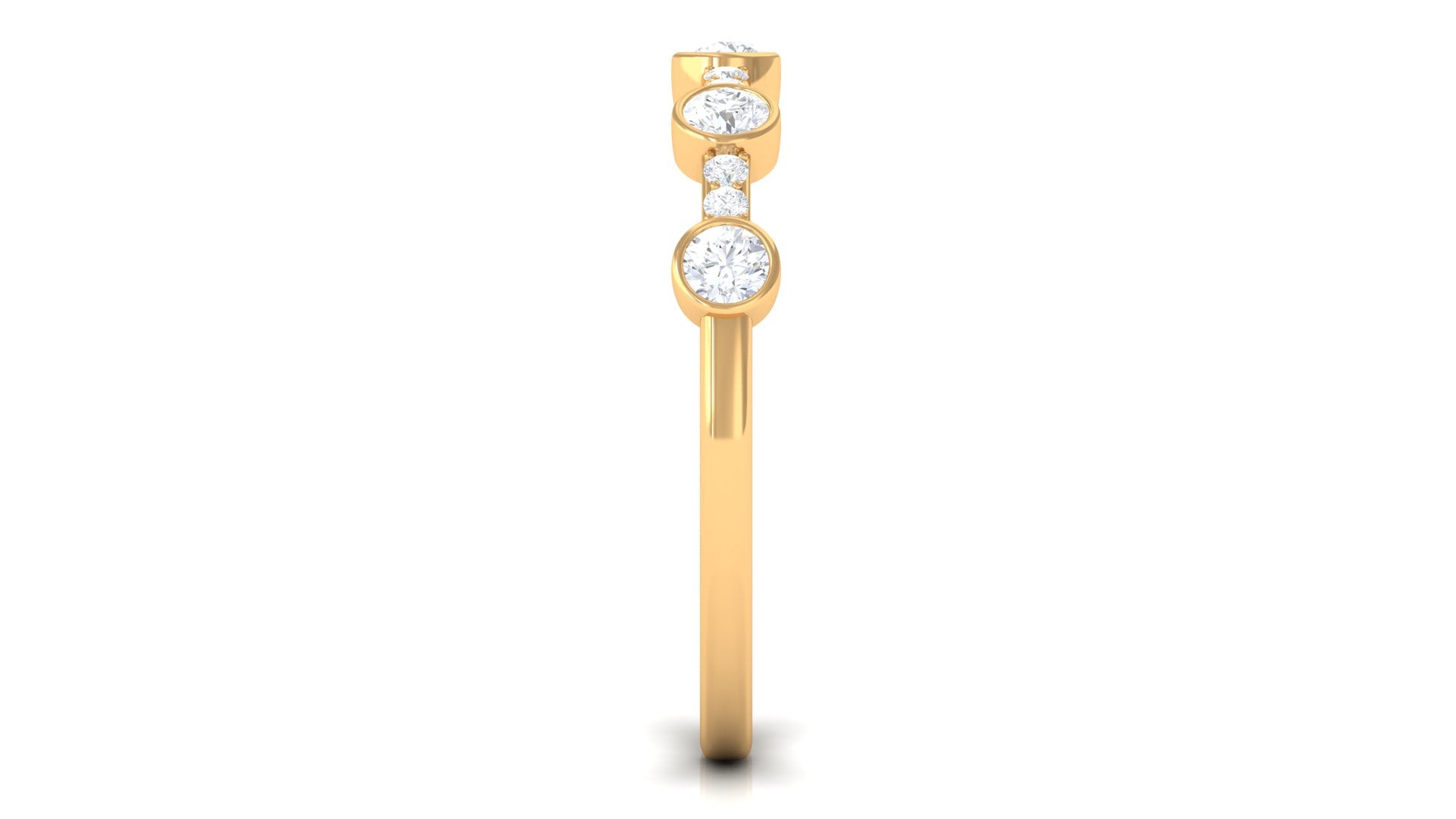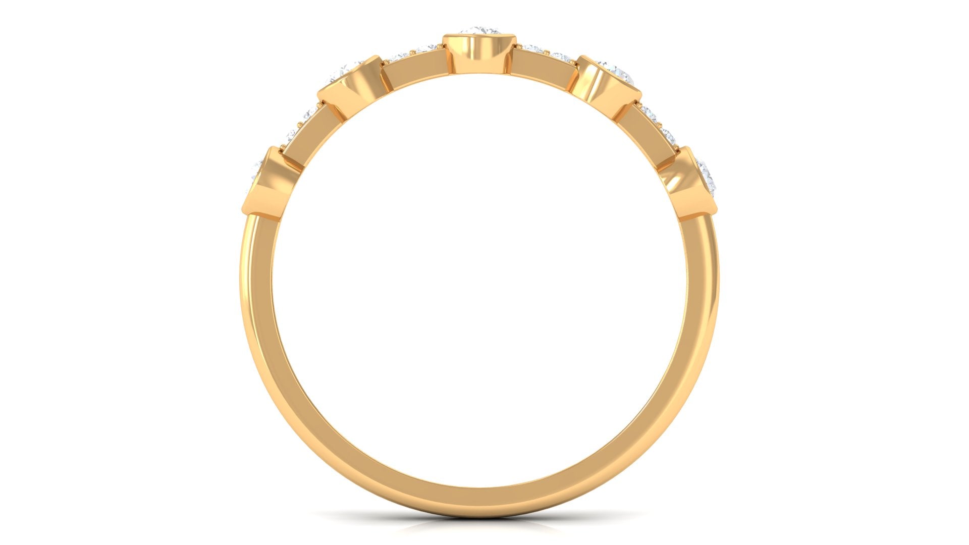 Make her special day truly memorable with our lovely Half Eternity Band. Round Shape Diamond gracefully sparkle in bezel setting, while tiny pave set Diamond add a charming flair to this exquisite ring. This Diamond Band Ring is designed to celebrate her unique style and beauty. Make her day unforgettable with this stunning diamond band, a token of your heartfelt sentiments.