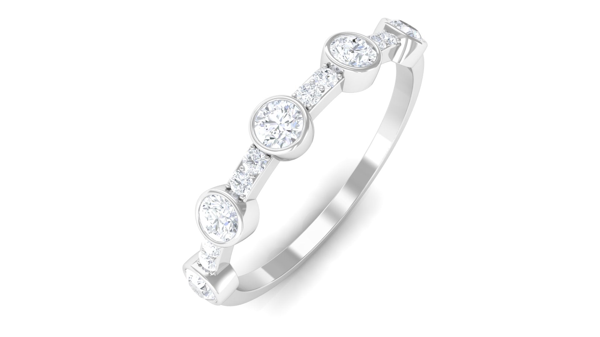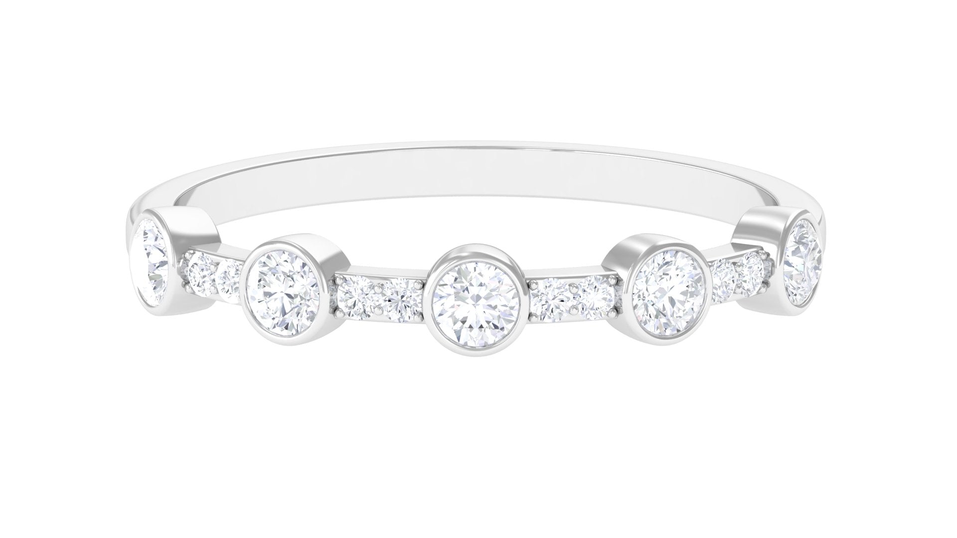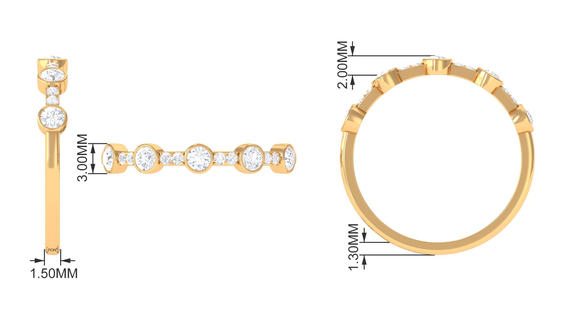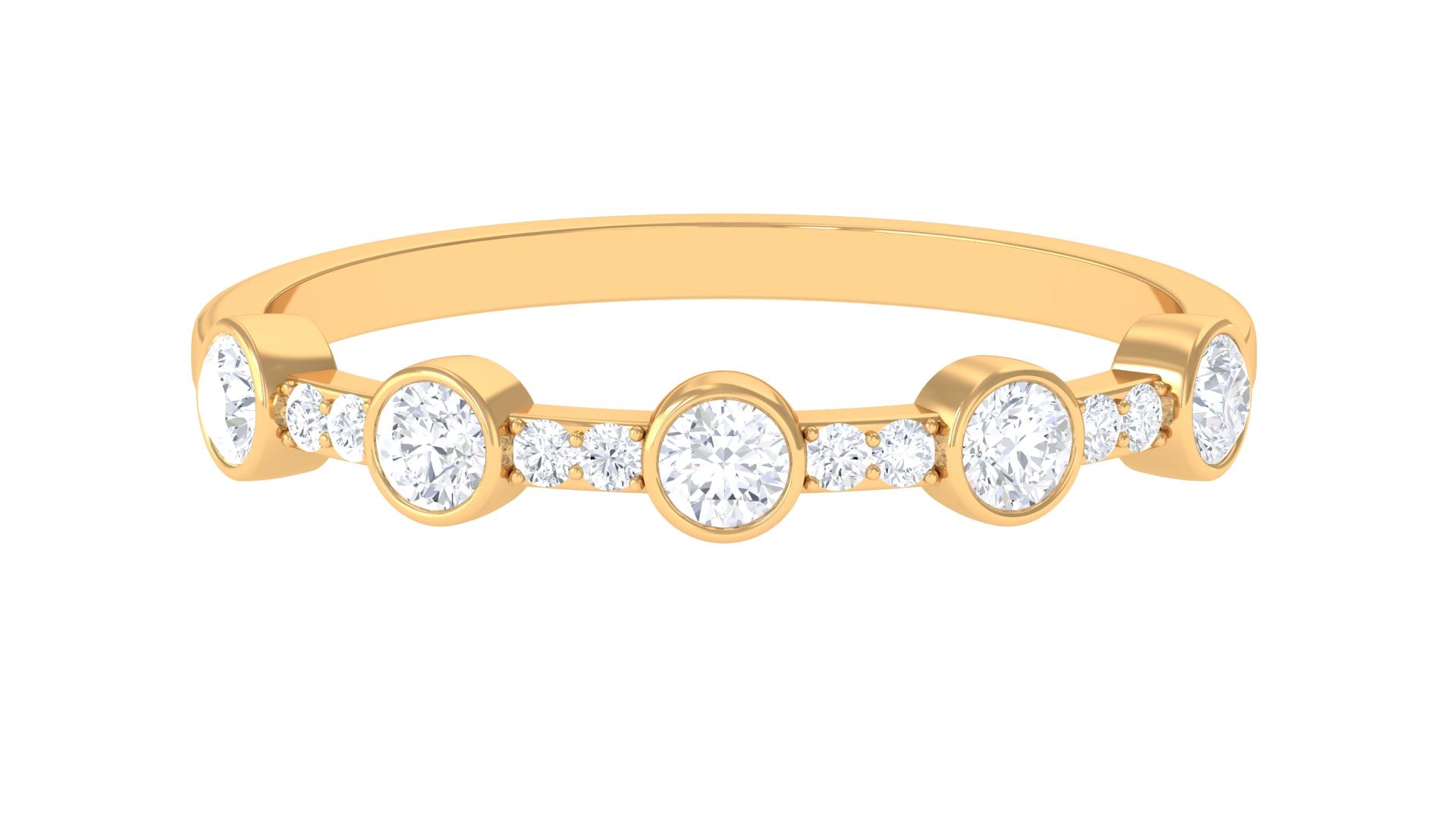 Make her special day truly memorable with our lovely Half Eternity Band. Round Shape Diamond gracefully sparkle in bezel setting, while tiny pave set Diamond add a charming flair to this exquisite ring. This Diamond Band Ring is designed to celebrate her unique style and beauty. Make her day unforgettable with this stunning diamond band, a token of your heartfelt sentiments.