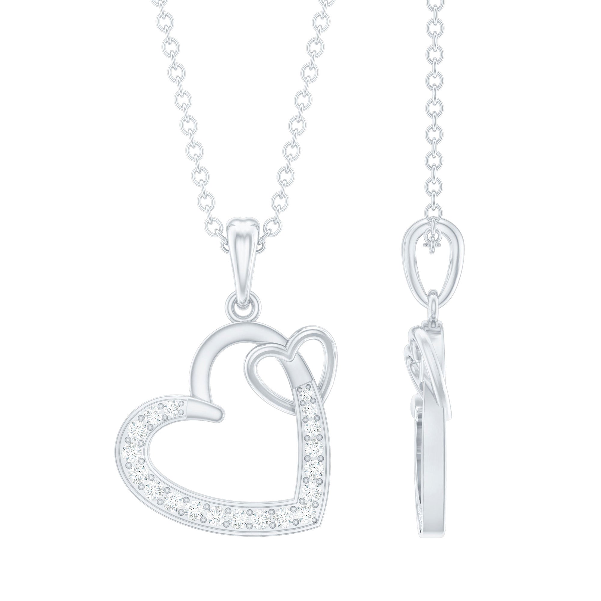 Natural Diamond Twin Interlocked Heart Pendant Necklace in Gold