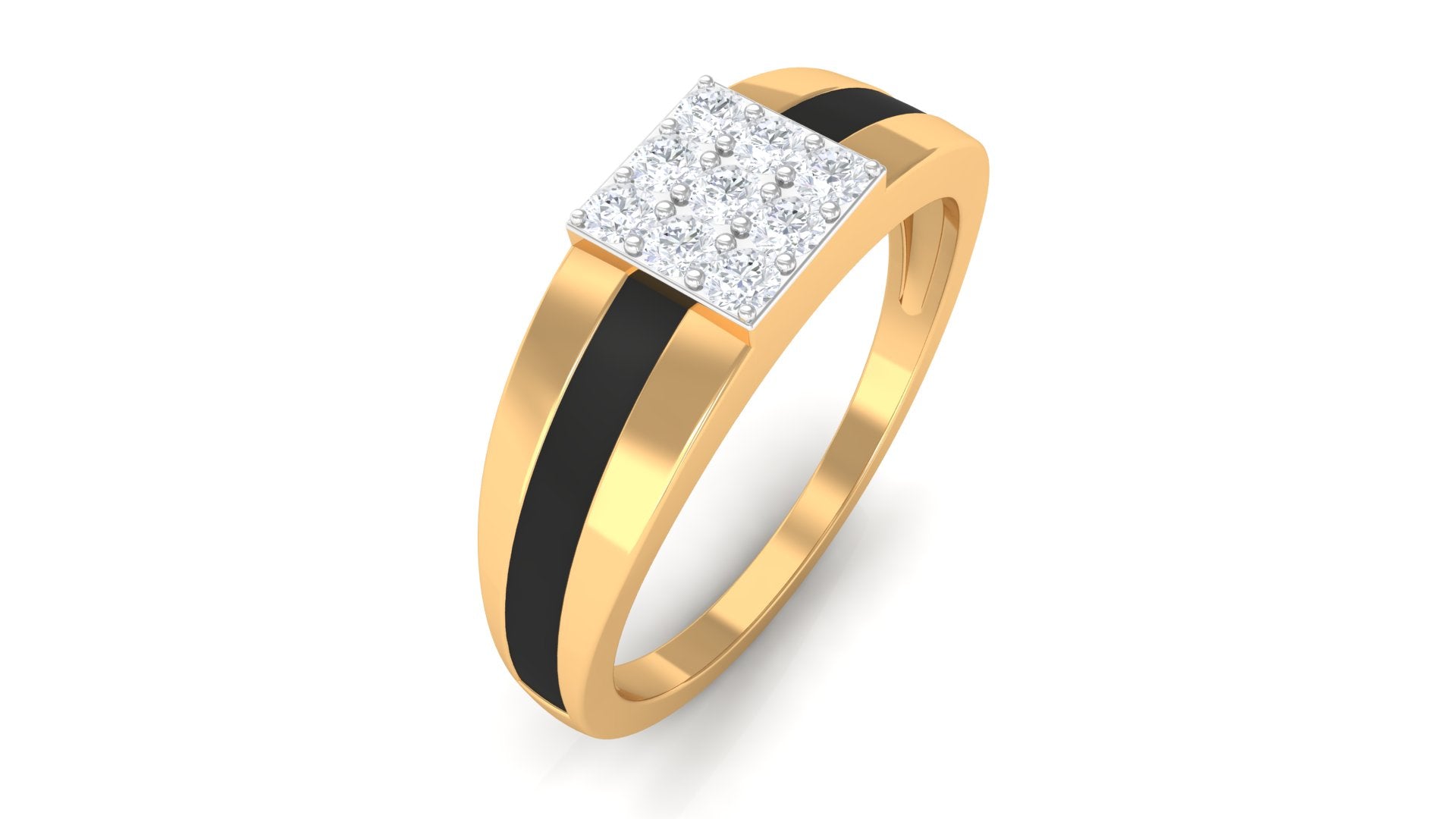 Embrace a lifelong commitment with our Black Enamel Gold Ring for Men. This captivating piece features a cluster of Round Shape Diamond set amidst black enamel, creating a unique and appealing design. Present this exquisite ring to your beloved, embarking on a journey of love and unity, cherishing every moment together.