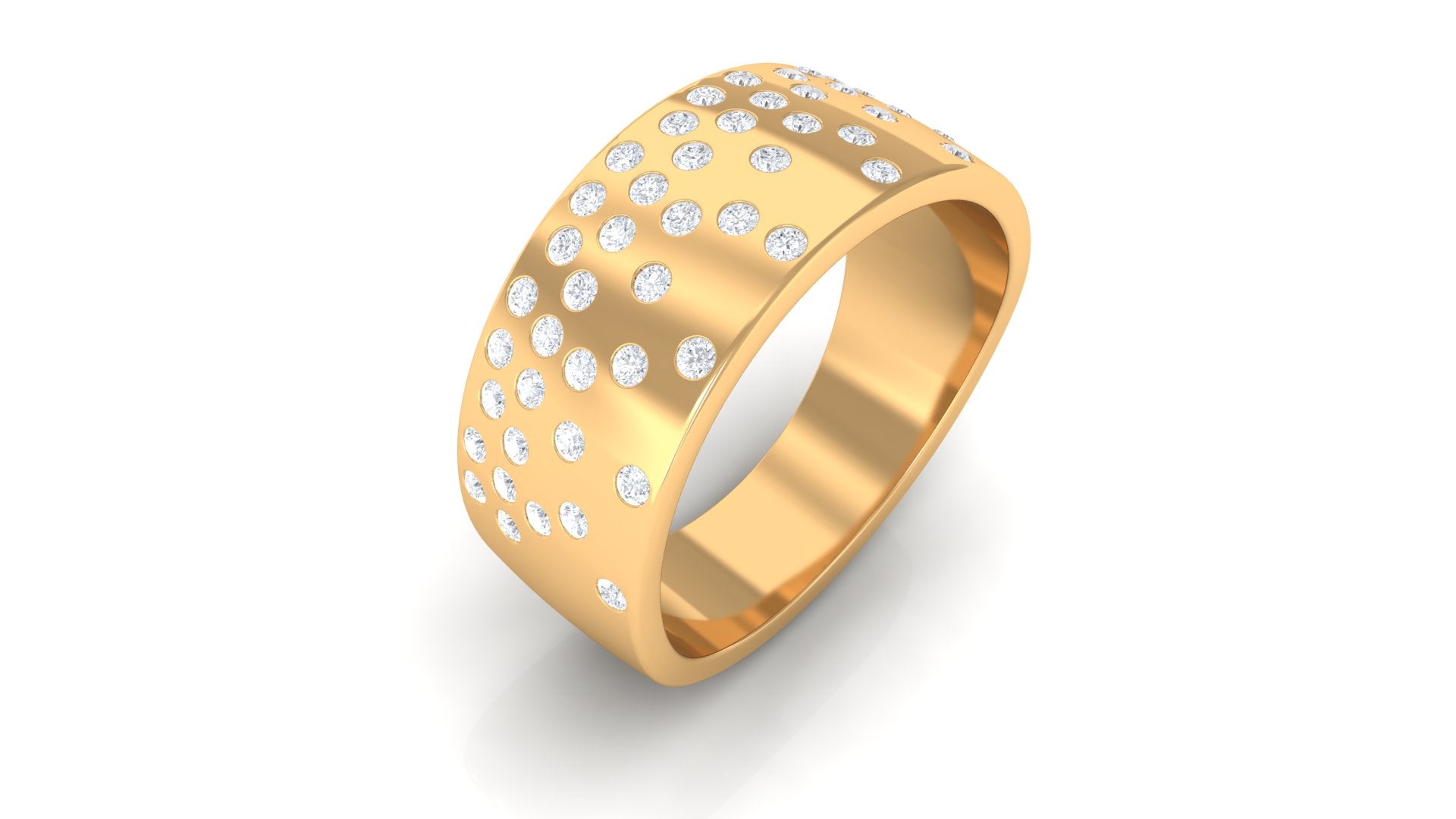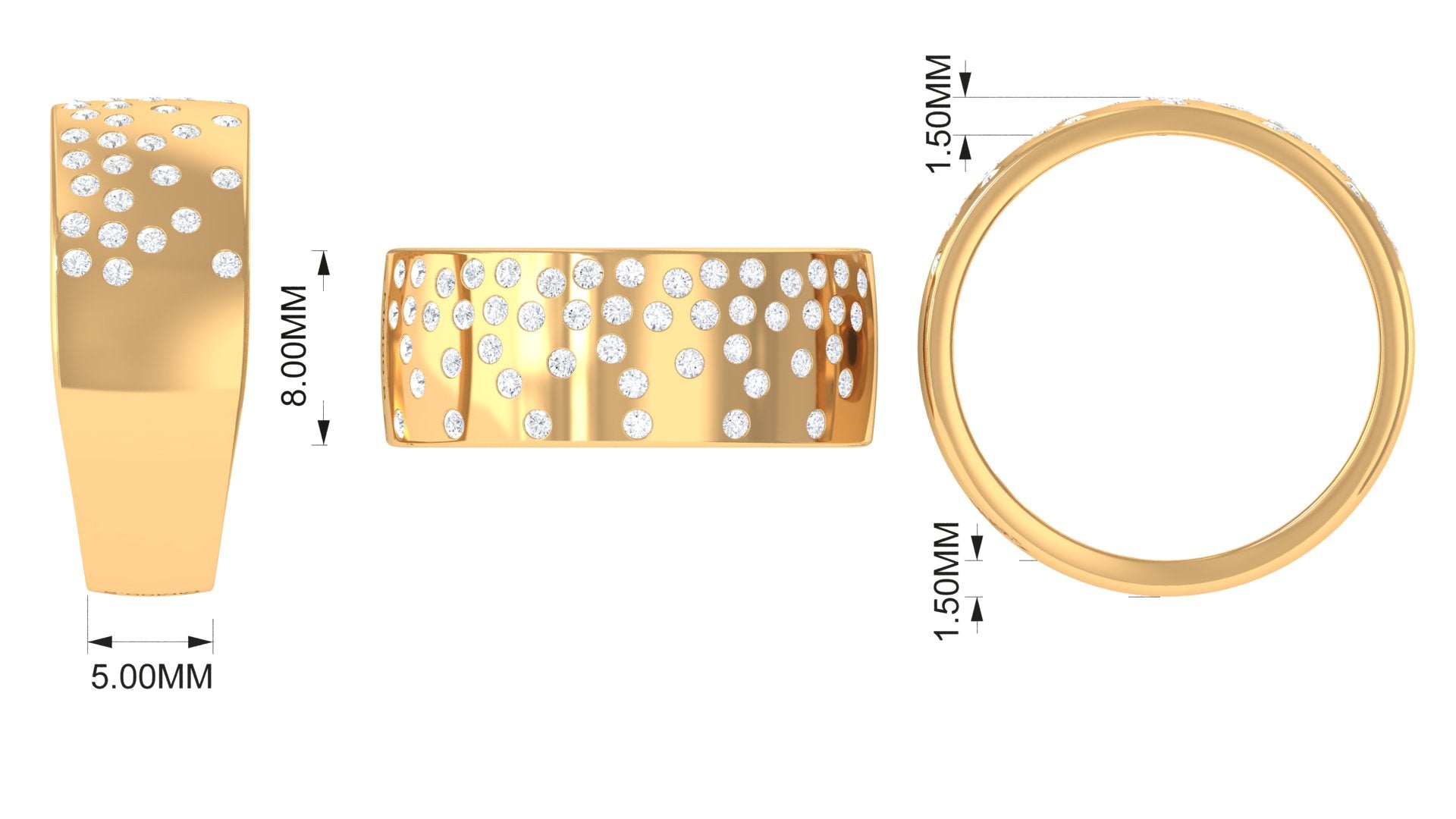 Experience the beauty of natural Diamond with our wide band ring, delicately crafted in a gypsy setting. With its wide band design, this ring makes a bold and elegant statement. Let this natural diamond wide band ring become a cherished symbol of your style and sophistication.