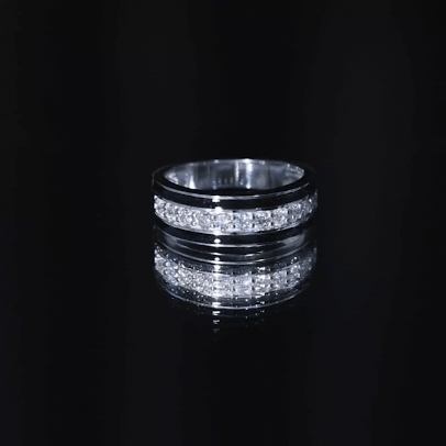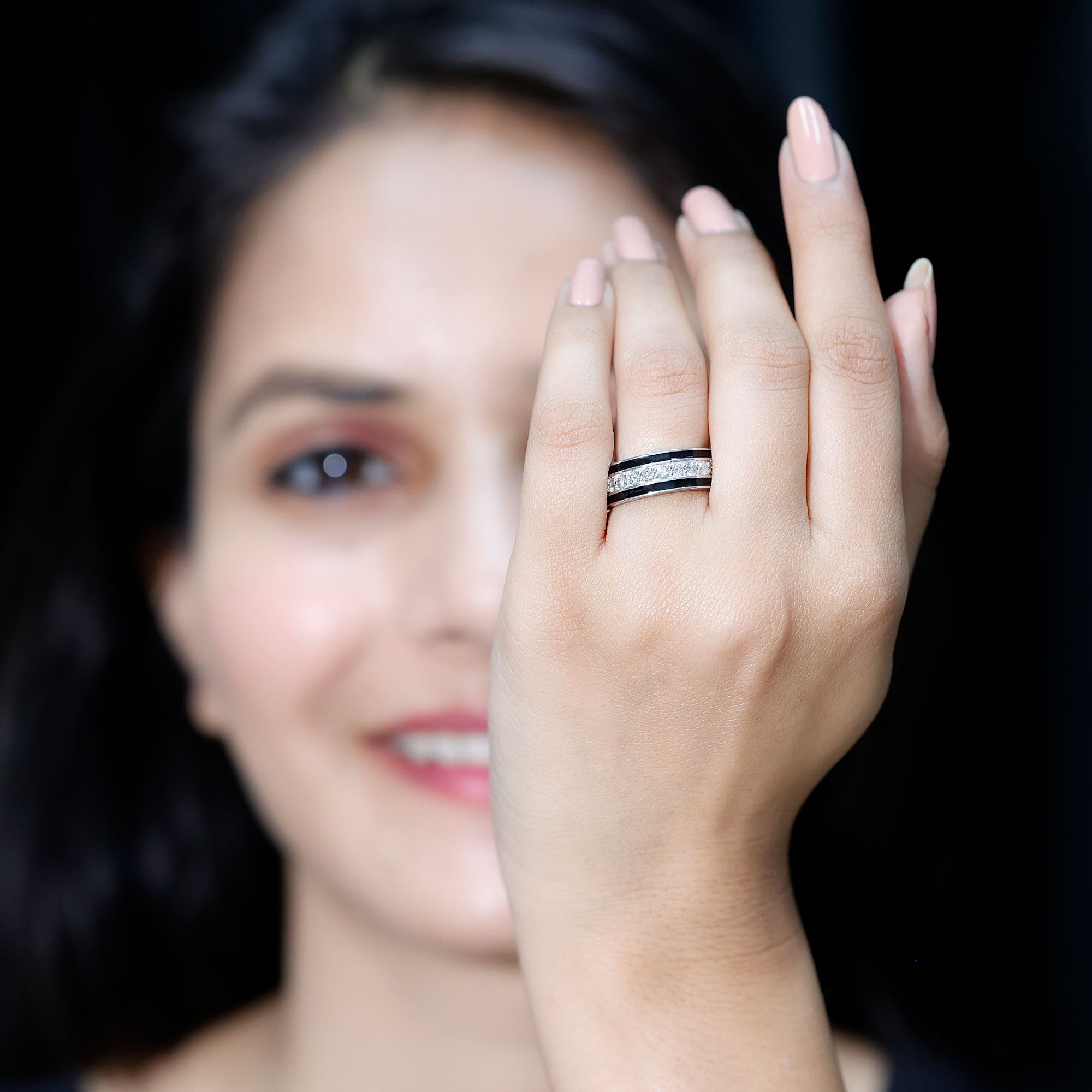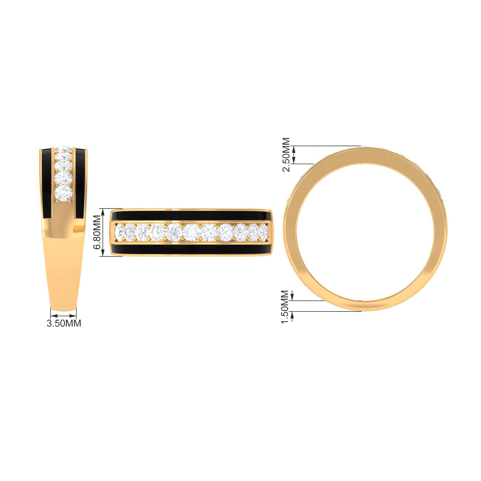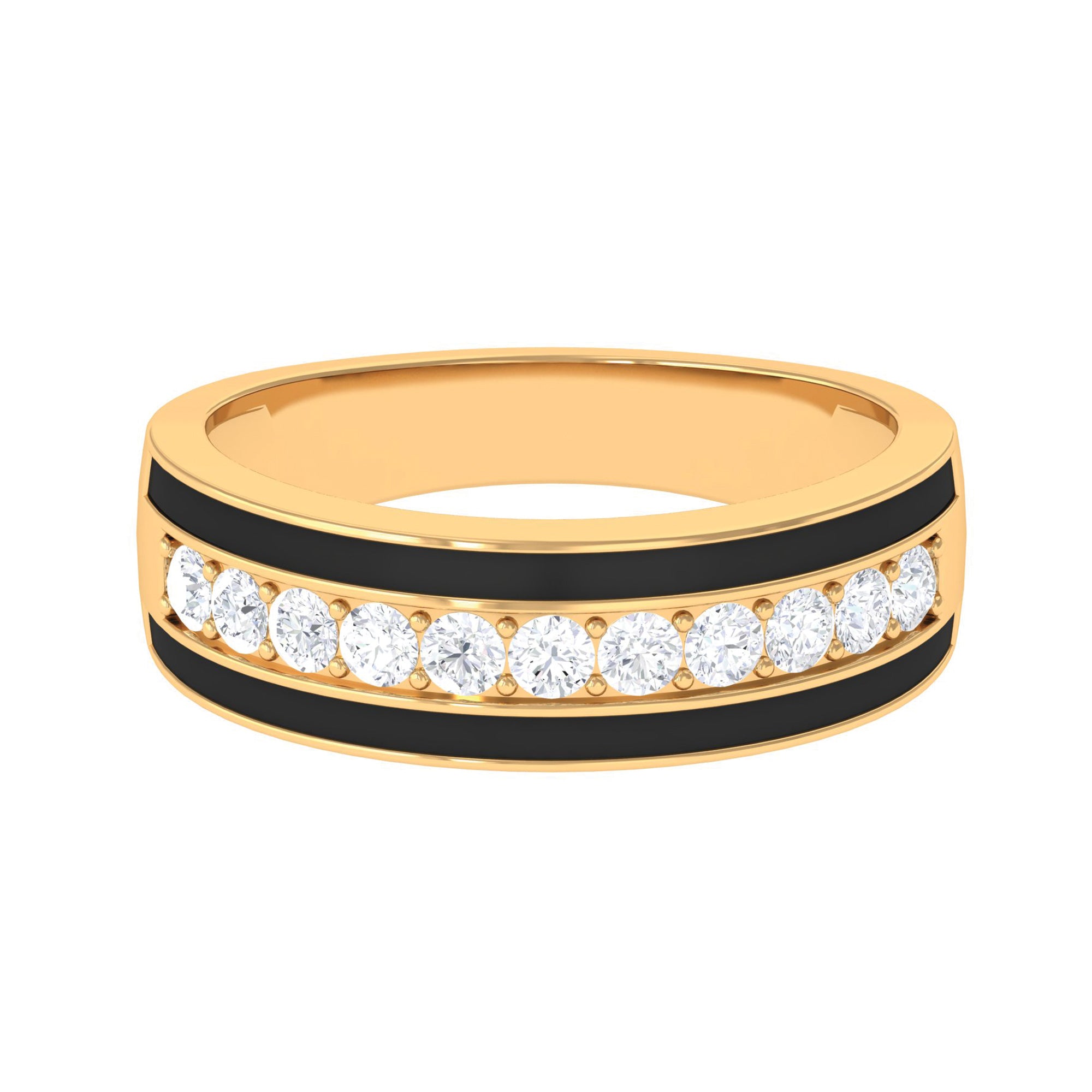 Celebrate lifes special moments with our Diamond Wide Band. This half eternity band is adorned with Diamond and black enamel, creating a classic and elegant design. The timeless beauty of this ring makes it an ideal choice for April-born men. Own this classic piece and cherish the memories it will help you create, adding a touch of luxury to every occasion.