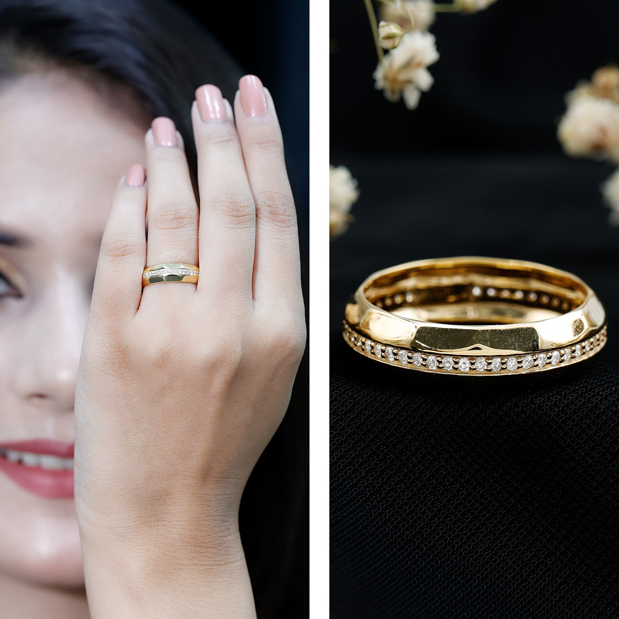 Capture the essence of everlasting love with an eye-catching Diamond Eternity Band Ring. This exquisite ring features a continuous loop of brilliant, Round Diamond that symbolize an unending bond. This timeless piece exudes elegance and sophistication with textured gold on the band. The sparkle of each diamond is accentuated by the carefully crafted Prong Setting, ensuring maximum brilliance from every angle with this Wedding Band Ring. Whether worn alone or paired with an engagement ring, this Eternity Wedding Ring radiates timeless beauty and serves as a powerful emblem of enduring commitment. Celebrate your love story with a symbol as eternal as your devotion with this April Birthstone Ring.