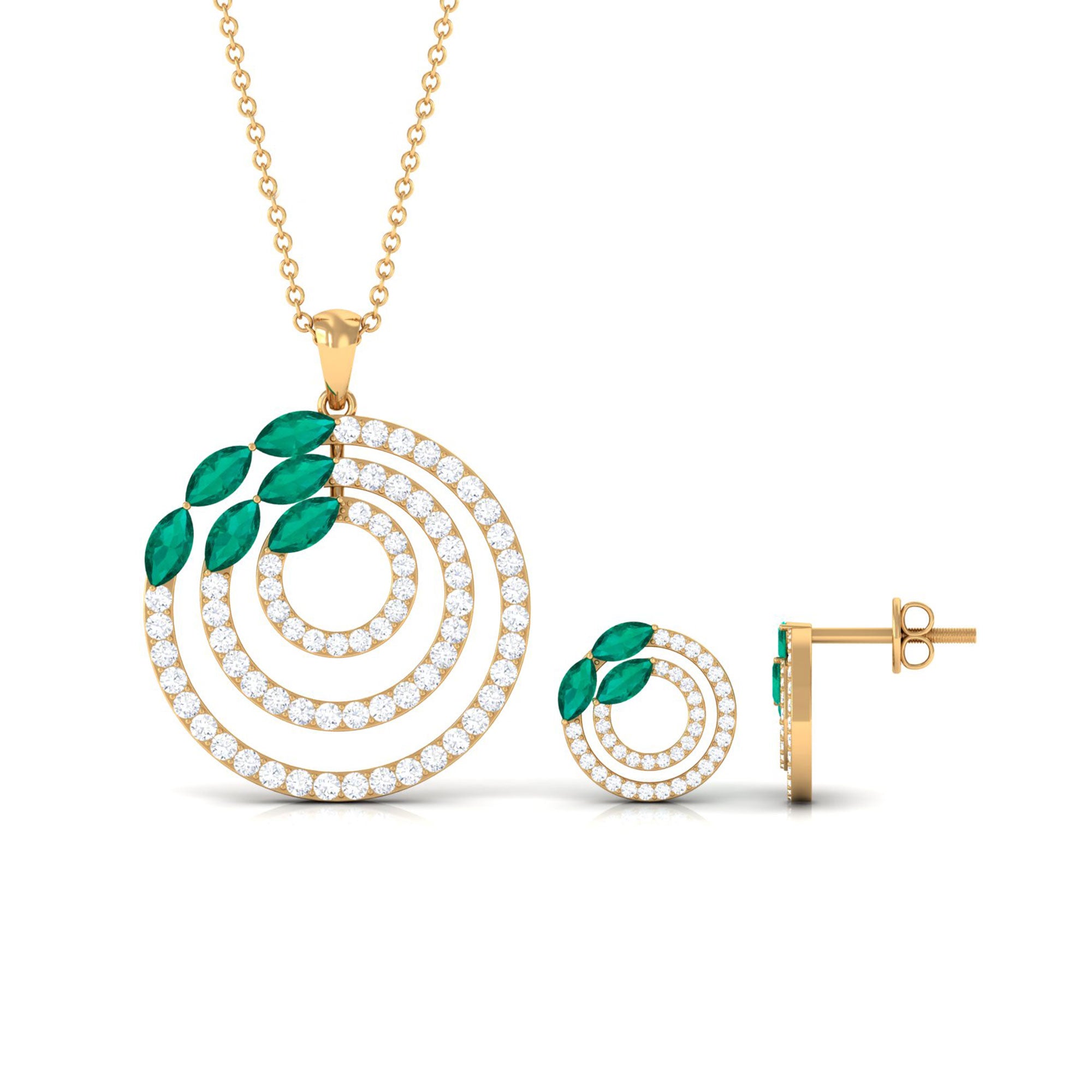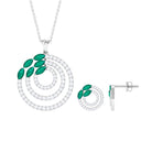 Natural Emerald and Moissanite Cocktail jewelry Set in Gold