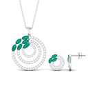 Add the perfect finishing touch to your cocktail party attire with our Emerald Pendant and Earrings Set. This elegant pendant set features a dazzling Marquise-Cut Emerald with Round Cut Moissanite Accents set in a stunning Cocktail Pendant and Earrings, expertly crafted from Solid Gold. The captivating green hue of the Emerald is complemented by the sparkling moissanite stones, creating a truly exquisite piece of jewelry.