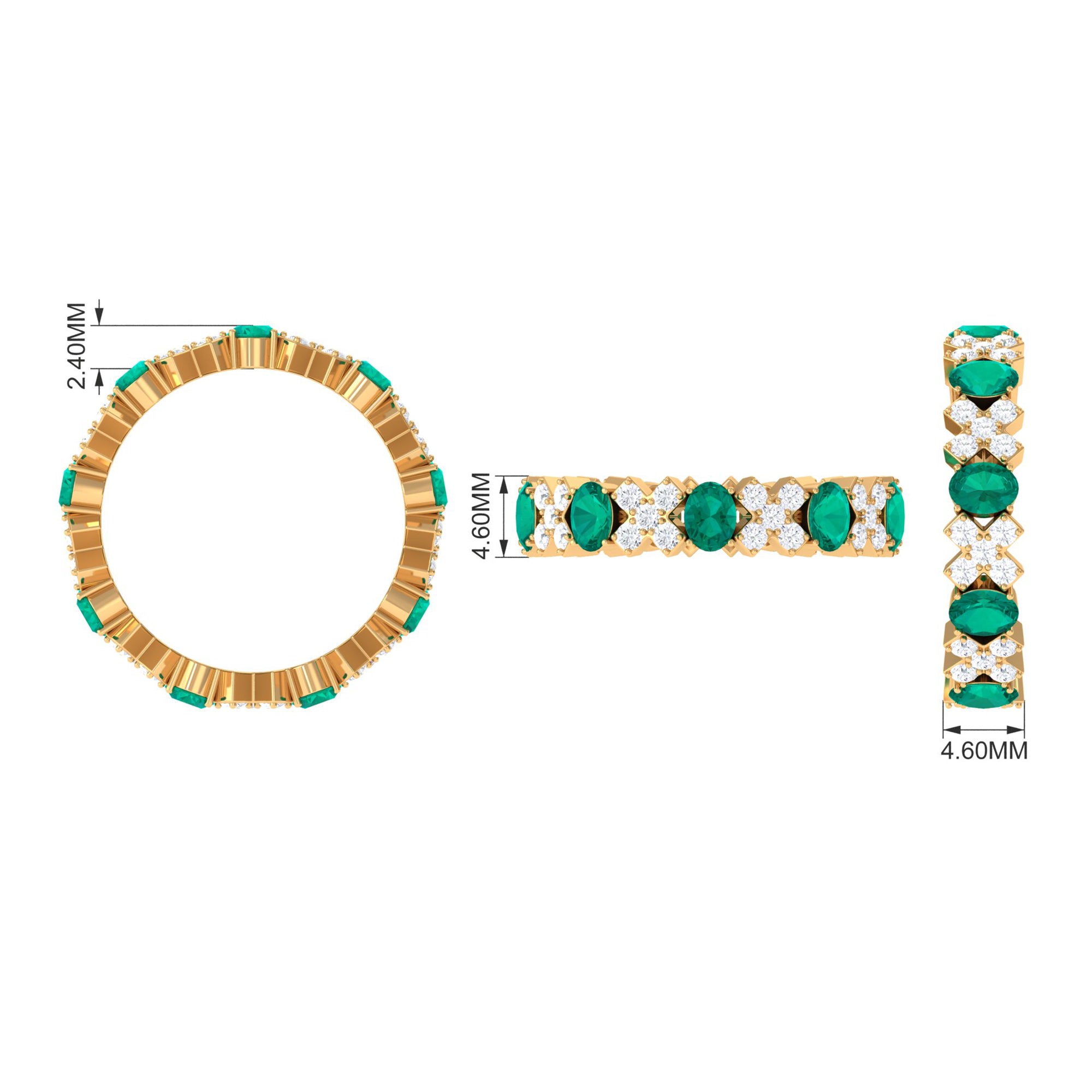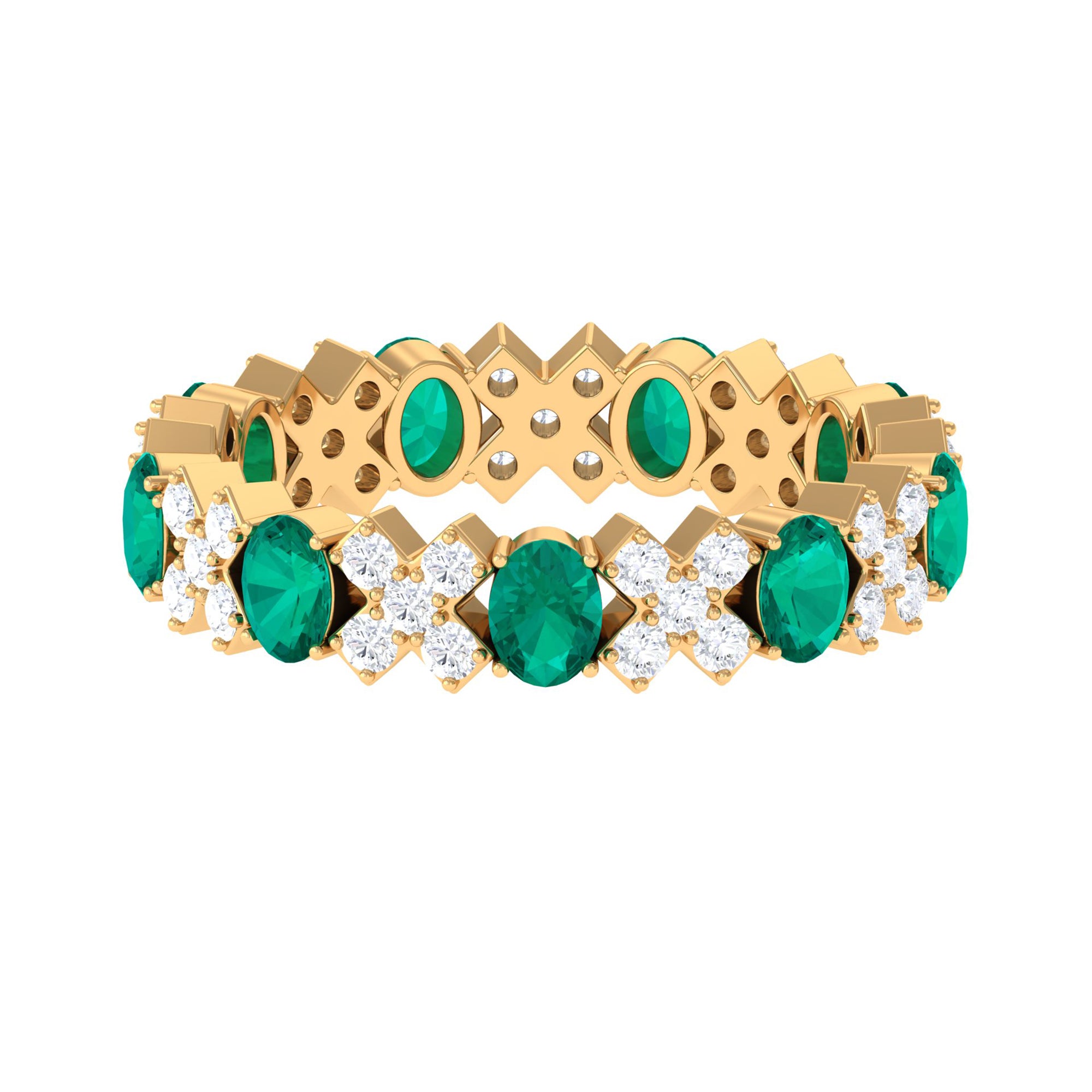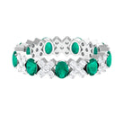 Make a statement with this Designer Eternity Band, featuring oval Emeralds set in prong setting along with round shape moissanites set in a cross style in an alternating pattern. White Moissanite adds more sparkle and value to this Emerald Eternity Band Ring. Crafted with meticulous attention to detail, this Full Eternity Band showcases a graceful XO design composed of glimmering round moissanite stones, symbolizing an everlasting bond and unbreakable unity. Whether worn independently as a wedding band, stacked for a layered appearance, or combined with an engagement ring, this Wedding Eternity Band radiates brilliance with every movement. Each stone is expertly prong set for security and optimal sparkle, ensuring it endures the test of time, just like your love. A thoughtful gift for anniversaries, vow renewals, or a stylish everyday accessory, this Eternity Anniversary Band Ring transcends mere jewelry; it embodies a lasting promise enveloped in brilliance. To enhance your special occasion, this Emerald Band is presented in a premium storage box, guaranteeing a luxurious display for your gift
