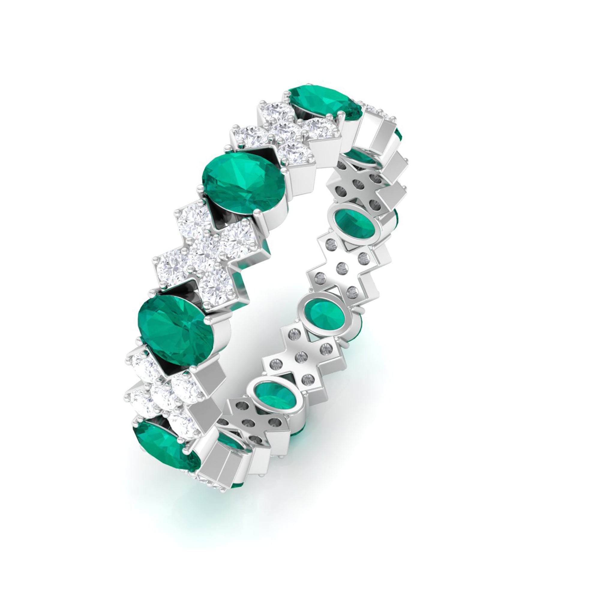 Natural Emerald and Moissanite Designer Eternity Band