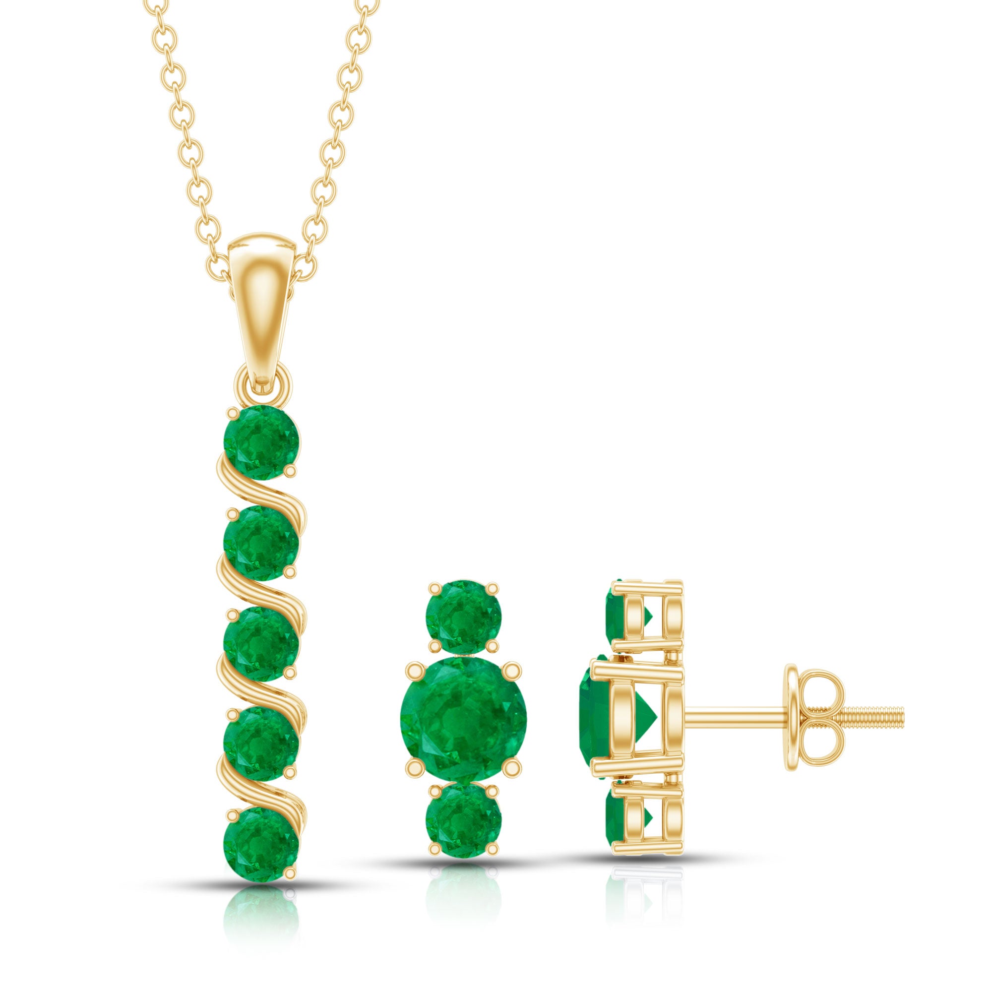 Dazzle around in this Bar Jewelry Set studded with Round Shape Emerald a perfect gift for ladies born in the month of may as this Pendant Earring Set is embellished with May Birthstone.