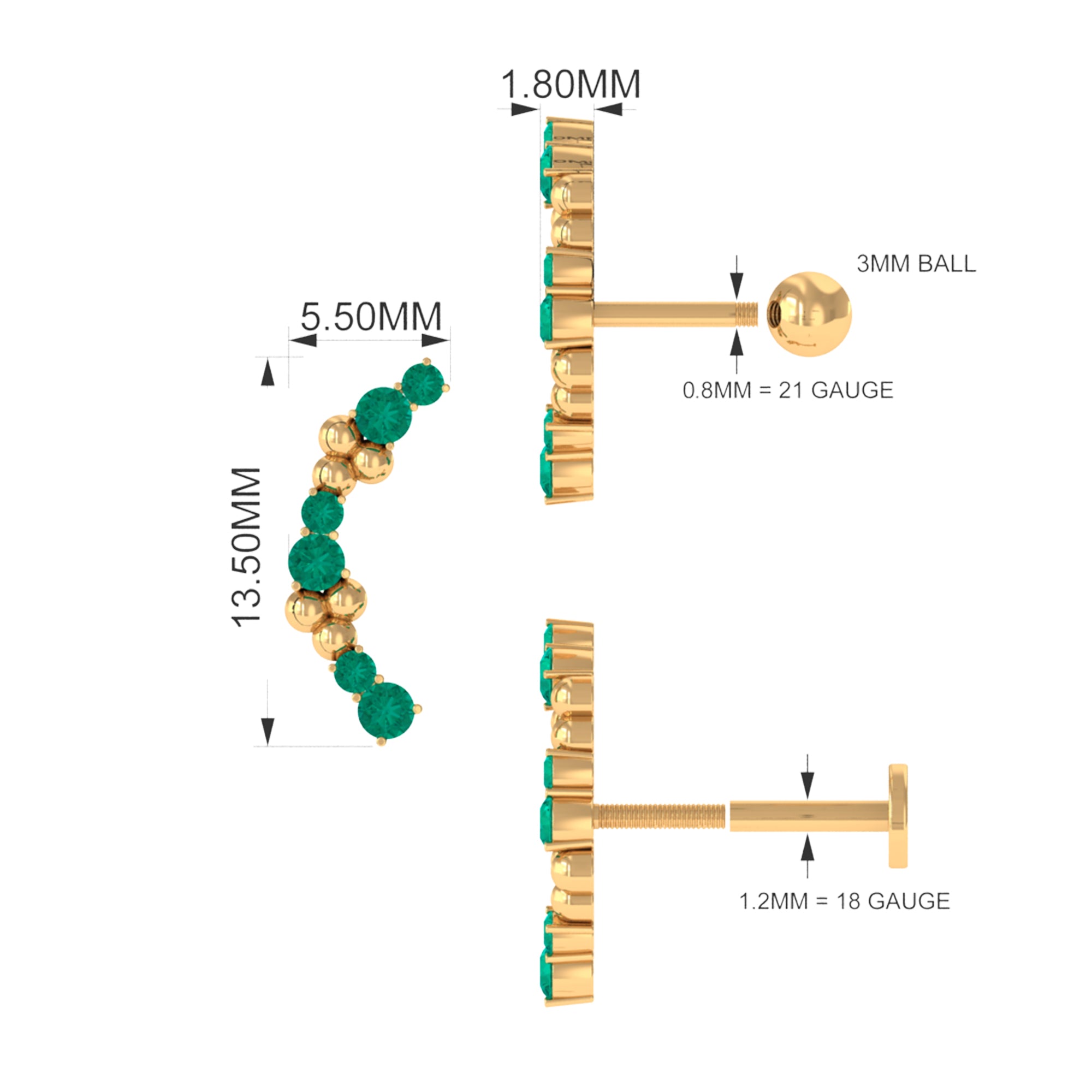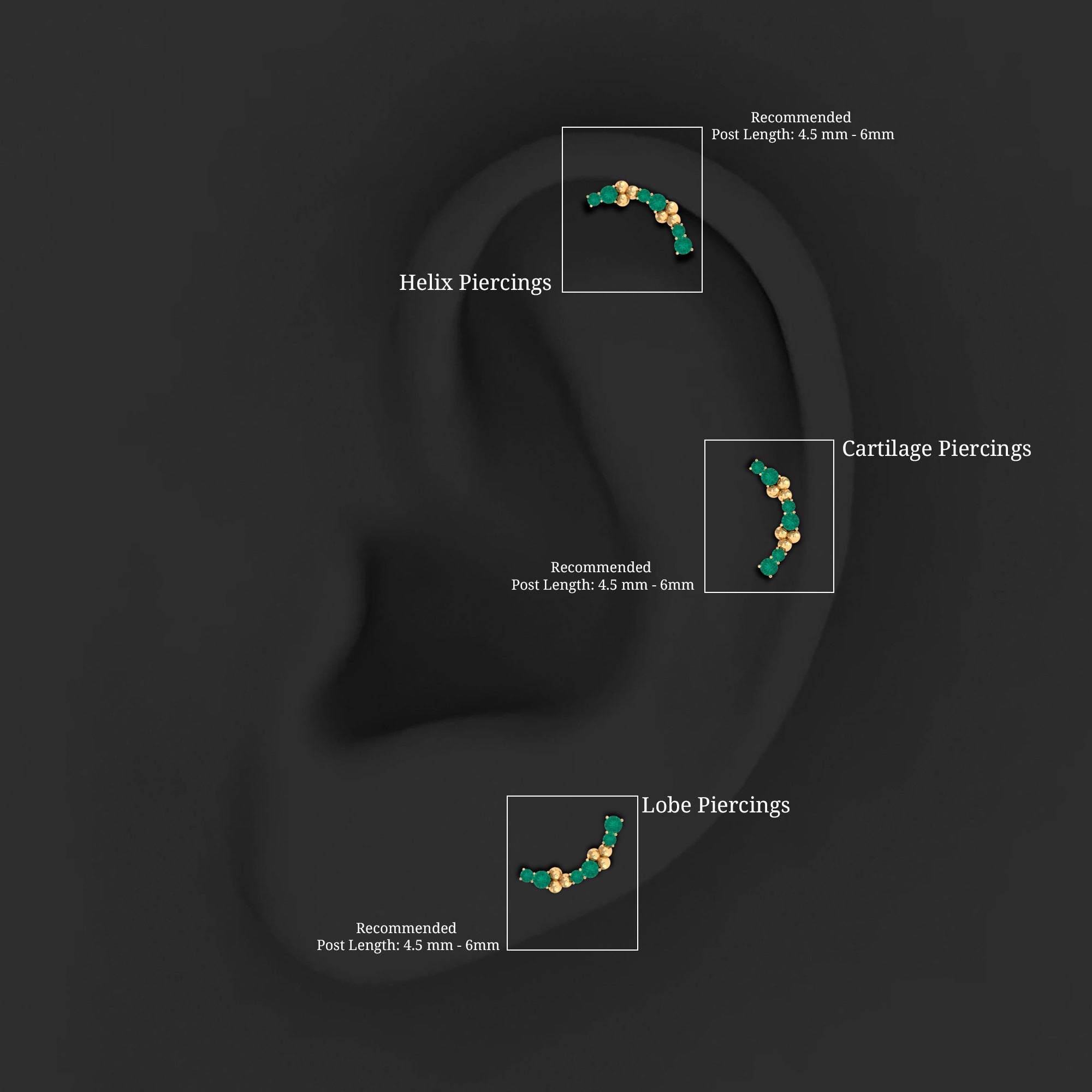 Natural Emerald Crawler Cartilage Earring with Beaded Details