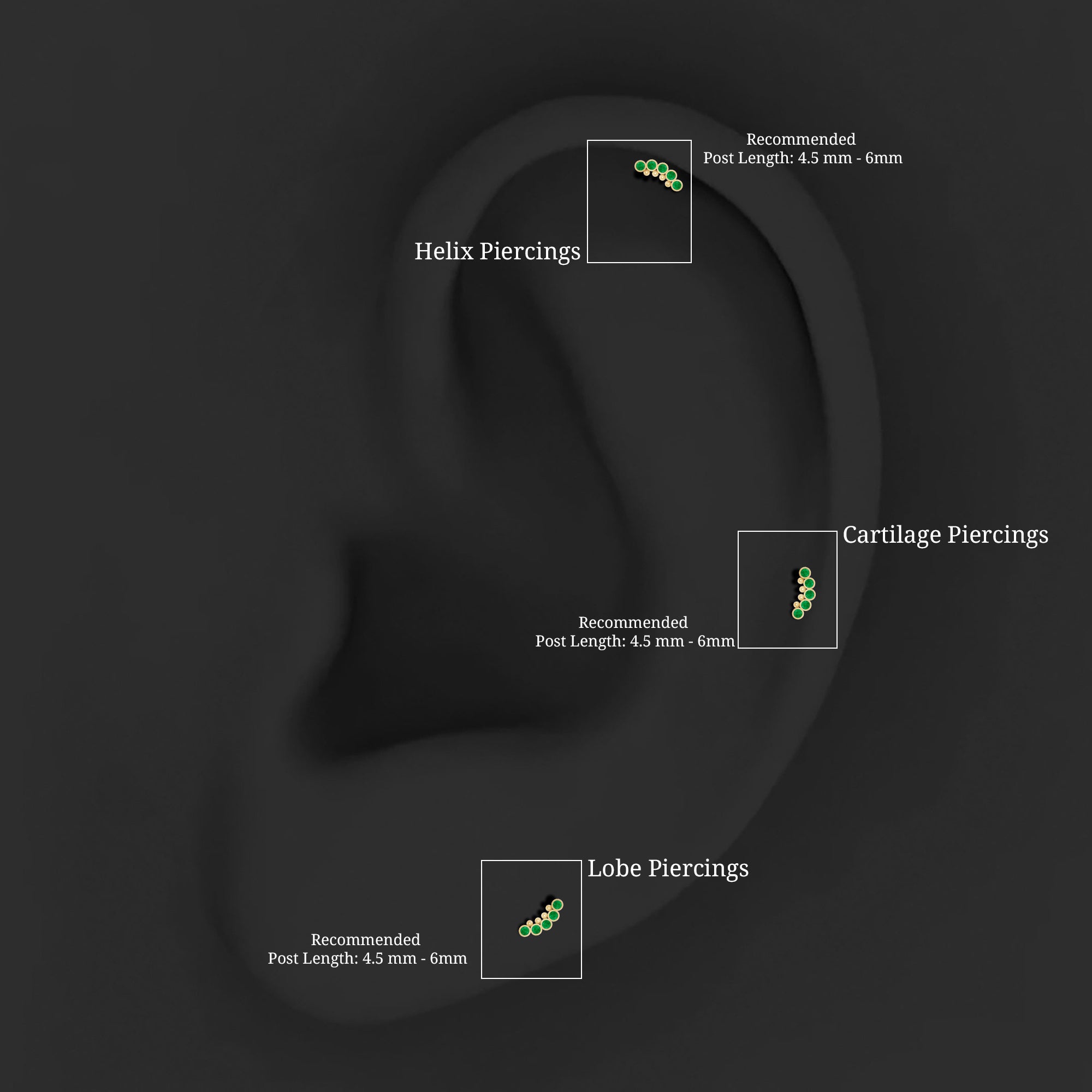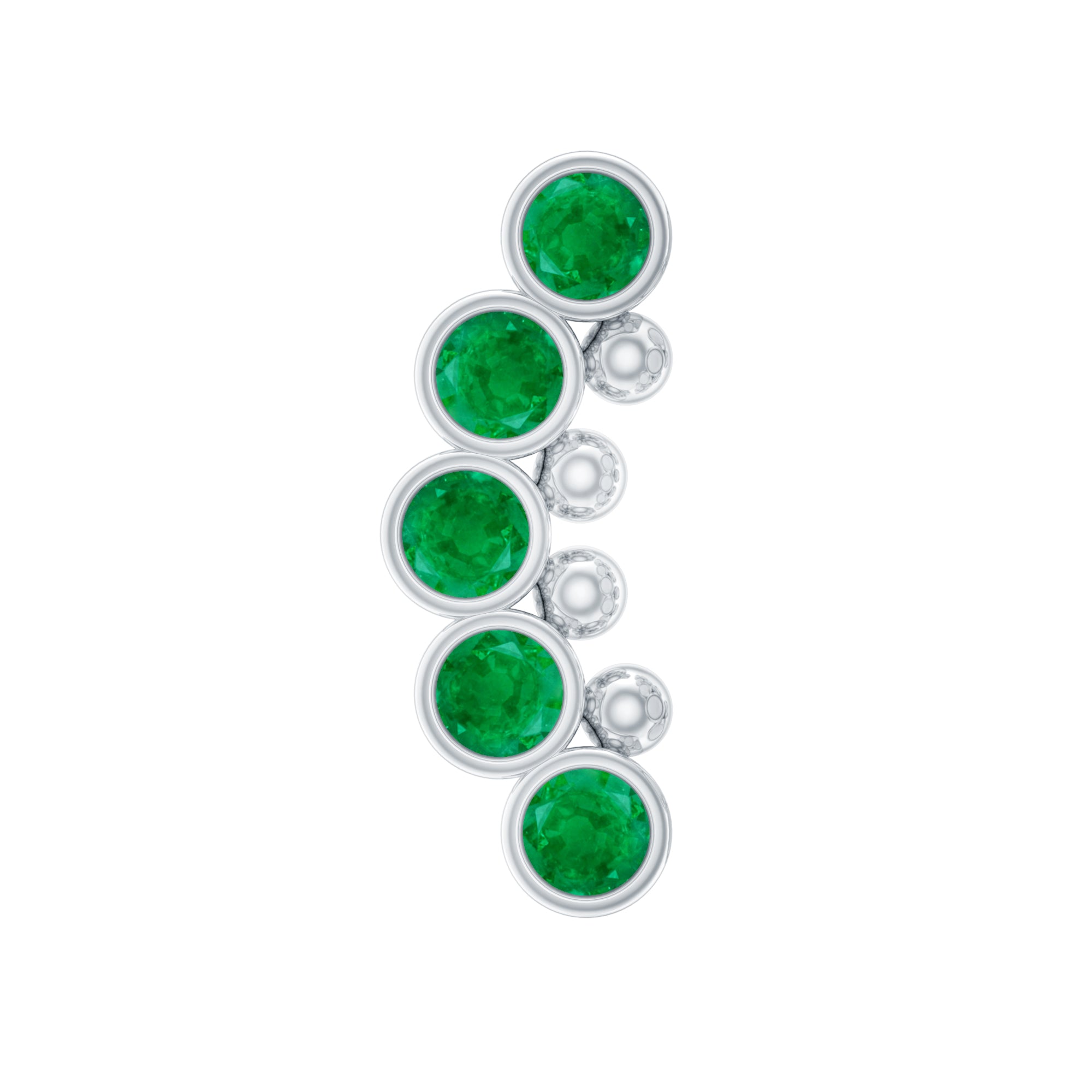 This curved climber earring features natural emerald gemstones arranged along a gently contoured design created specifically for helix piercings. The curved structure follows the natural line of the ear, creating a refined and modern jewelry style.