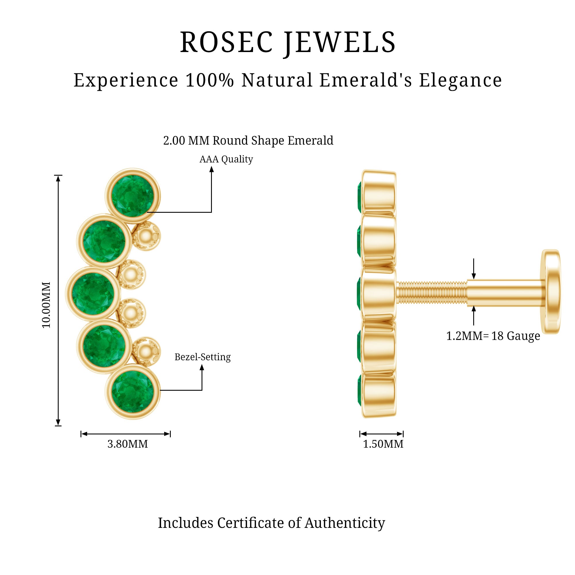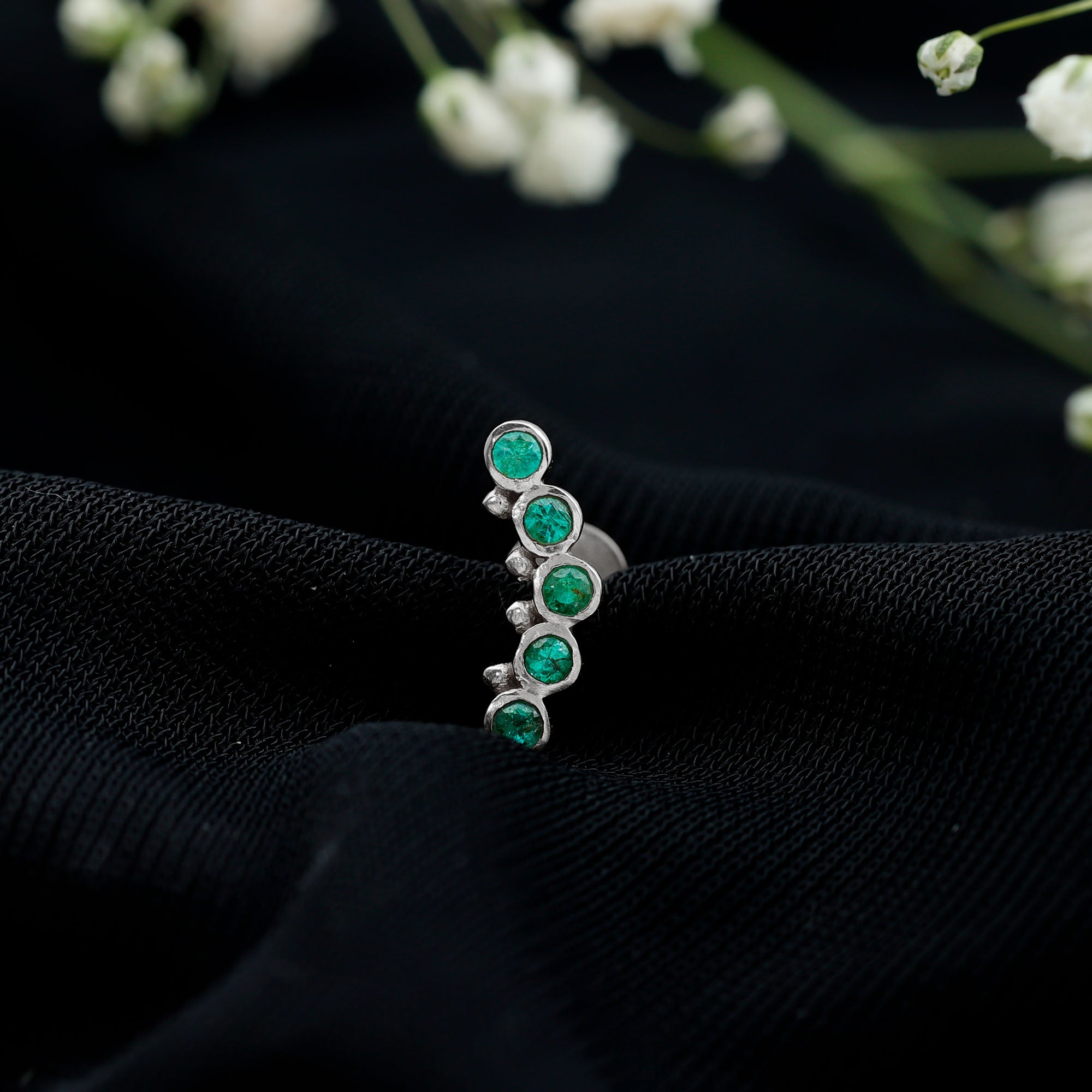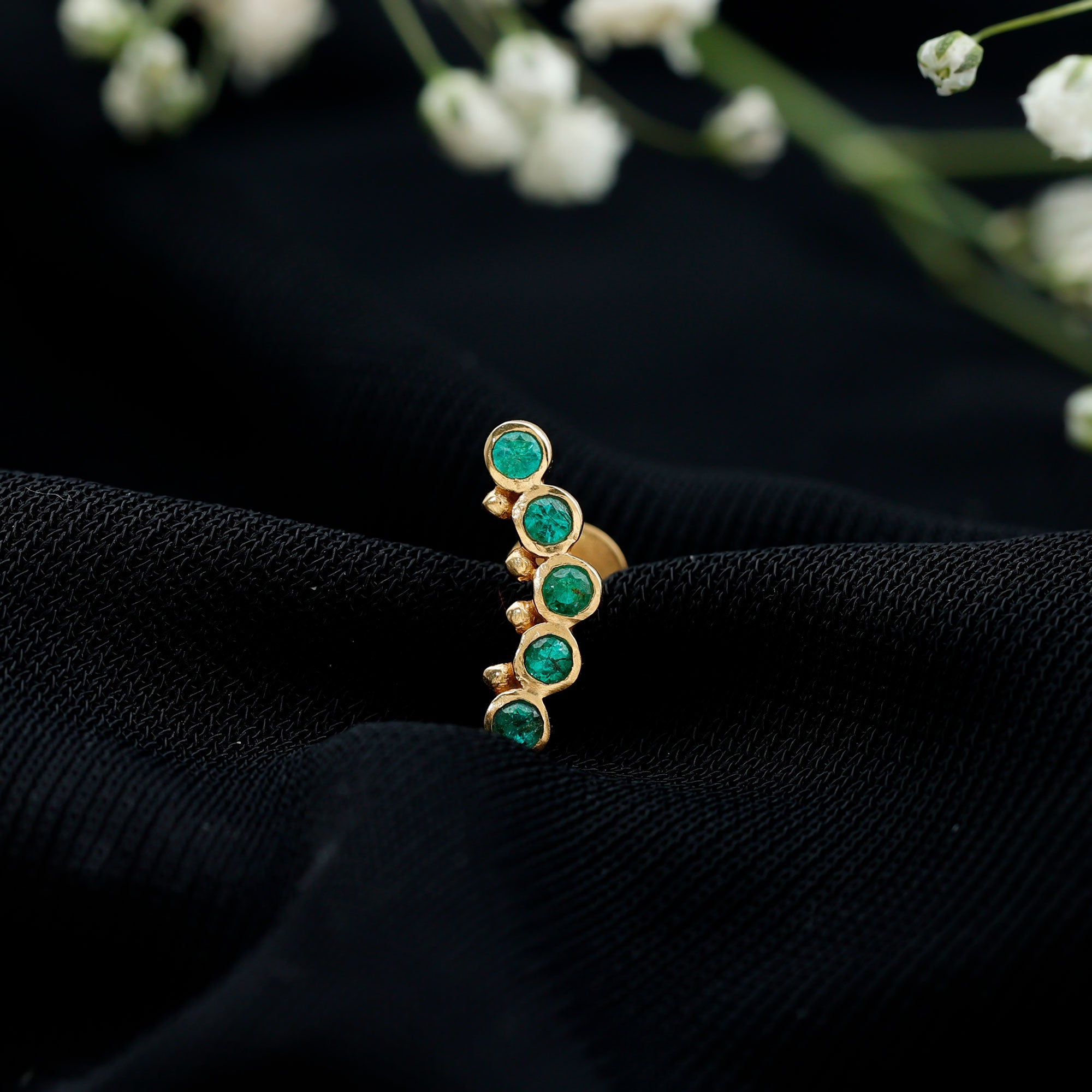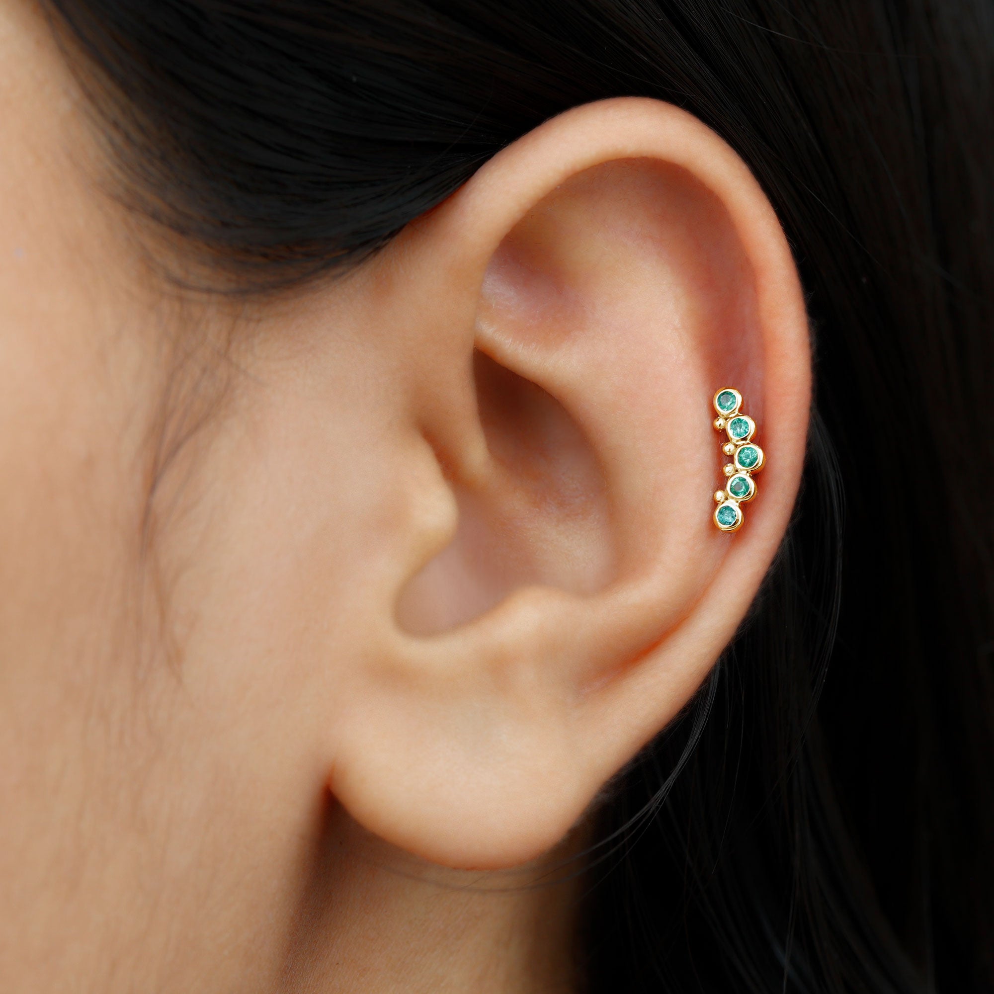 Natural Emerald Curved Climber Earring for Helix Piercing
