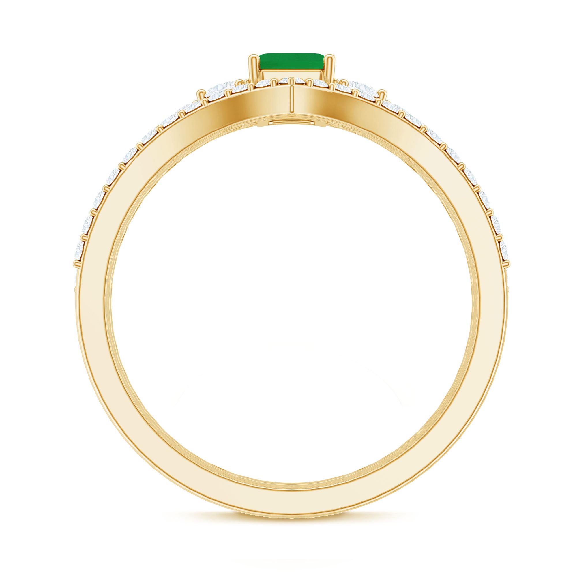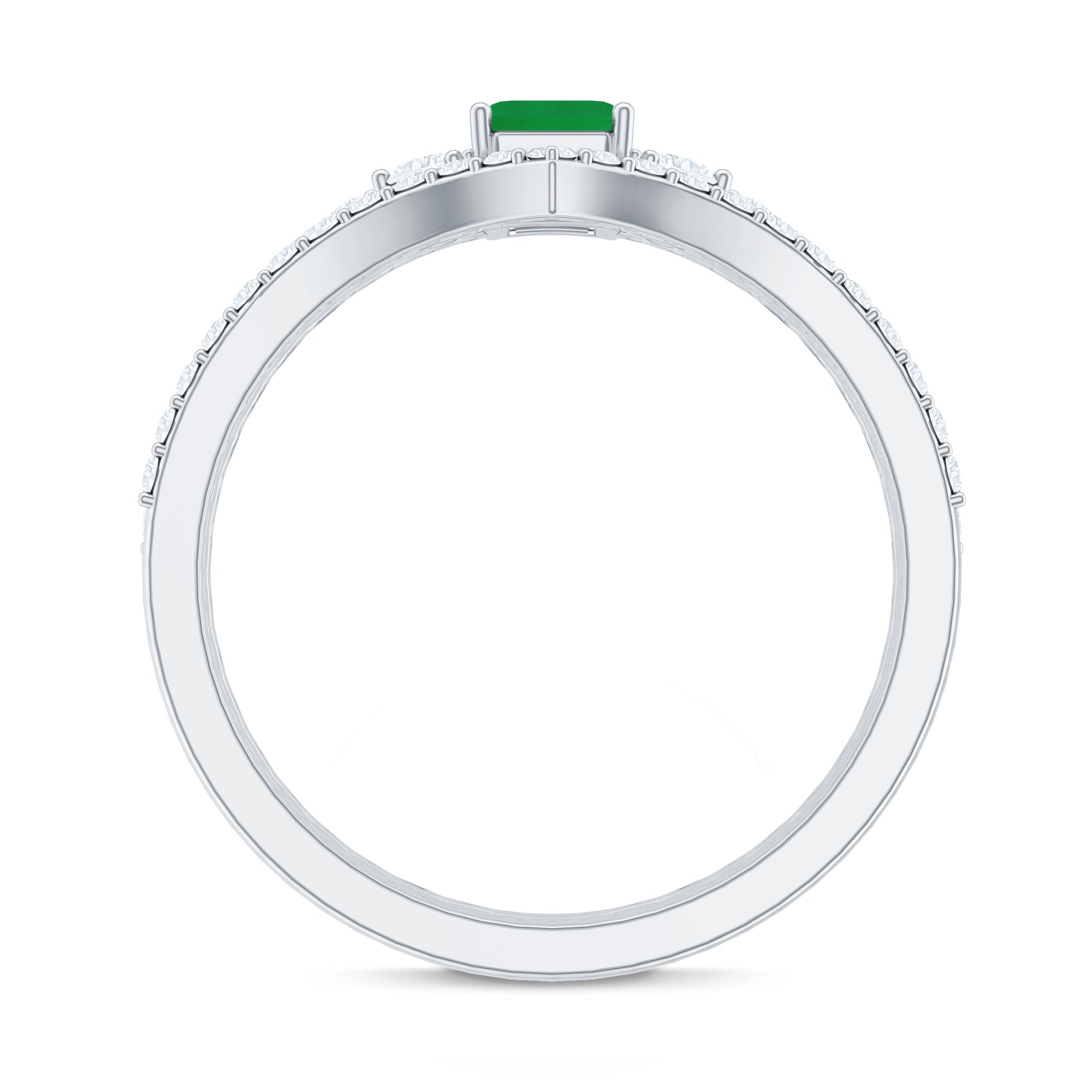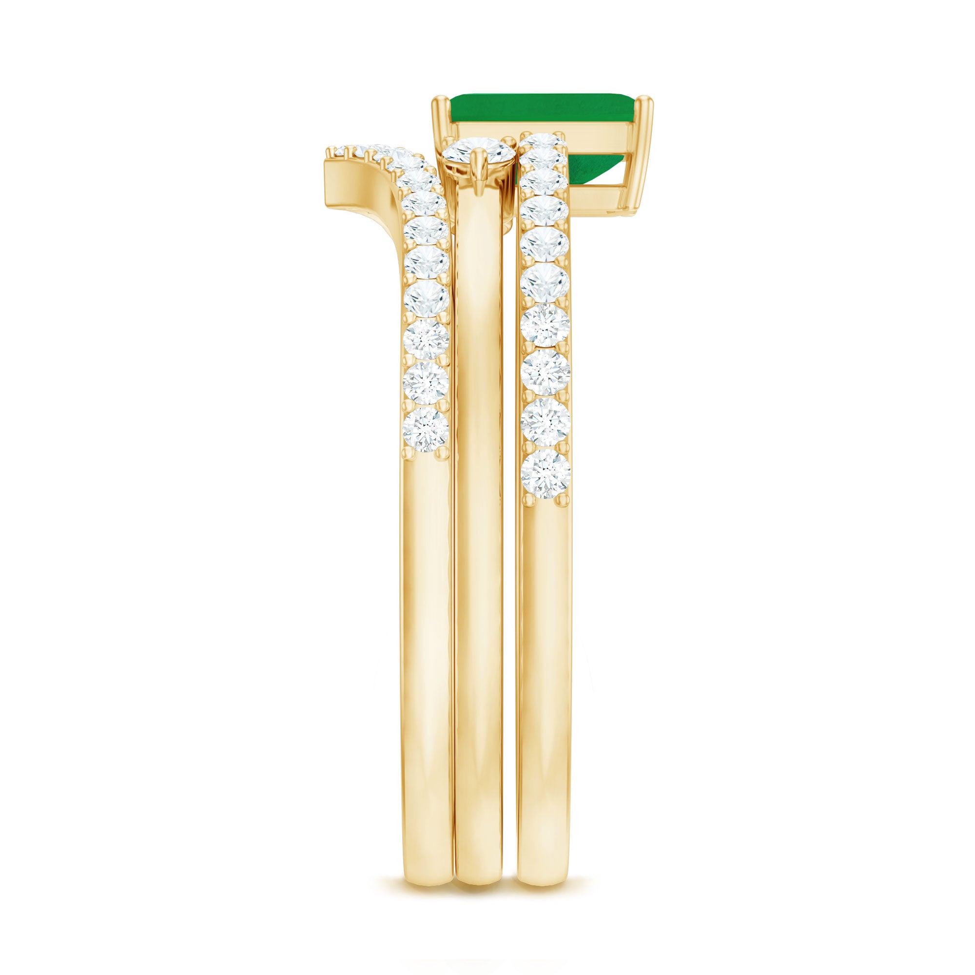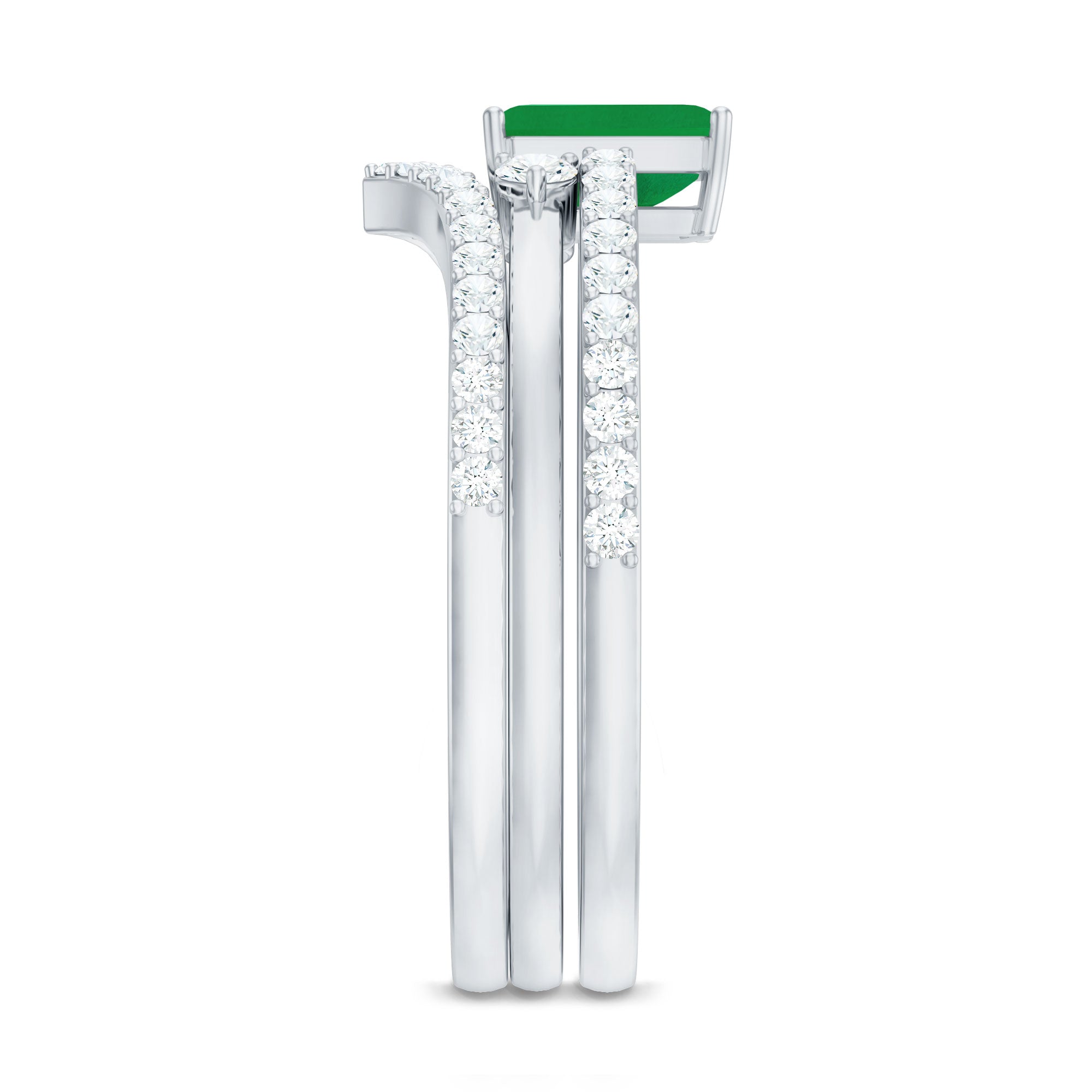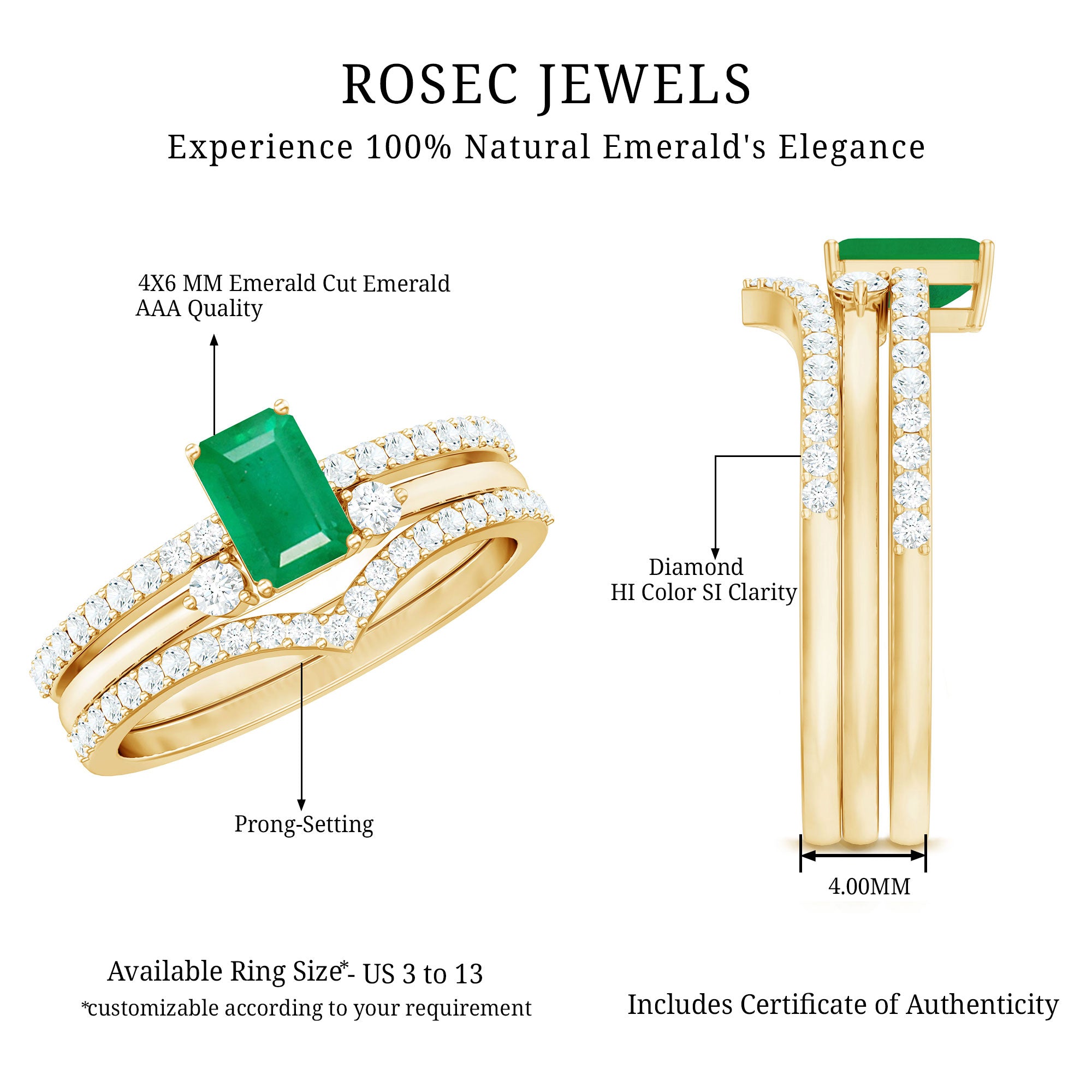 Natural Emerald Cut Emerald Diamond 3 Piece Bridal Ring Set