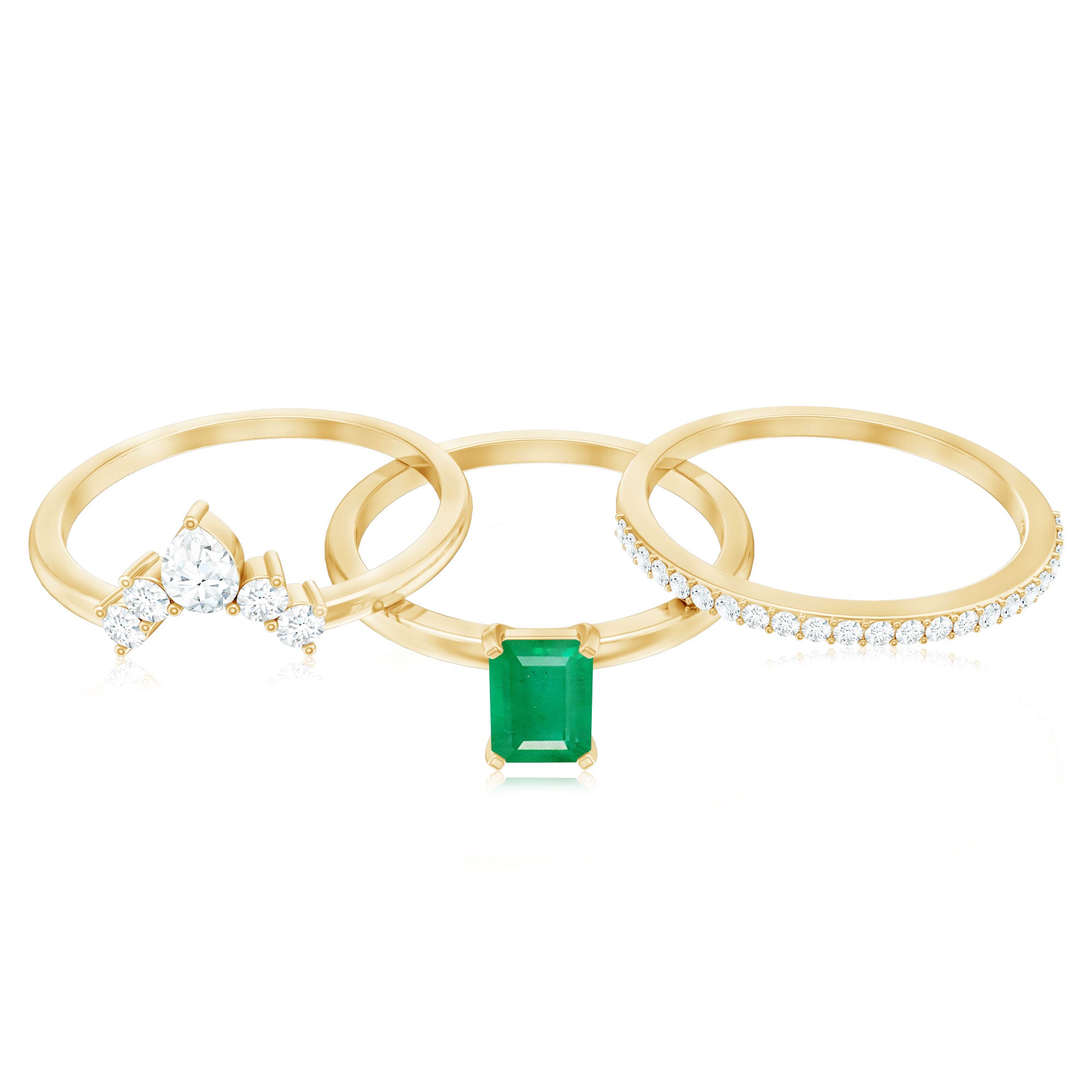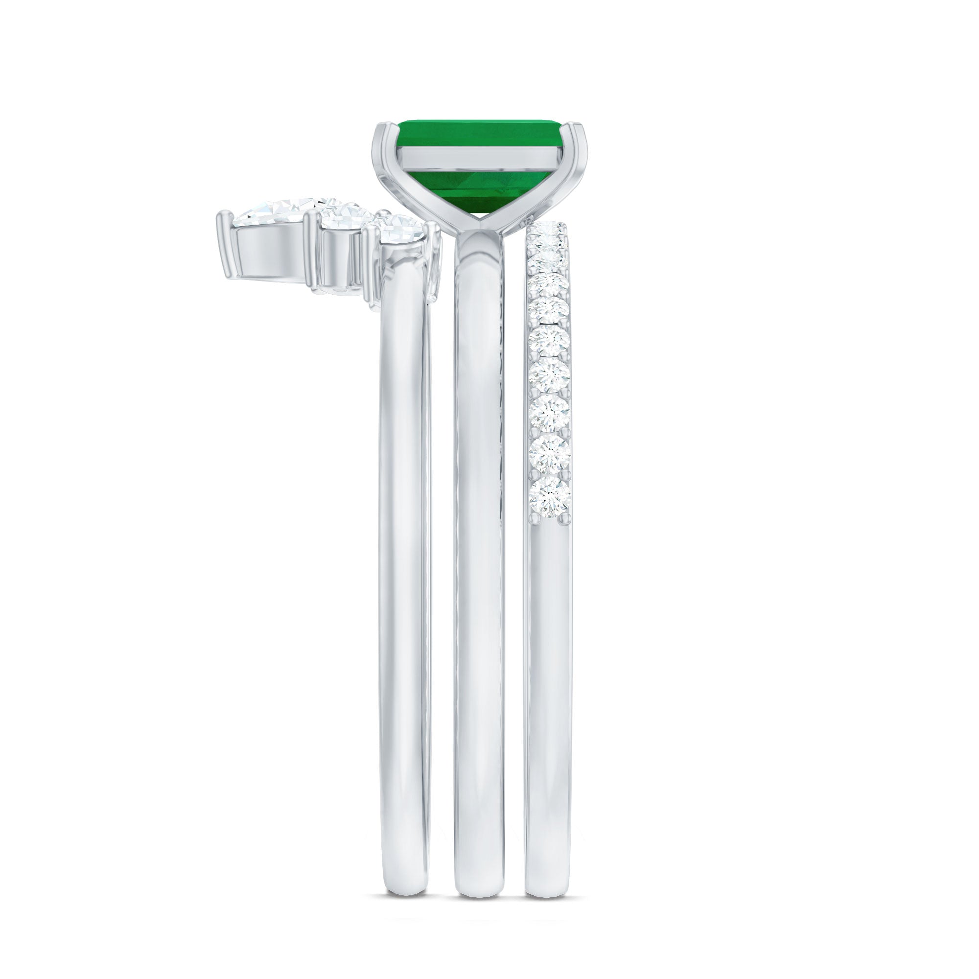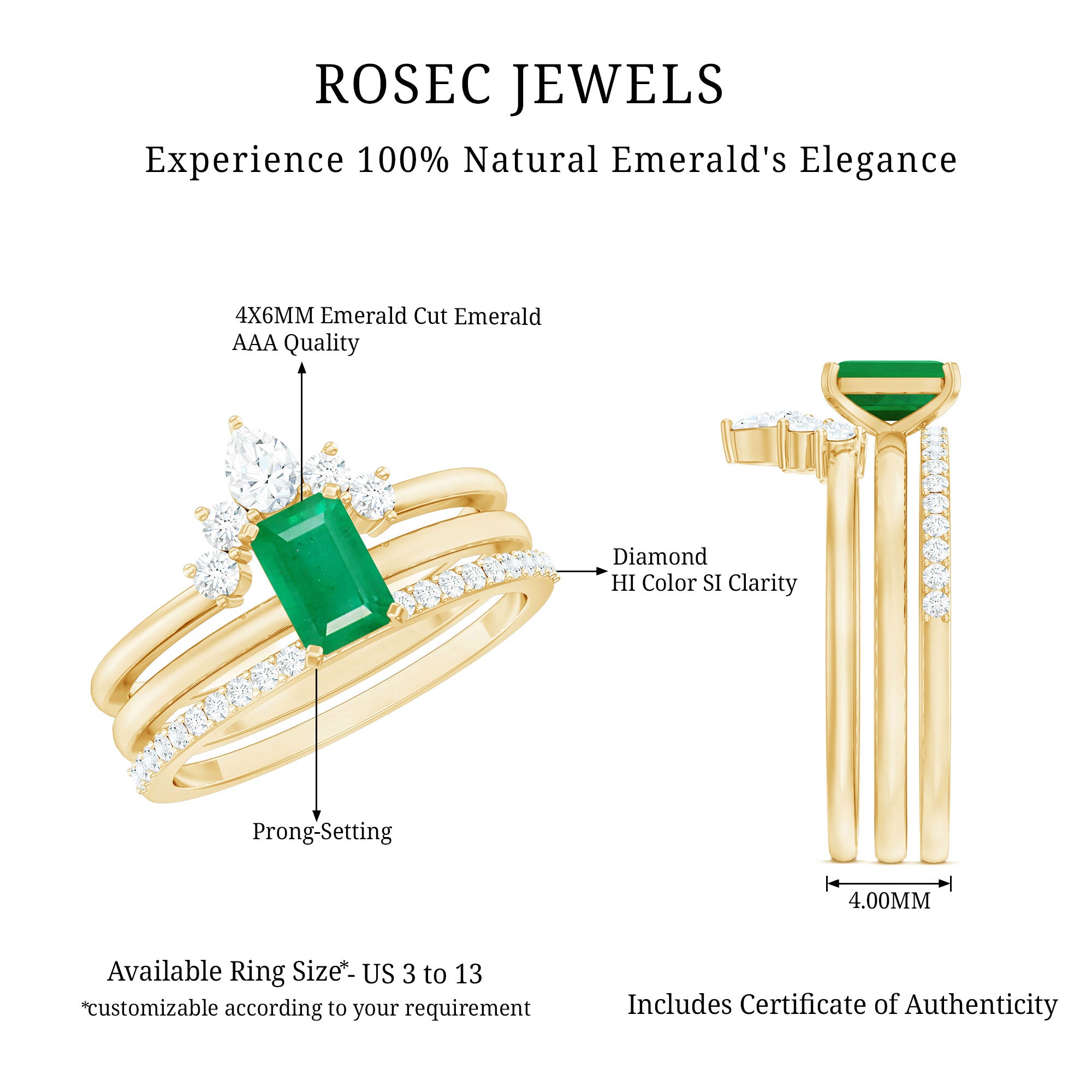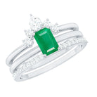Natural Emerald Cut Emerald Diamond Bridal Ring Set of 3