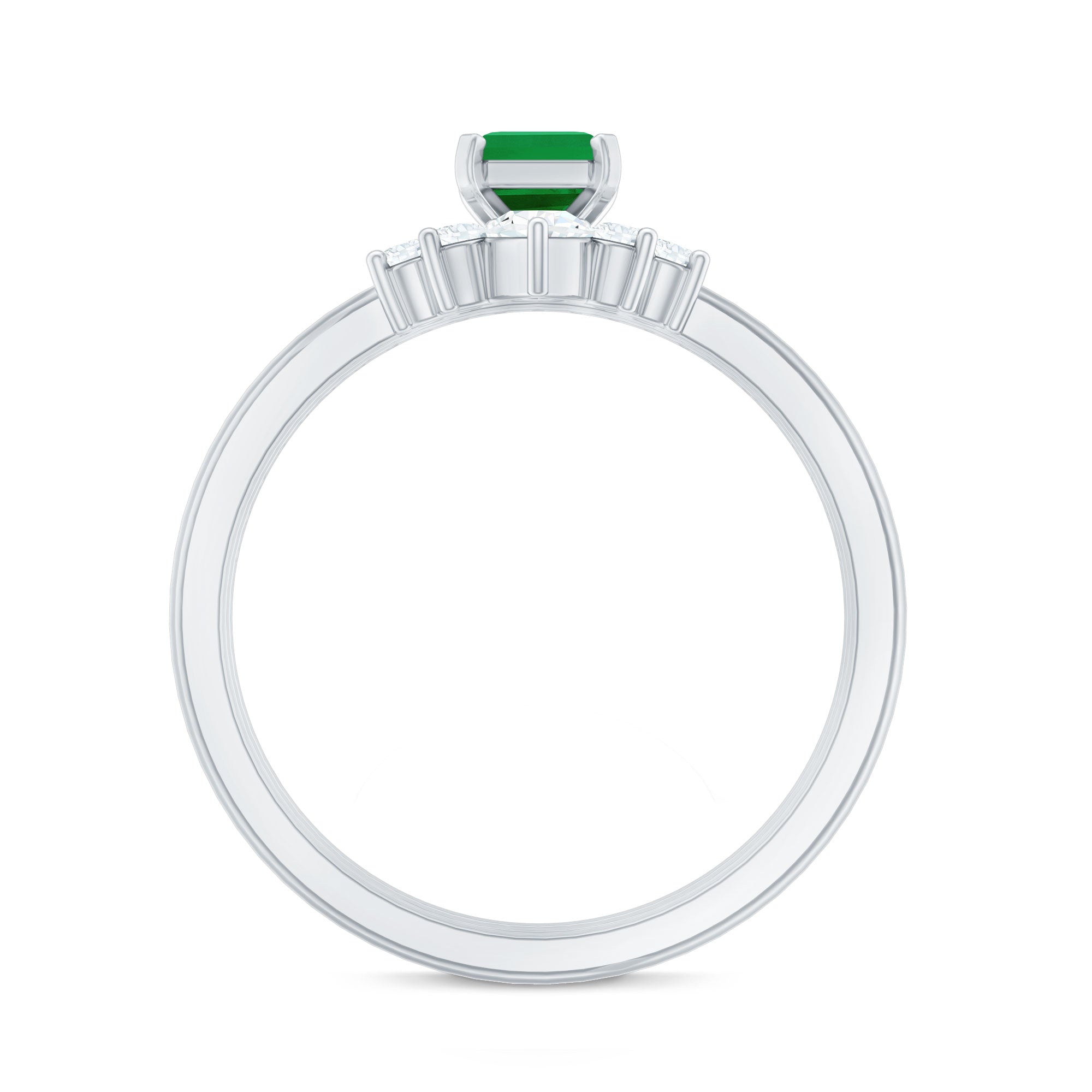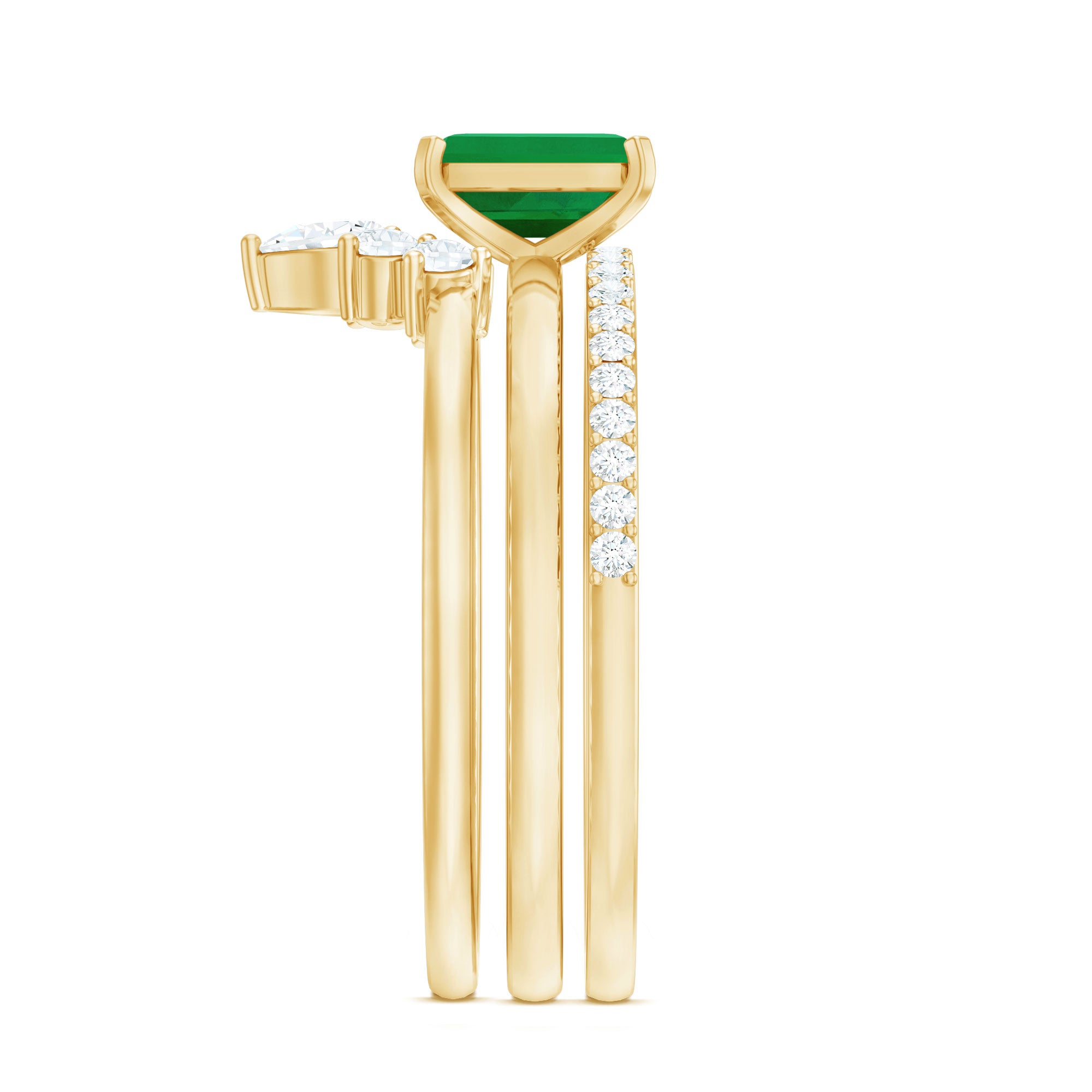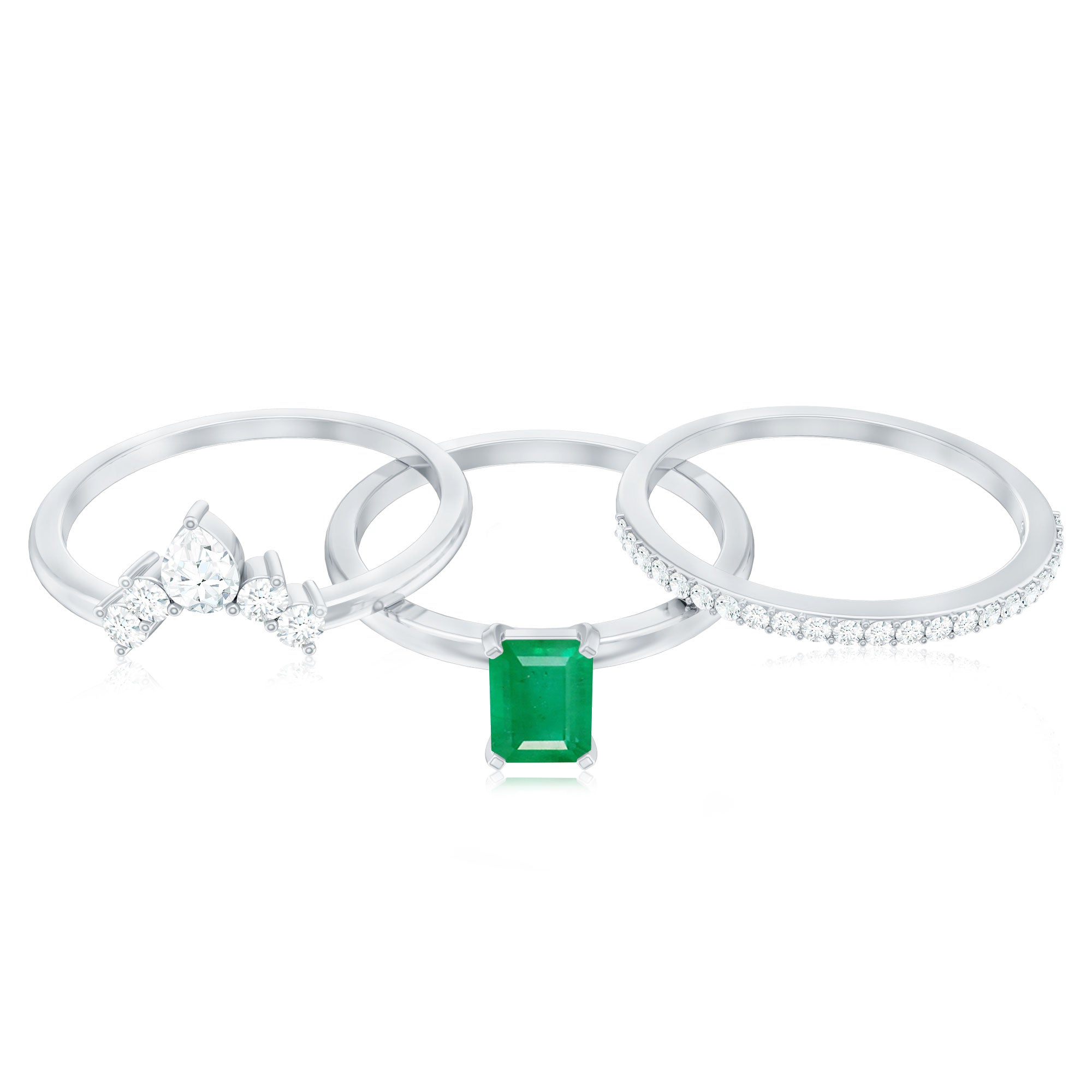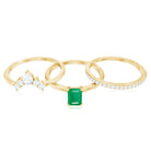 Natural Emerald Cut Emerald Diamond Bridal Ring Set of 3