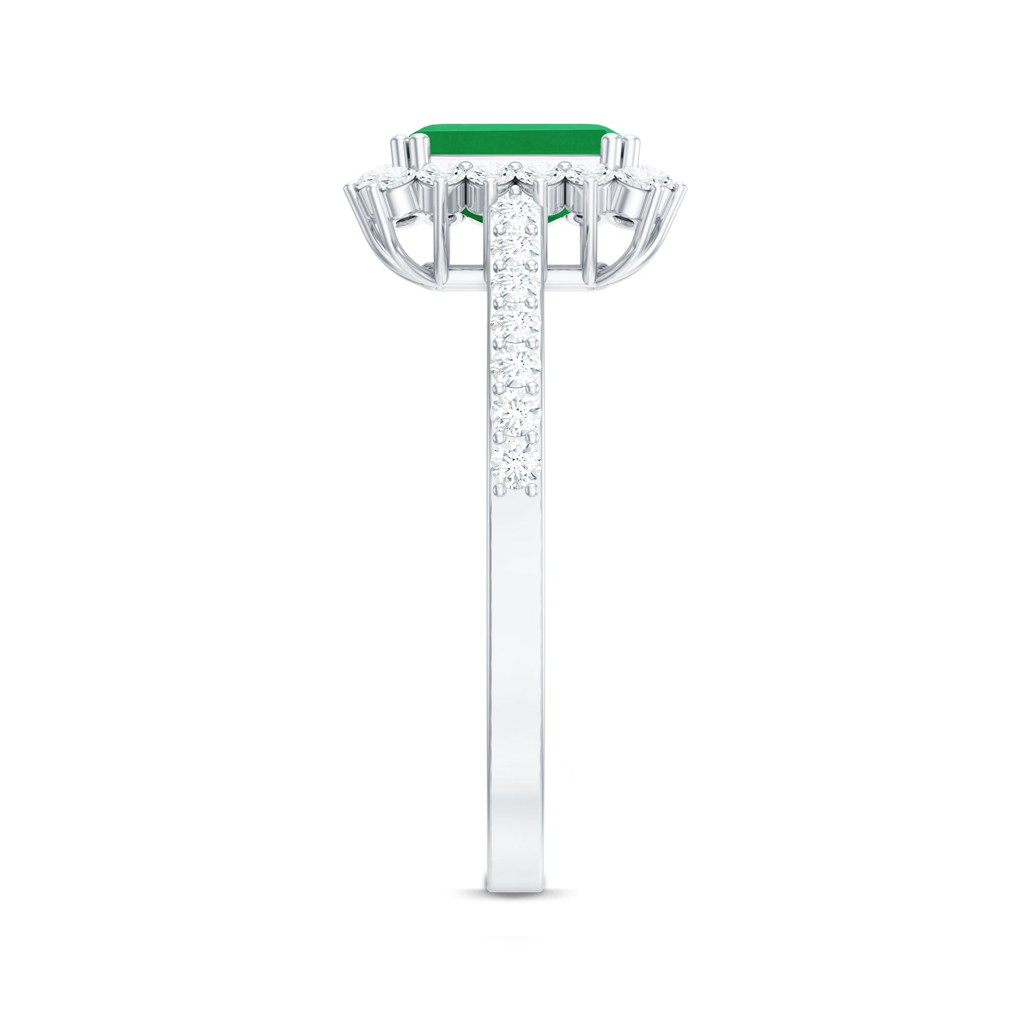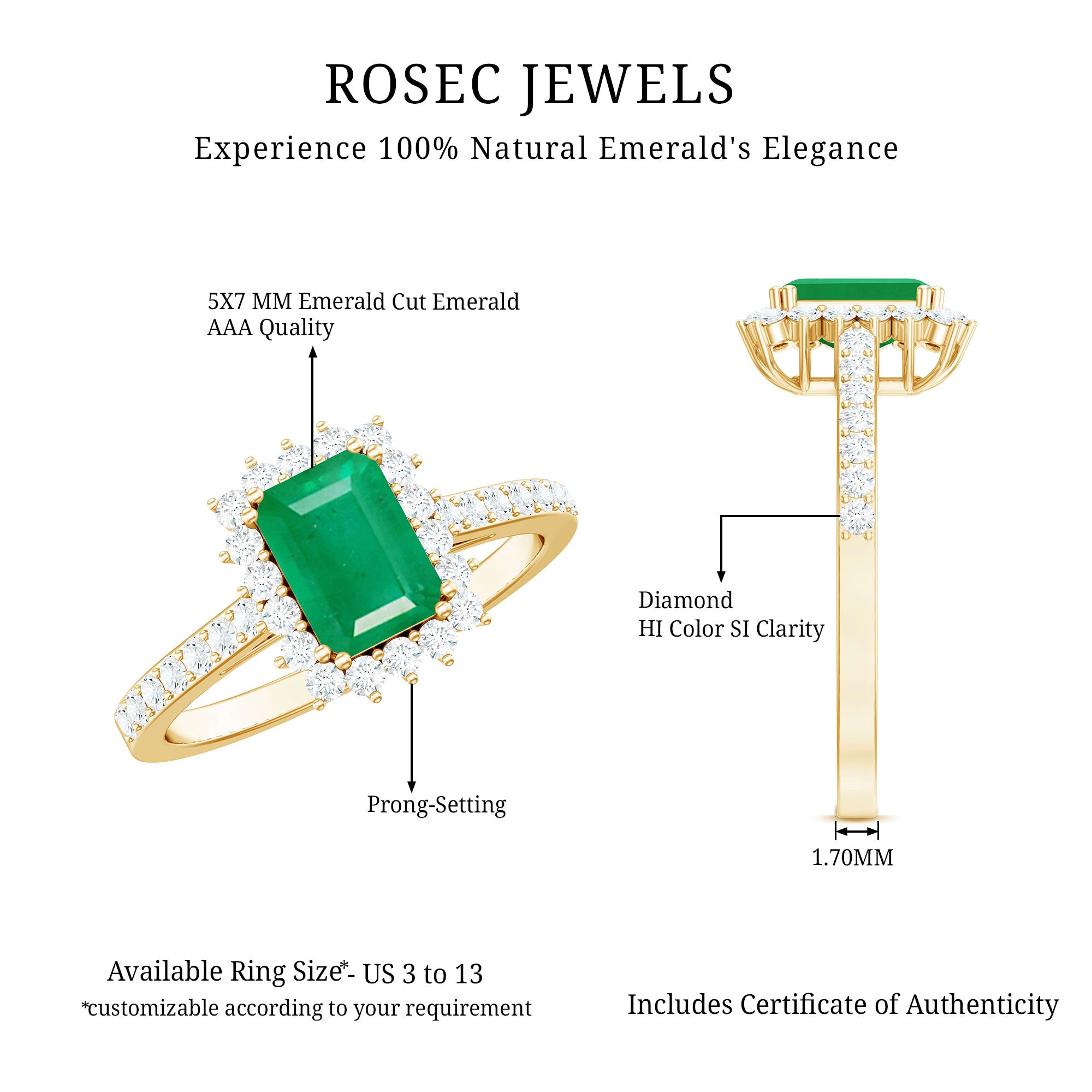Natural Emerald Cut Emerald Engagement Ring with Diamond Halo