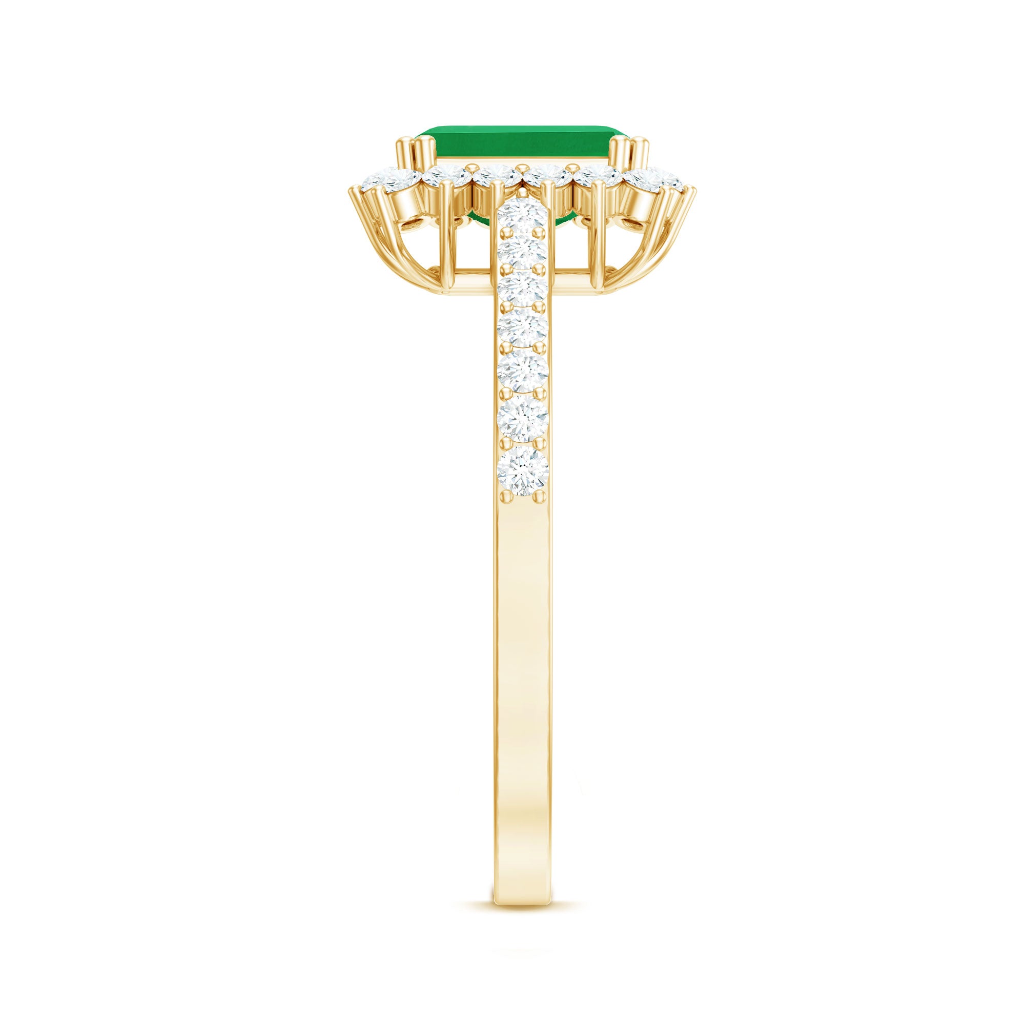 Radiating elegance and timeless romance, this Vintage Looking Engagement Ring is a breathtaking symbol of devotion. Its vivid 5X7 mm Emerald Cut Emerald centerpiece set in Double Prong Setting captures the eye, while a sparkling Halo of Diamond stones enhances its brilliance, reflecting light with every movement. Graceful Side Stones add subtle sparkle and sophistication, creating a harmonious design that balances bold beauty with delicate artistry. Every facet tells a story of love that is meant to endure, making this Emerald Cut Engagement Ring a promise, a memory and a celebration of commitment all at once. Thoughtfully designed and available in various ring sizes, this Emerald Cut Emerald Ring for Engagement ensures a perfect fit for the one who holds your heart. Delivered in a beautifully crafted jewelry box, this Emerald Diamond Engagement Ring is ready to mark unforgettable moments. With its captivating glow and meticulously detailed design, this Halo Engagement Ring with Emerald is a lasting treasure, destined to be cherished for a lifetime.