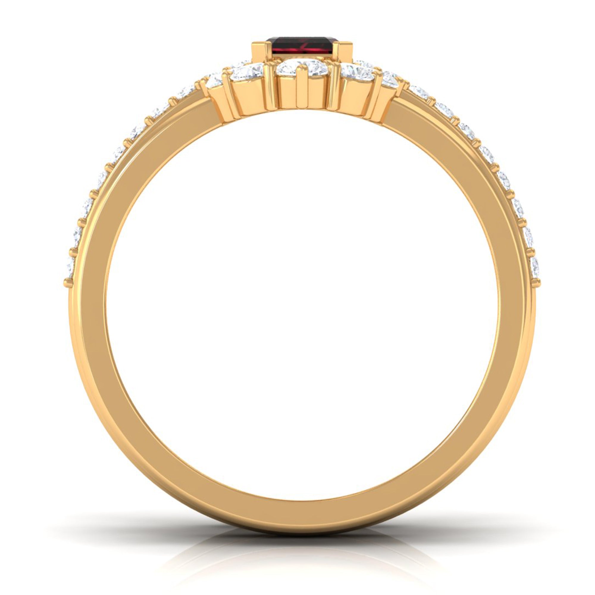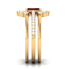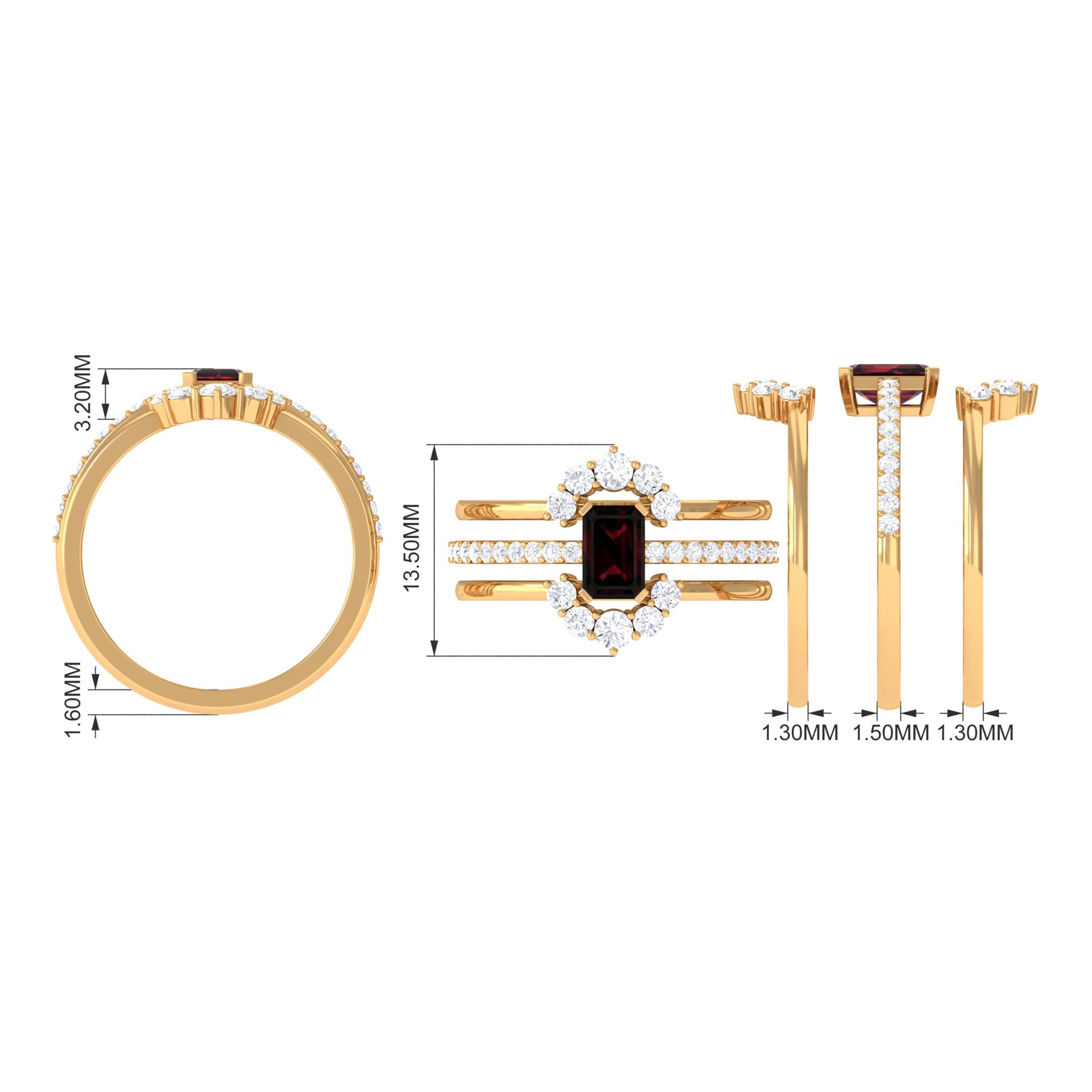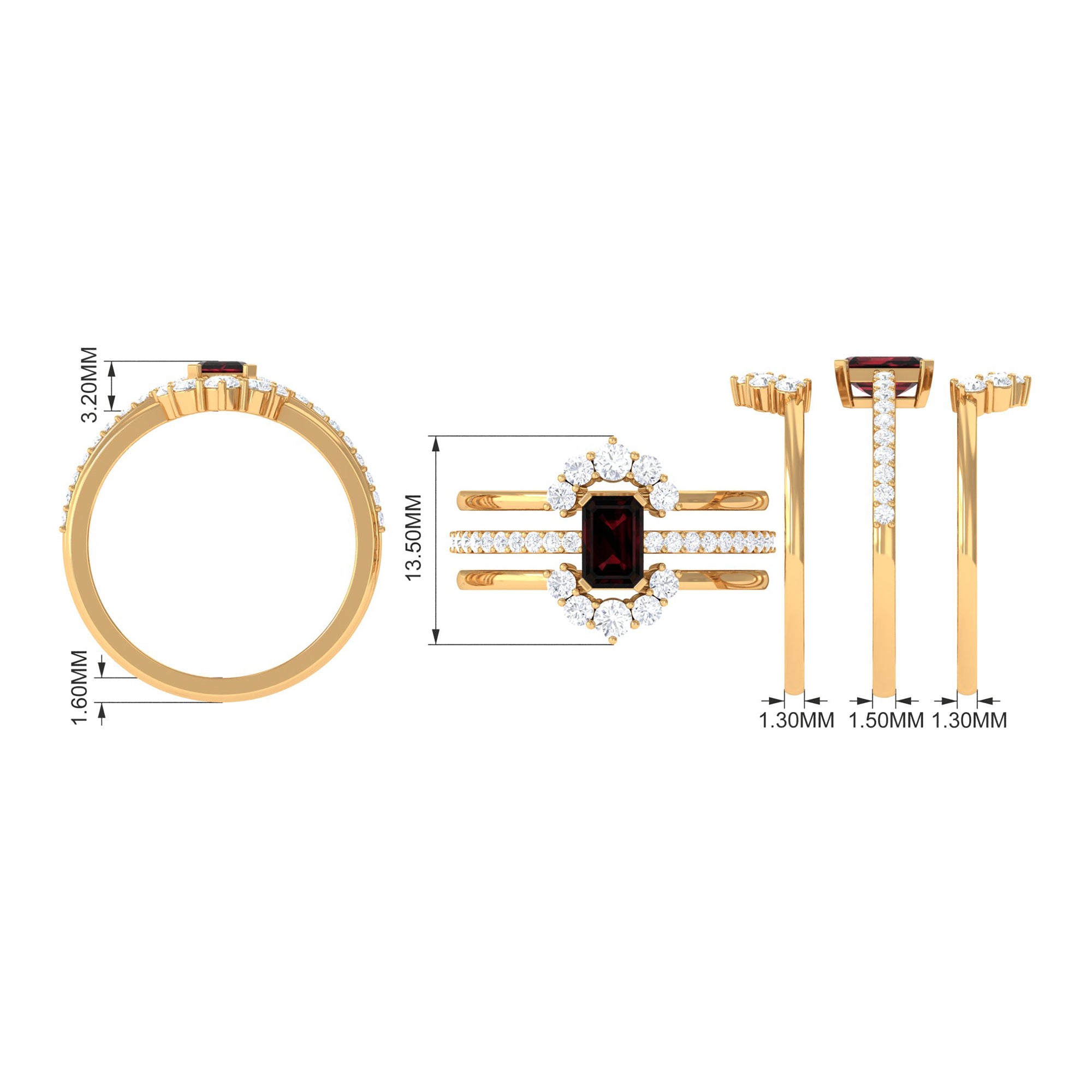 Natural Emerald Cut Garnet Diamond Trio Wedding Ring Set