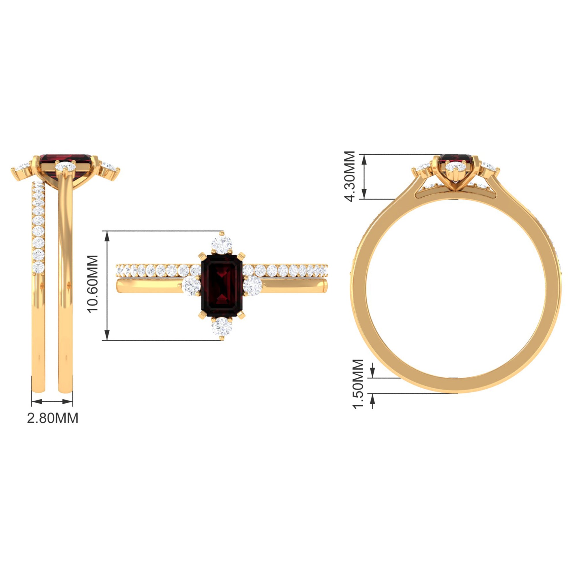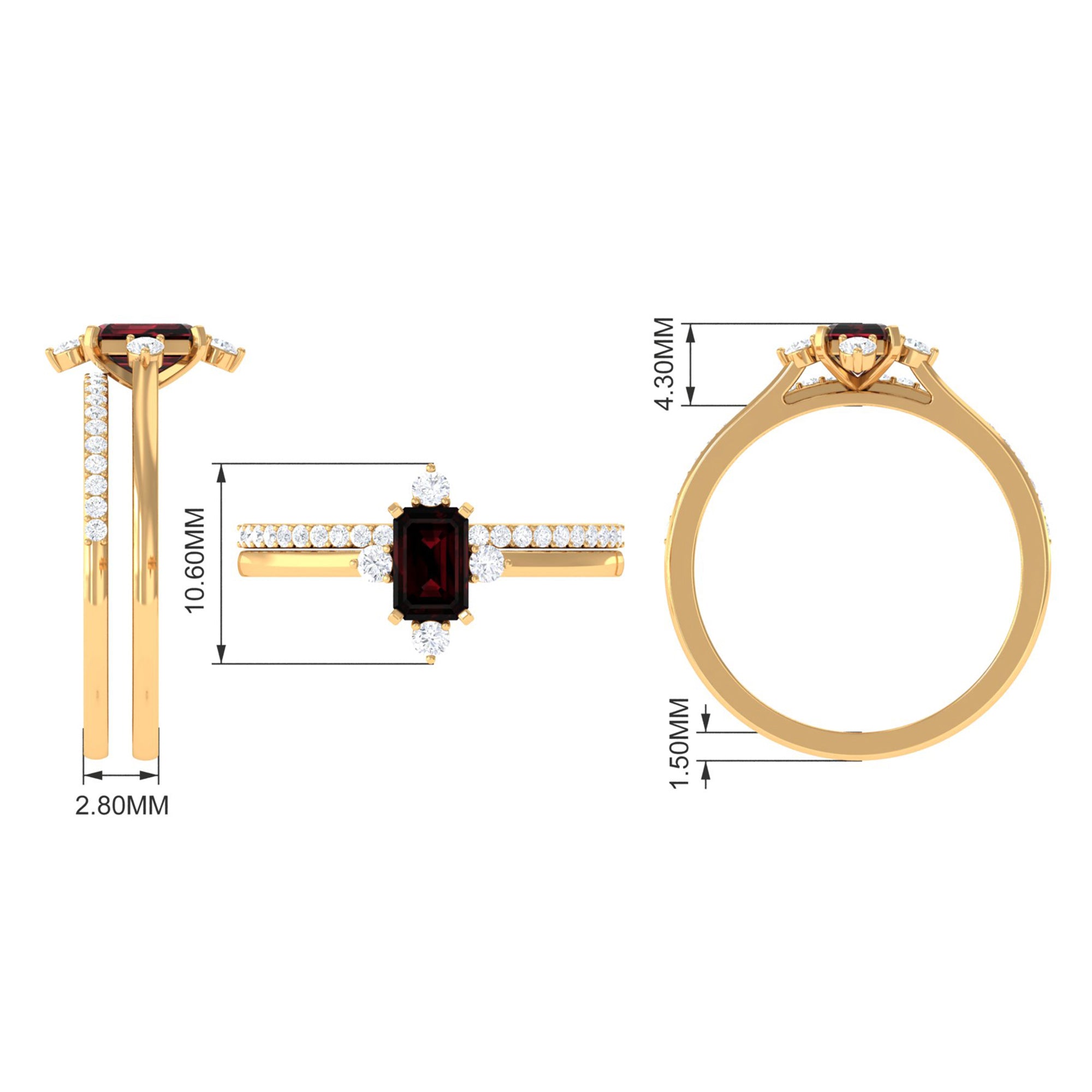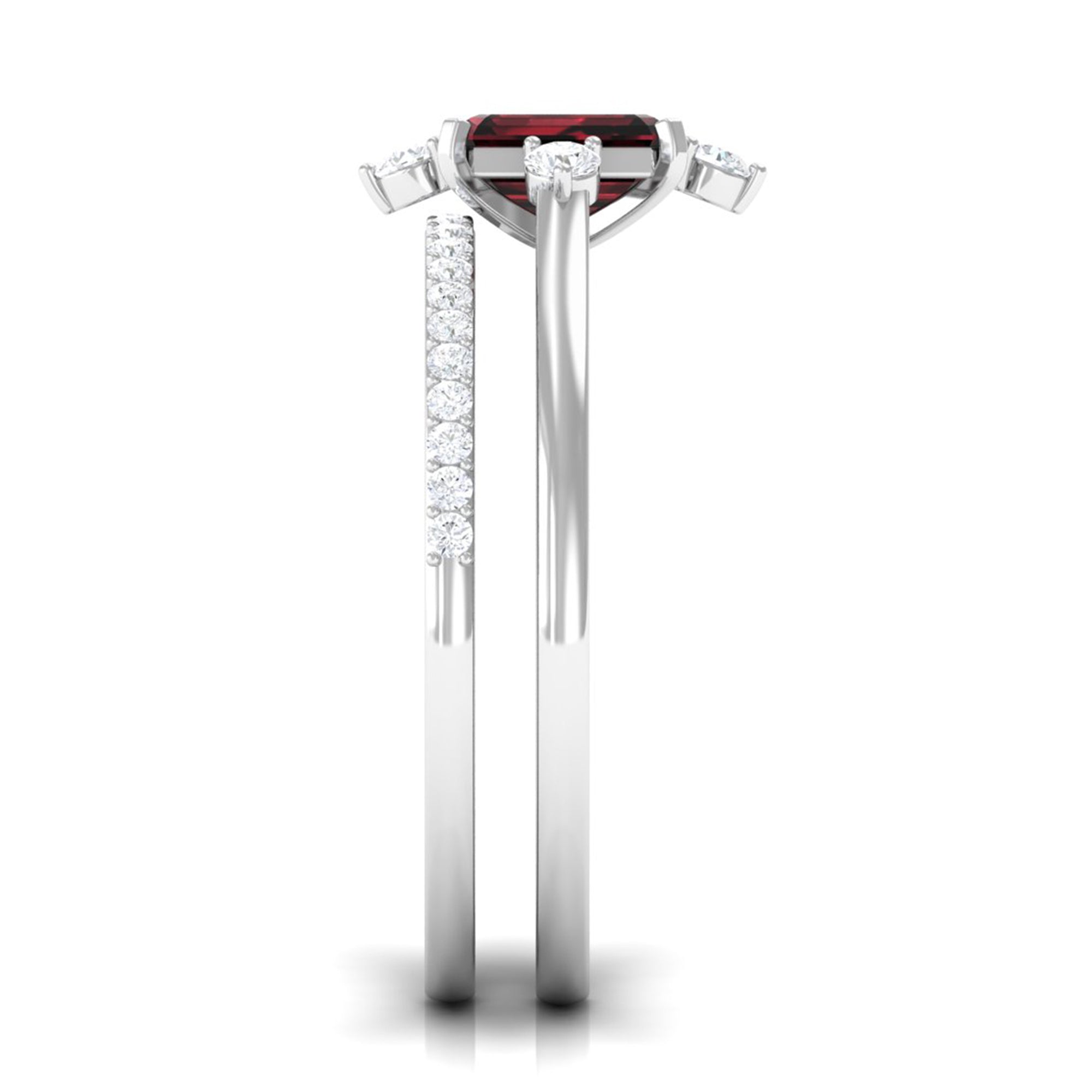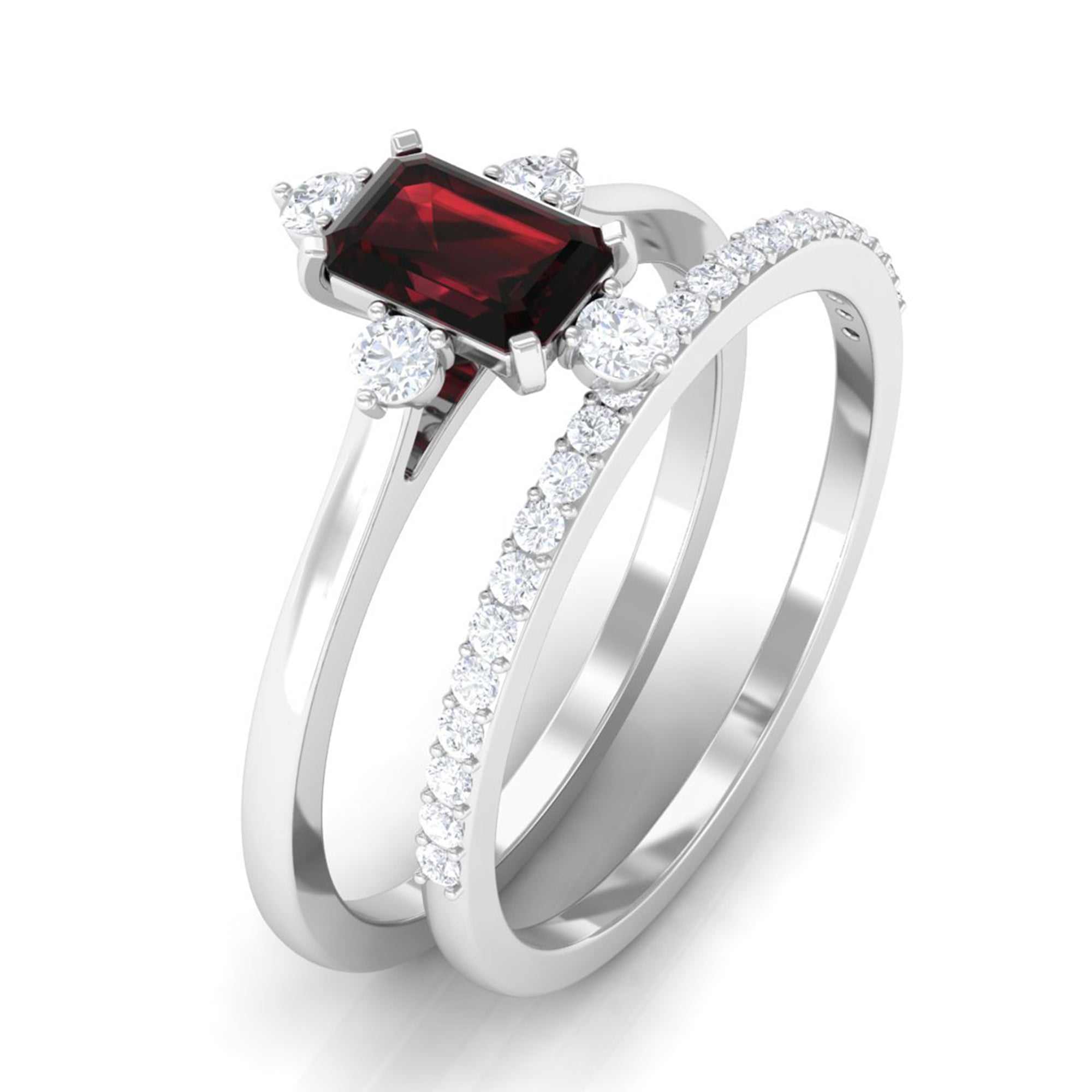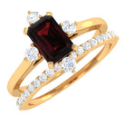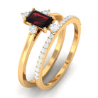 Natural Emerald Cut Garnet Diamond Wedding Bridal Ring Set of 2