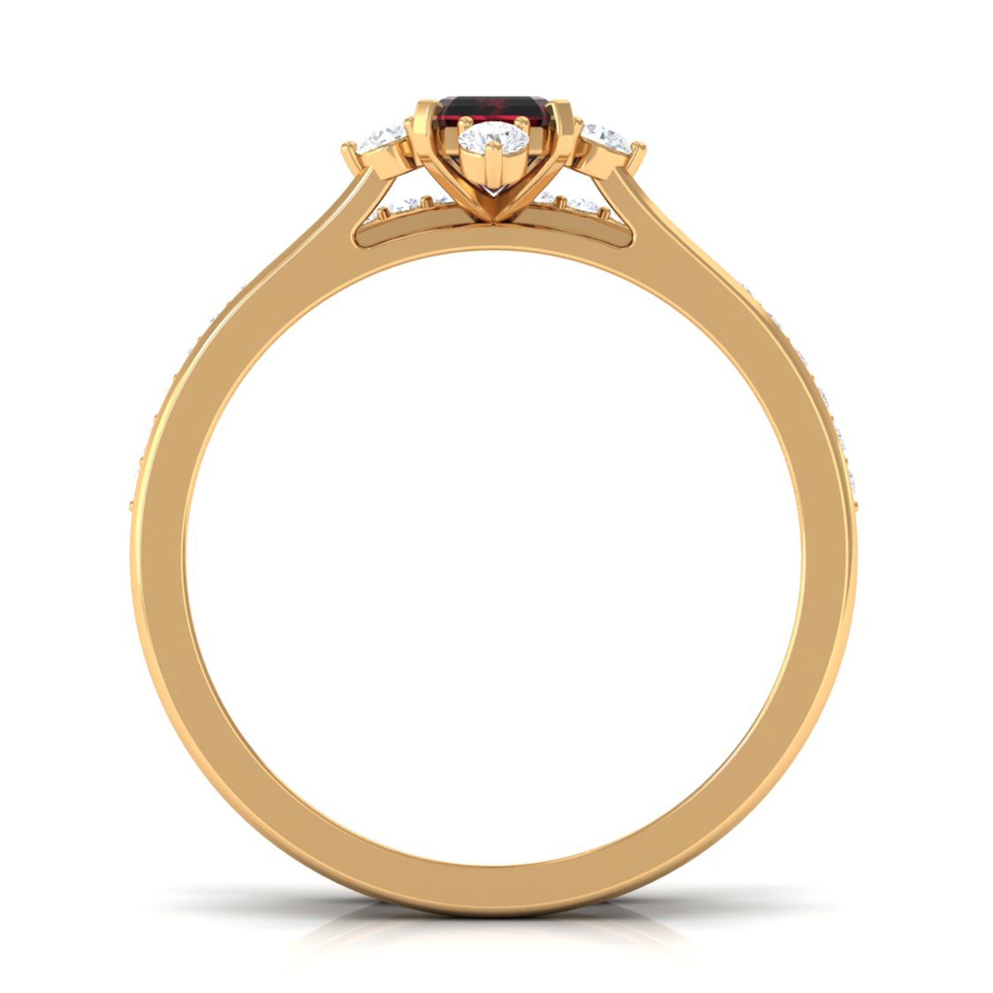 Capture hearts with this captivating Wedding Bridal Ring Set that feels like pure romance wrapped in sparkle. This elegant Emerald Cut Wedding Ring Set is designed to make your love story shine in the most meaningful way. The Solitaire Engagement Ring of this 2 Piece Ring Set features a mesmerizing 4X6 mm Emerald Cut Garnet, framed by a Diamond set on each side to highlight its deep beauty. Paired perfectly with a slim Enhancer Band adorned with delicate Round Diamond stones, the set creates a radiant design that feels both timeless and fresh. Together, the two rings stack effortlessly, symbolizing the harmony, balance and devotion shared between two souls. Whether you are marking a new beginning or celebrating a bond that already feels forever strong, this Garnet Wedding Ring Set adds a touch of magic to every moment. Presented in a signature jewelry box and available in multiple ring sizes, this Wedding Engagement Ring Set is crafted to fit comfortably and beautifully from the very first wear. Romantic and meaningful, this is the kind of ring set that turns a promise into a lifetime treasure.