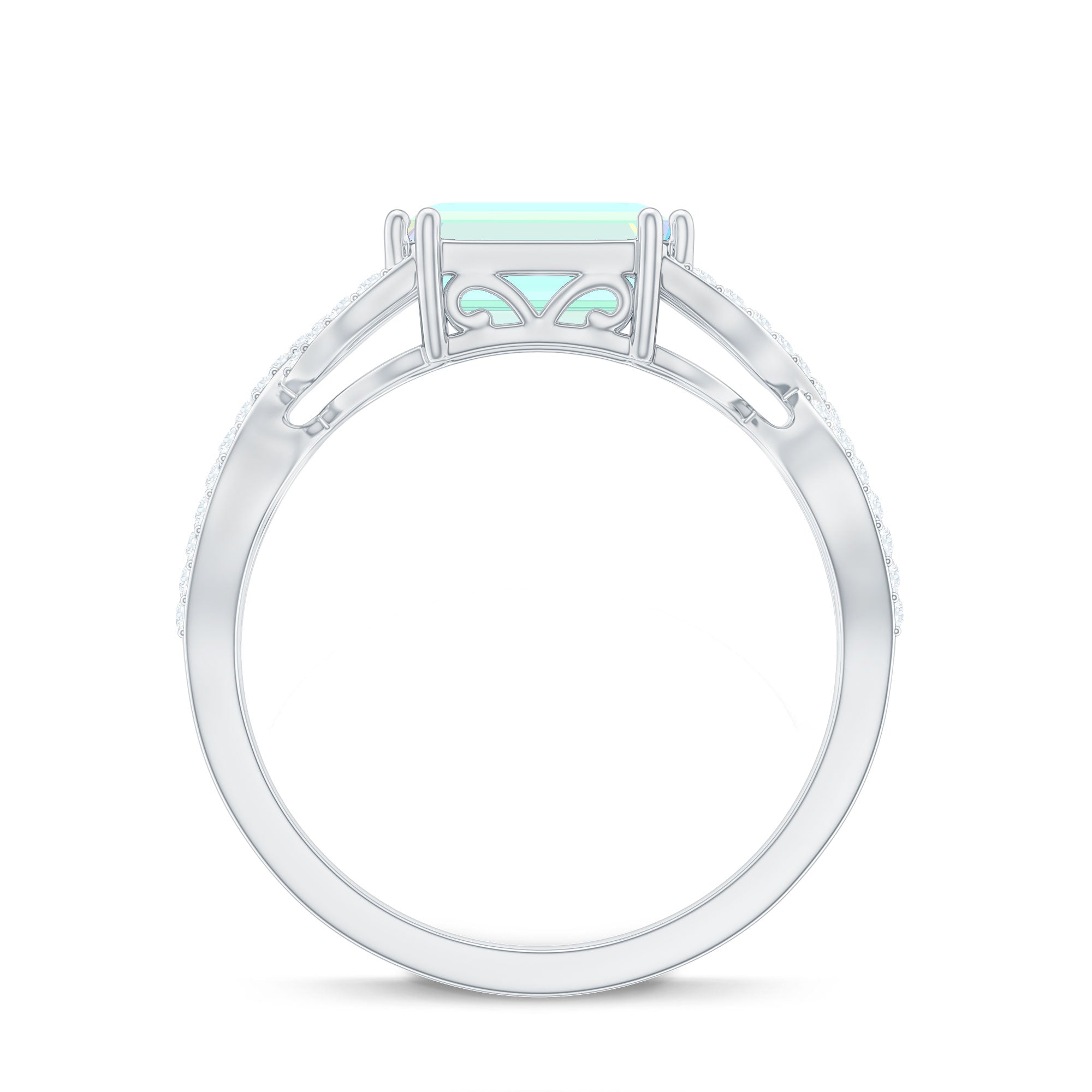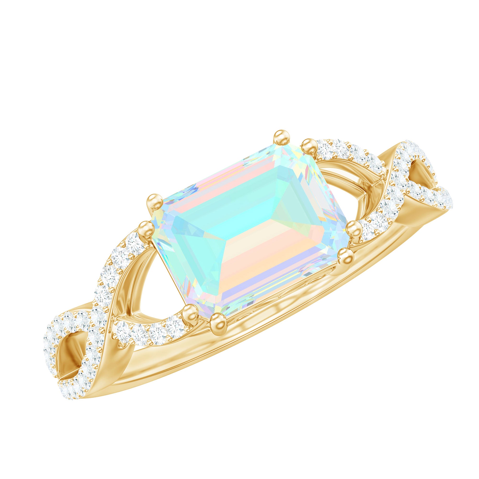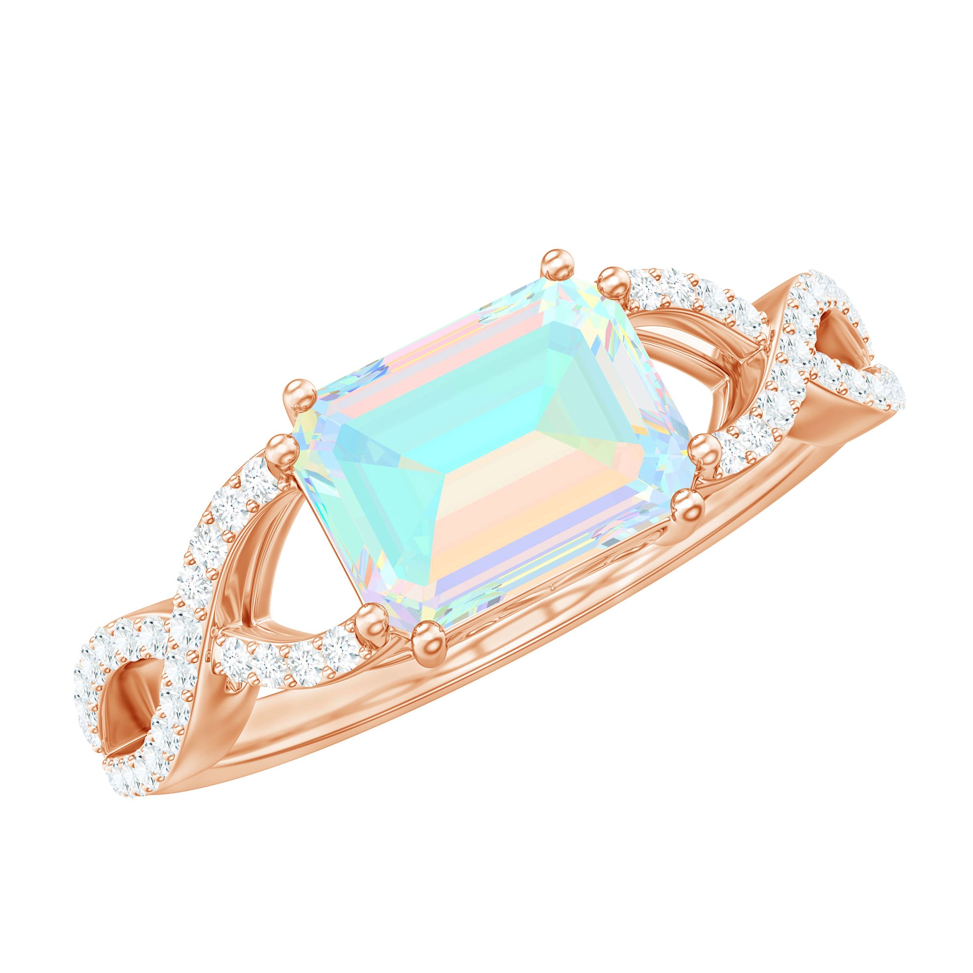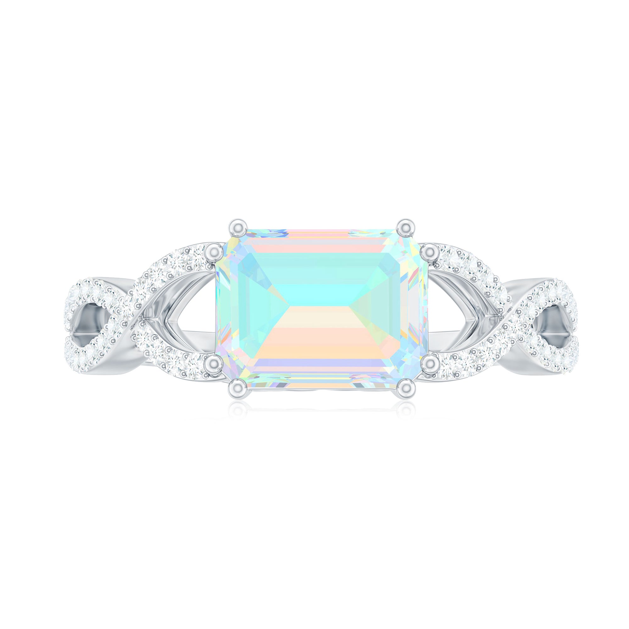 Natural Emerald Cut Opalescent Diamond Engagement Ring in East West Style