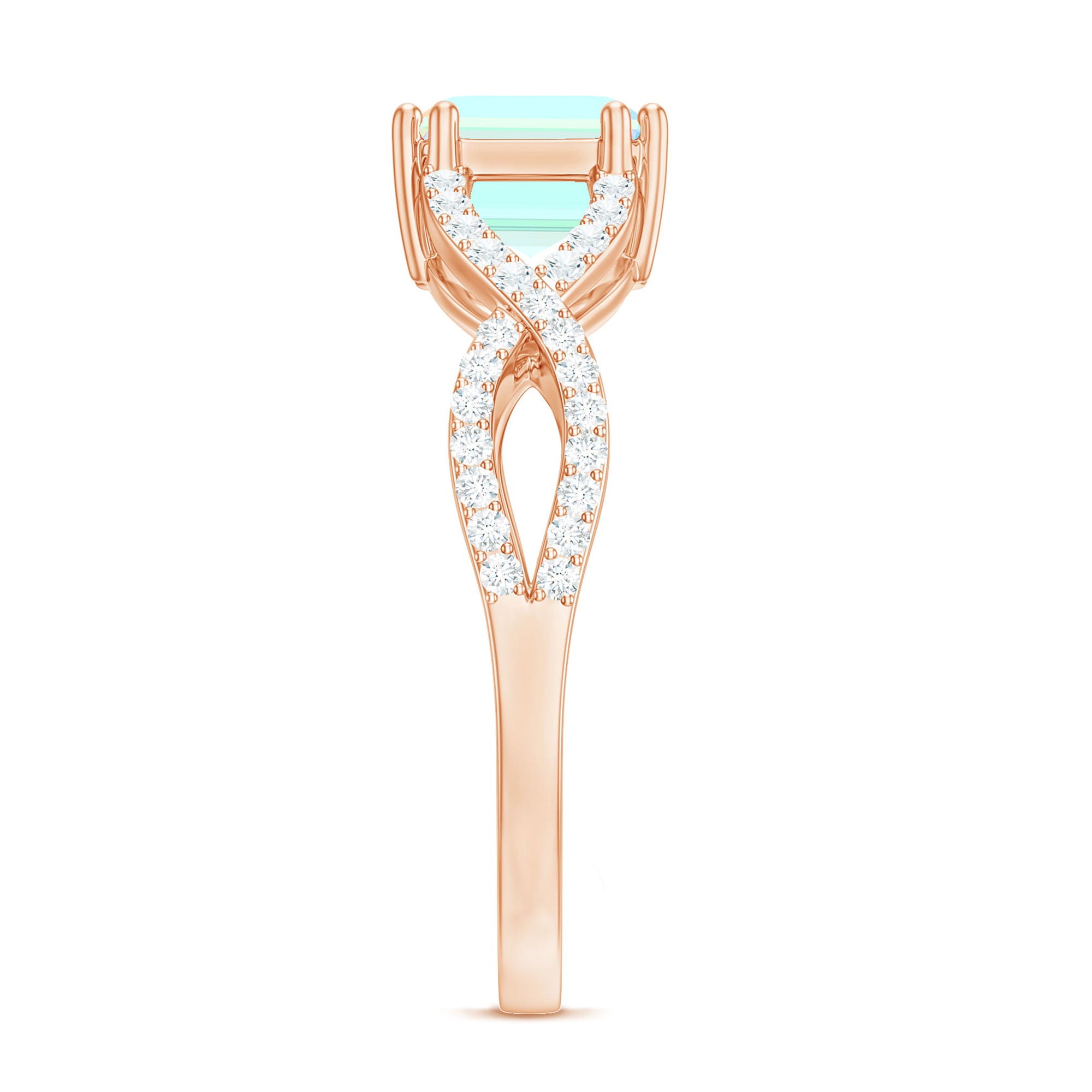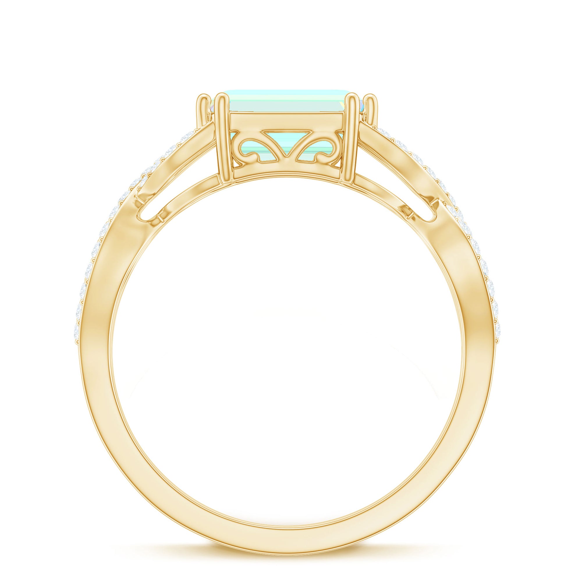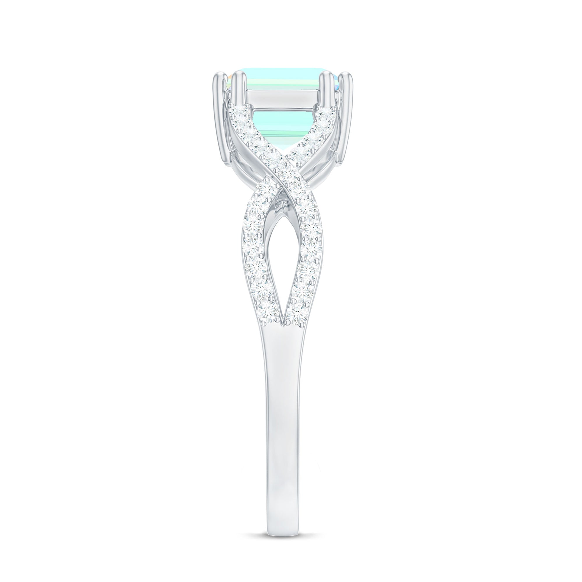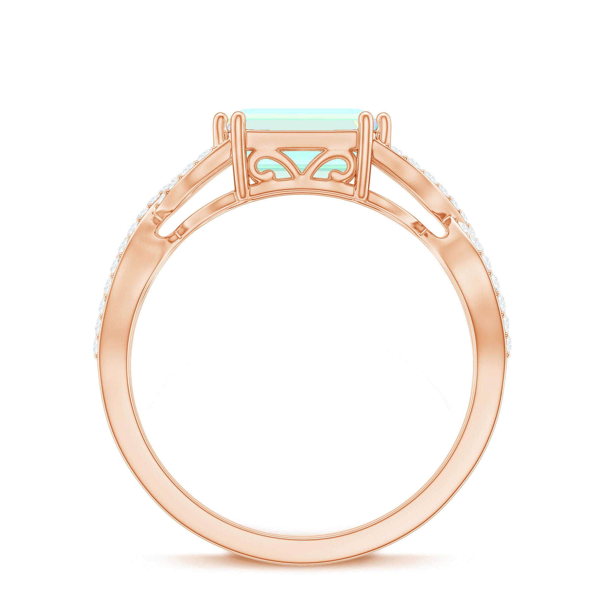 Natural Emerald Cut Opalescent Diamond Engagement Ring in East West Style
