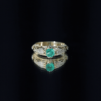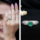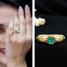 Natural Emerald Diamond Antique Looking Engagement Ring