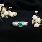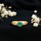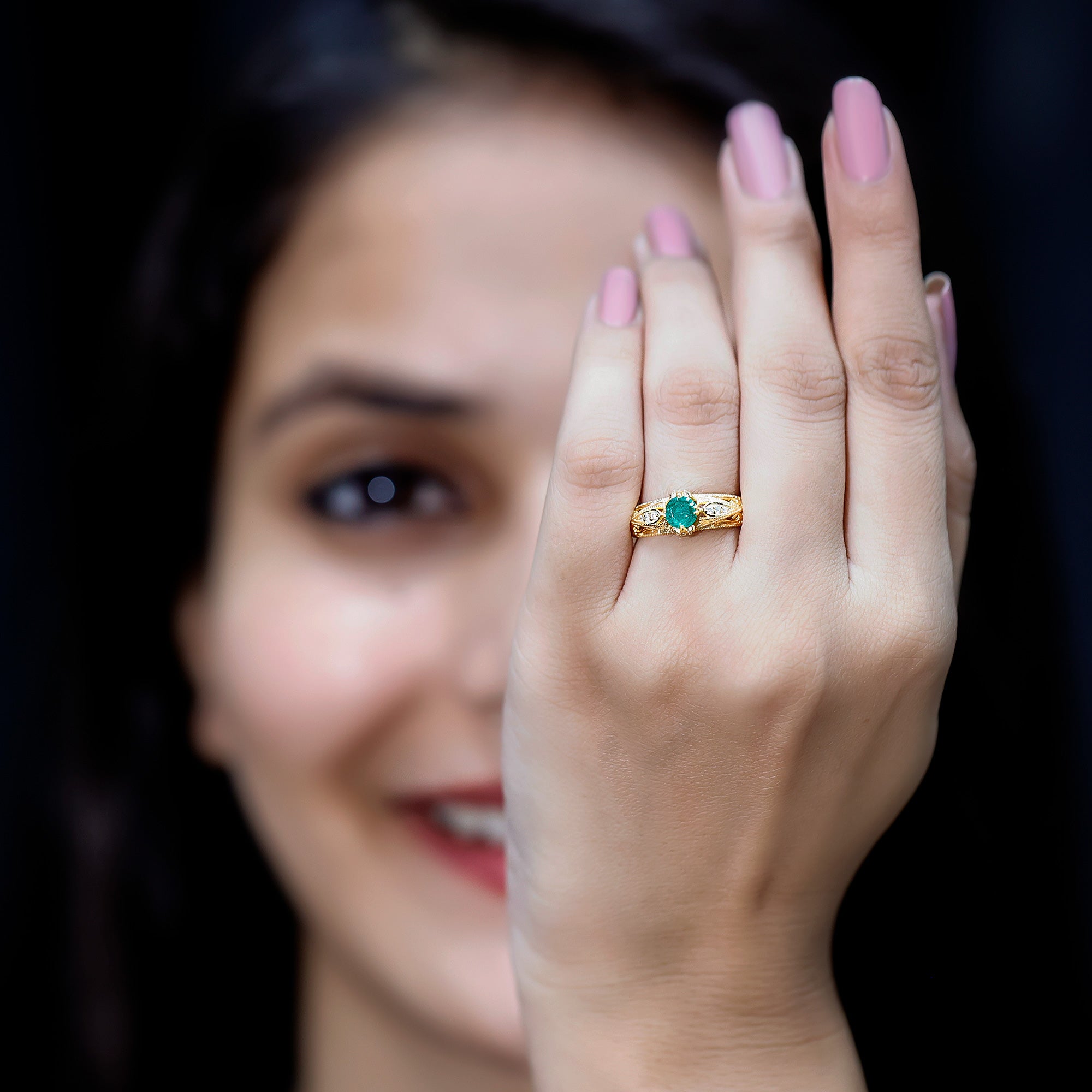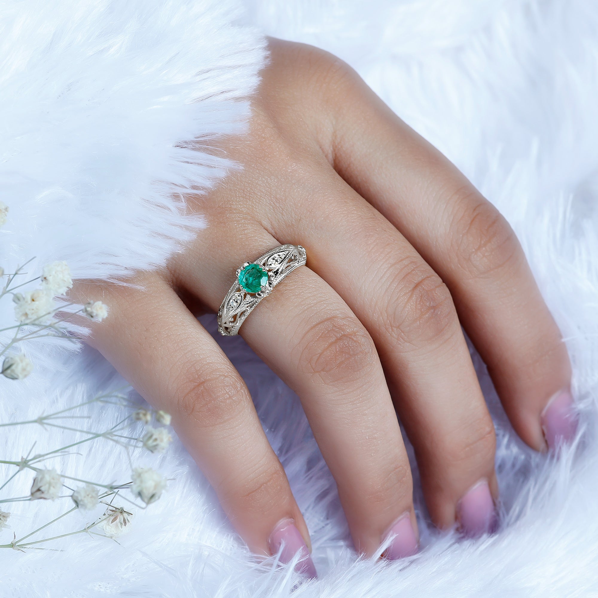 Step back in time with this Vintage Looking Engagement Ring, where vintage charm meets modern elegance. This stunning Solitaire Engagement Ring features a rich 5 mm Round Shape Emerald, its deep green hue exuding timeless romance and strength, accentuated by sparkling Diamond stones. The intricate Beaded Detailing along the band adds a touch of old-world craftsmanship, elevating the design with a sense of history and sophistication. This Vintage Emerald Engagement Ring is carefully crafted to tell a story of love that transcends time, capturing the essence of a vintage masterpiece. Whether you are proposing or celebrating an anniversary, this Emerald Diamond Ring is a symbol of eternal devotion, designed to make the moment unforgettable. Presented in a signature jewelry box and available in a range of sizes, this Real Emerald Engagement Ring is ready to be a part of your journey together.