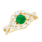 Timeless romance meets modern elegance in this Antique Style Engagement Ring. At its center, a 5 mm Round Shape Emerald captures the eye, its rich green hue radiating life and devotion. Flanking the center stone, a delicate horizontal Heart motif on either side, adorned with sparkling Diamond stones, adds a whisper of vintage charm. The Crossover Shank, studded with Diamond stones, wraps gracefully around the finger, symbolizing two lives intertwined in perfect harmony. Every curve tells a story of love, a design that honors tradition while embracing today’s style. Perfect for engagements or as a meaningful expression of eternal commitment, this Emerald Diamond Engagement Ring transforms every gesture into a celebration of the heart. Presented in a signature jewelry box and available in various sizes, this Crossover Ring is crafted to be treasured, worn and admired for a lifetime. This Vintage Looking Engagement Ring is a symbol of passion and the everlasting beauty of two hearts united.