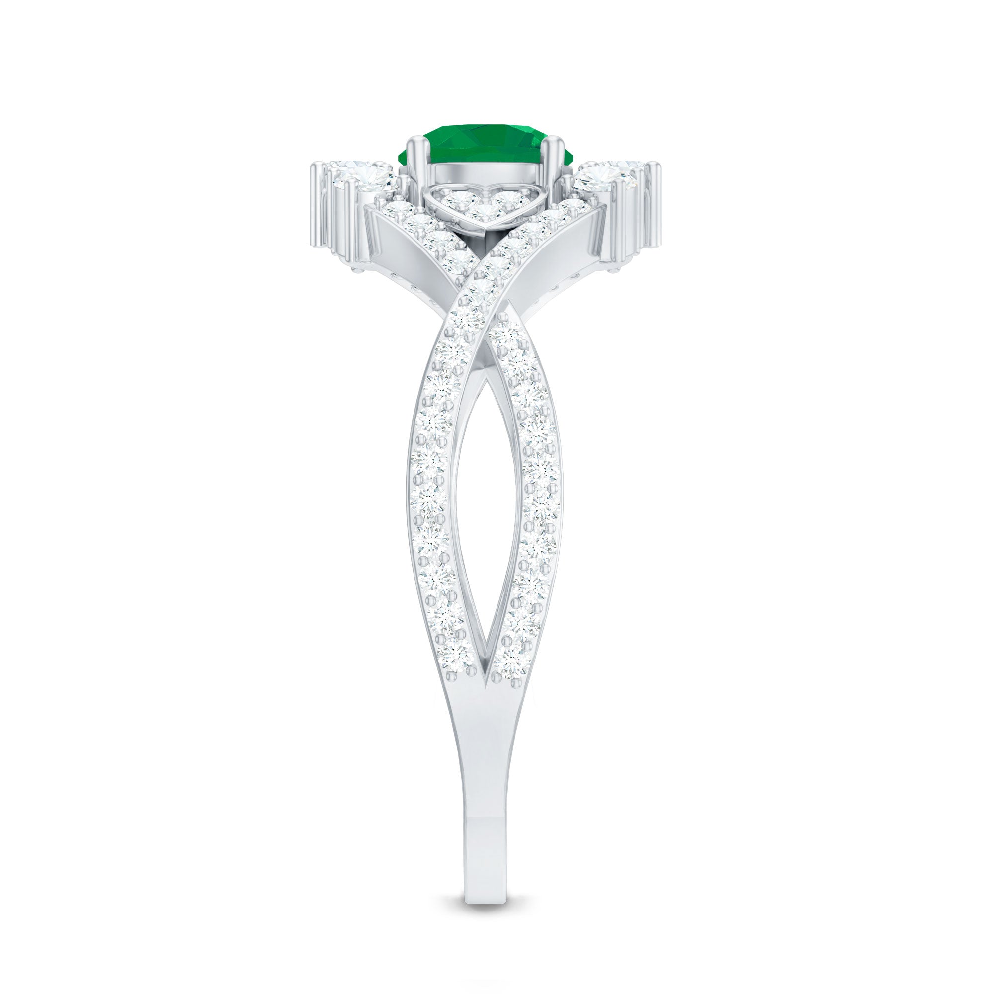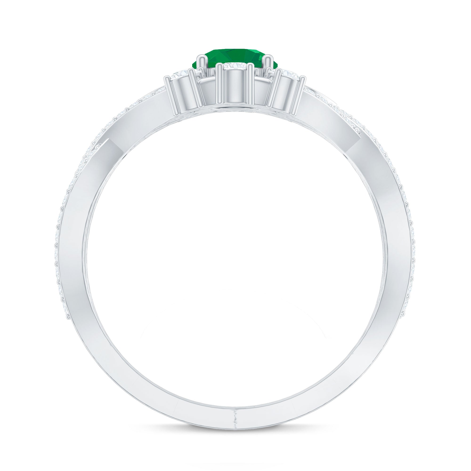 Natural Emerald Diamond Antique Style Engagement Ring with Crossover Shank