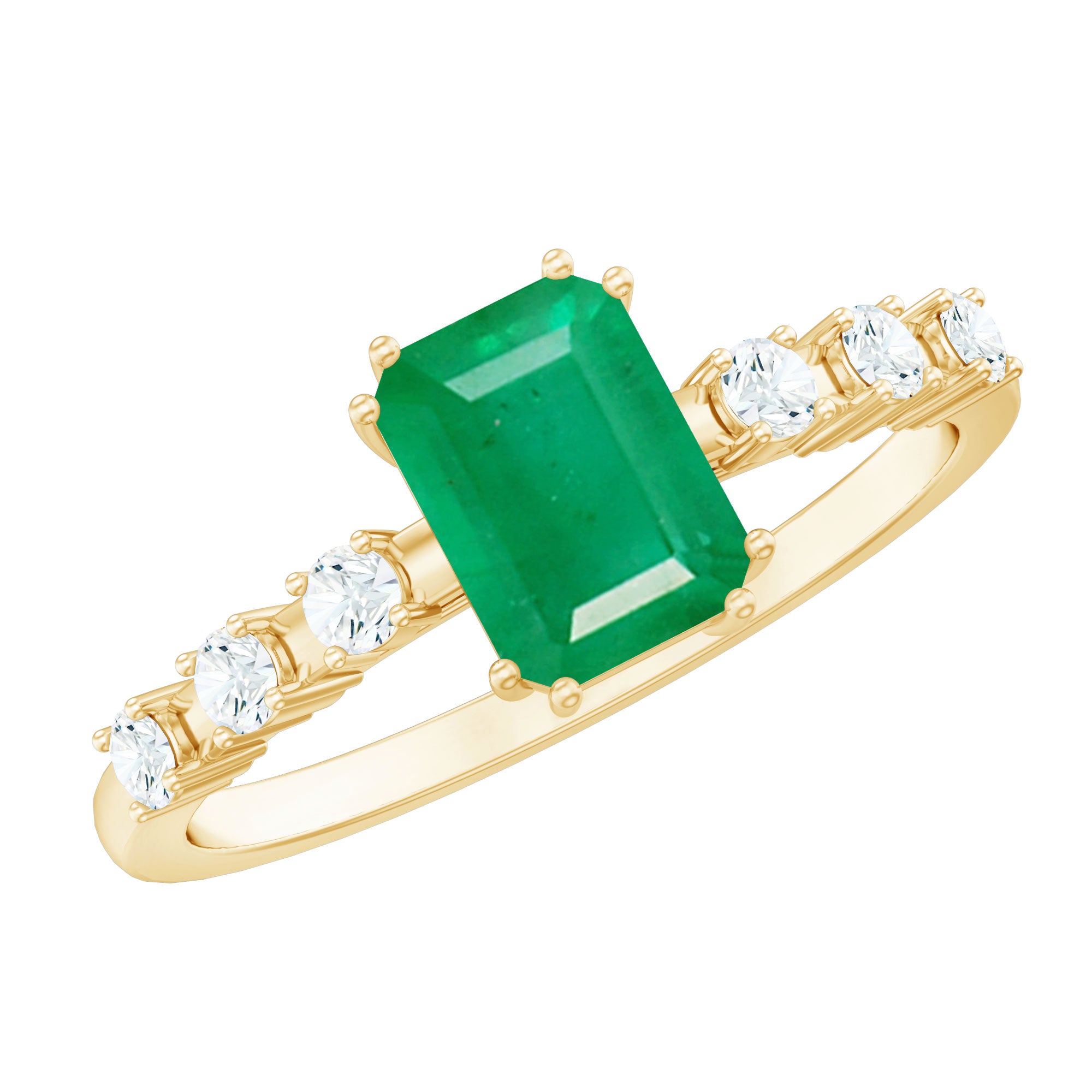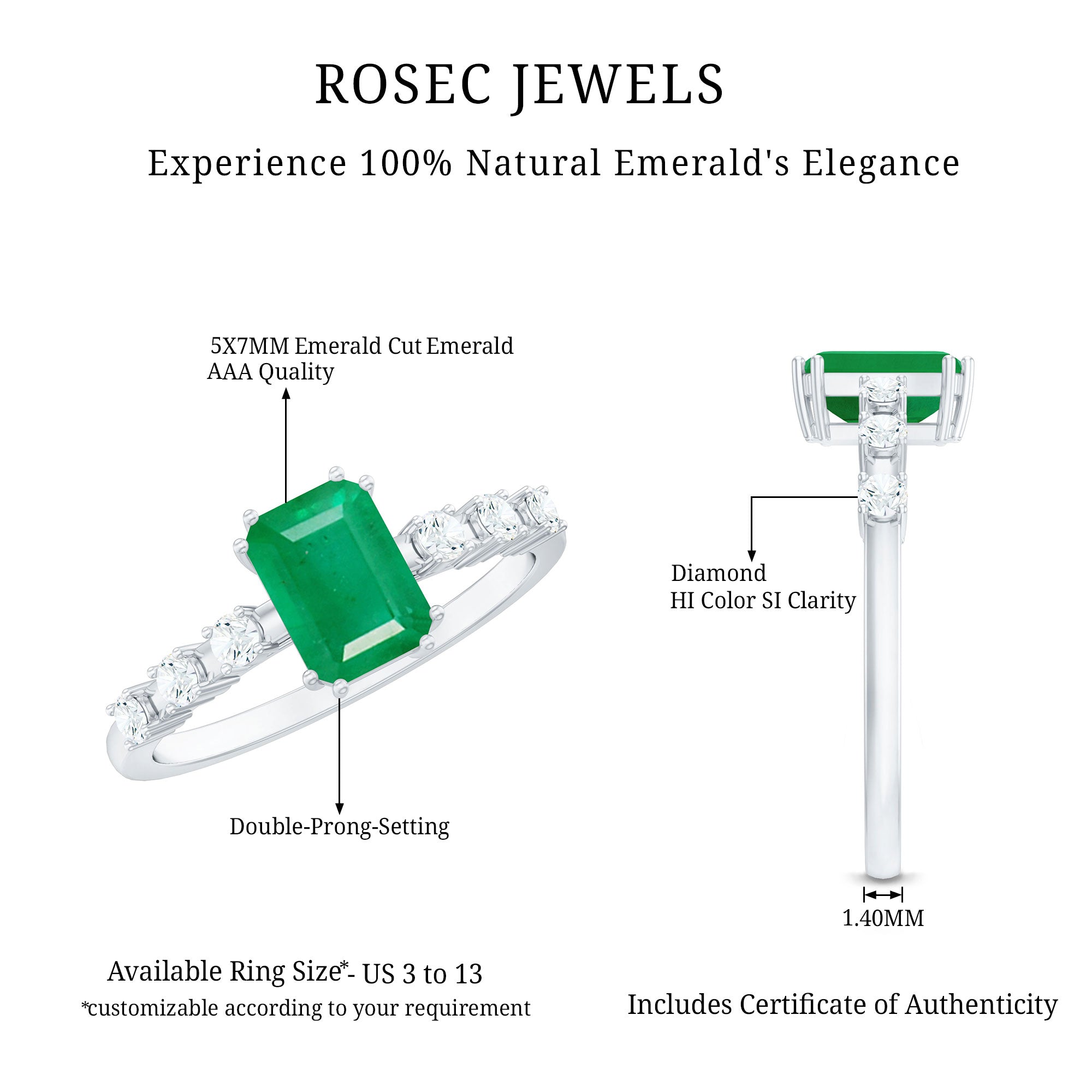 Designed to capture hearts and celebrate devotion, this Solitaire Engagement Ring features a 5X7 mm Emerald Cut Emerald set in Double Prong Setting that radiates a rich green hue, symbolizing a love that grows stronger with every shared moment. Flanked by dazzling Diamond Side Stones, this Emerald Cut Engagement Ring balances bold elegance with delicate sparkle, creating a luminous frame that enhances the natural beauty of the AAA Quality Emerald. Every detail is thoughtfully crafted, from the Emerald Cut to the flawless placement of the Diamond Side Stones, ensuring a ring that feels as unique and extraordinary as the love it represents. Presented in a signature jewelry box and available in a variety of sizes, this Emerald Diamond Engagement Ring is ready to become a treasured symbol of your forever. Perfect for proposals, anniversaries or marking a milestone in your love story, this Natural Emerald Engagement Ring speaks of elegance, passion and the promise of a lifetime together, a radiant celebration of two hearts intertwined in eternal devotion.